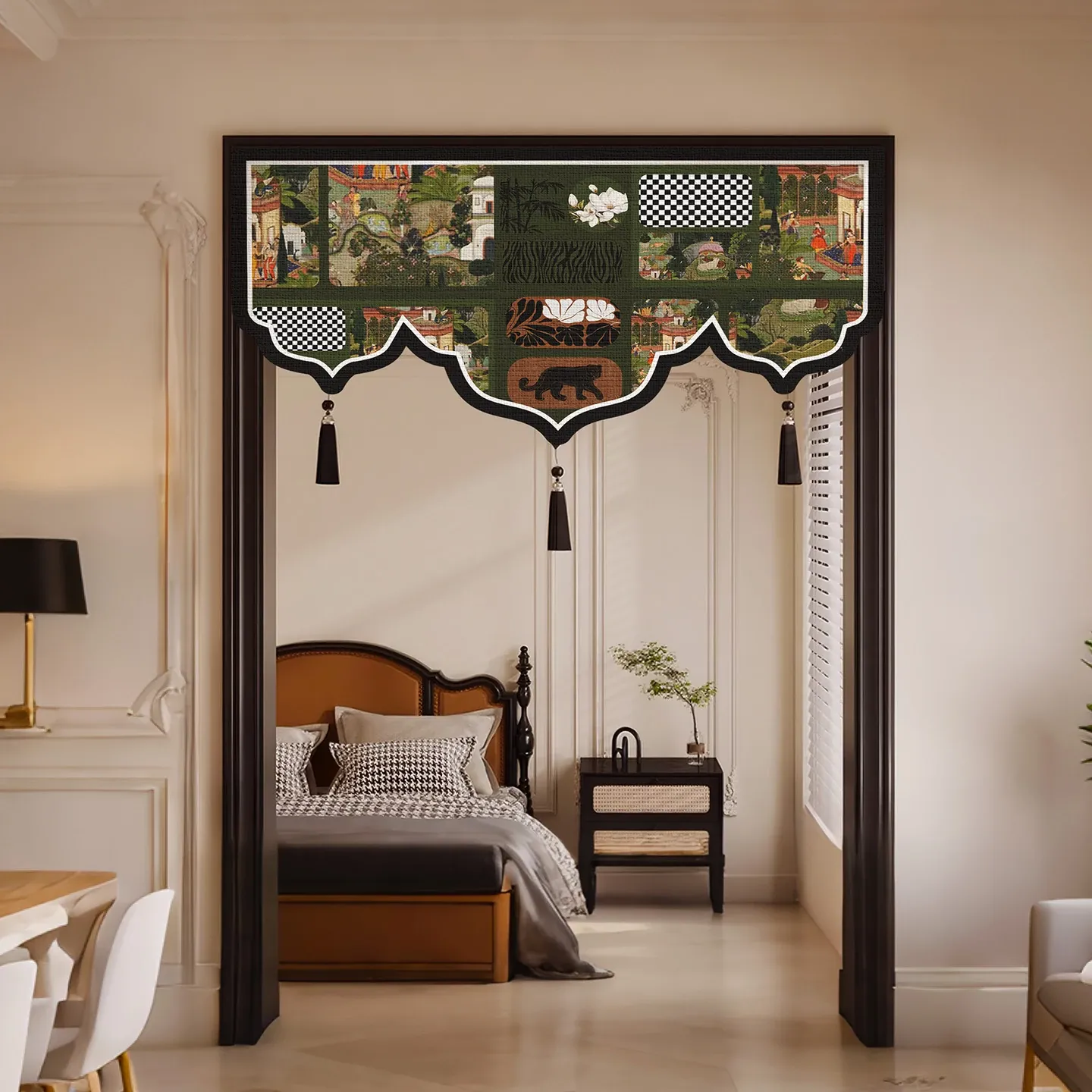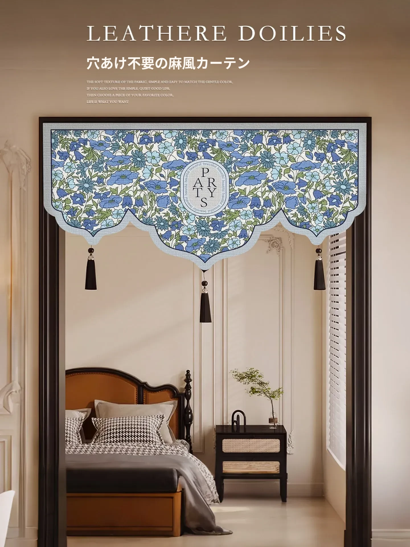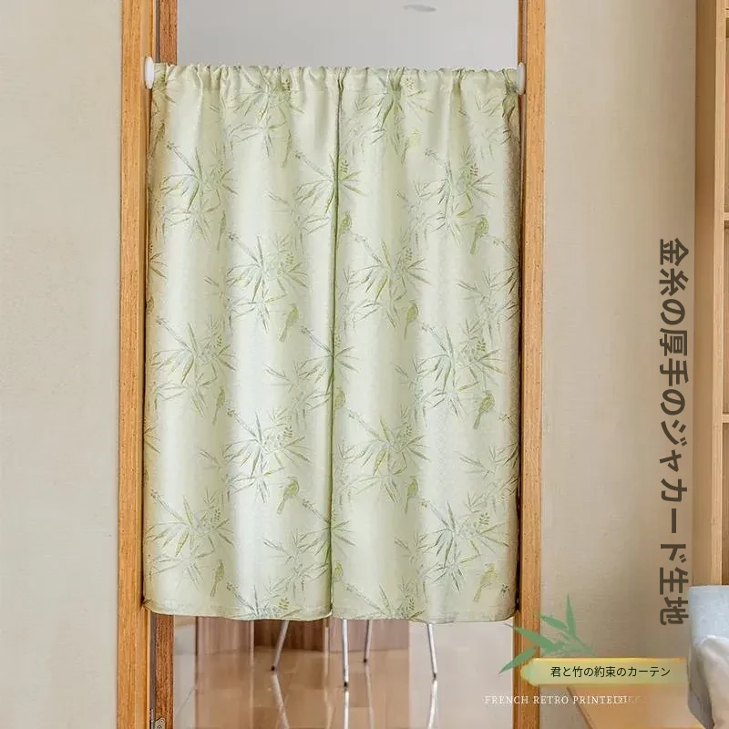 新中式デザインの高級感あふれるドアカーテン - リビングや茶室に最適!目隠し効果抜群の半カーテンで、トイレにも取り付け簡単なノーホールタイプ。おしゃれでプライバシーを守る理想的なアイテムです。