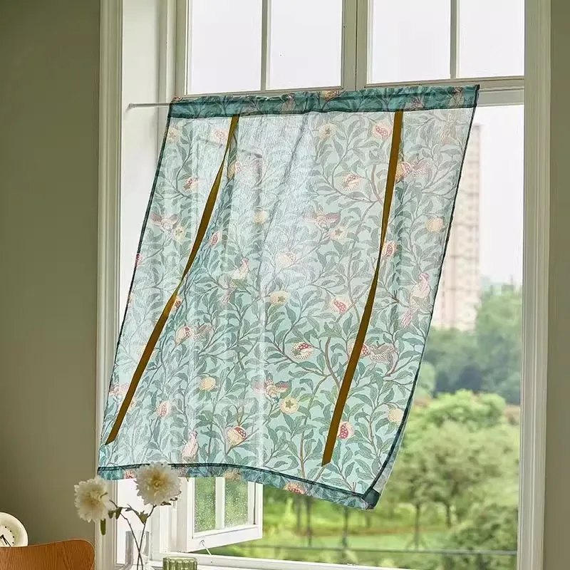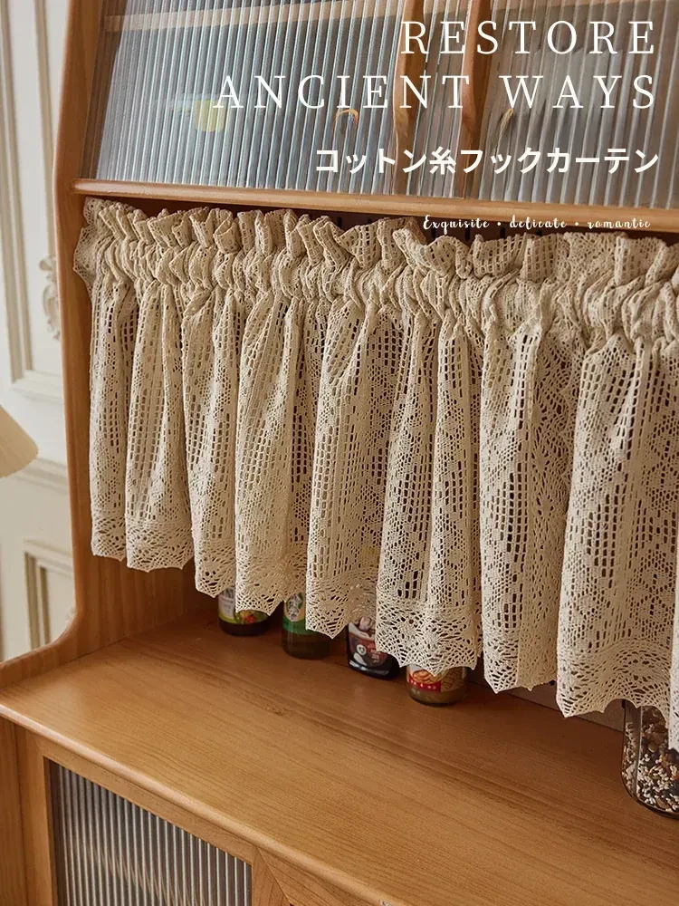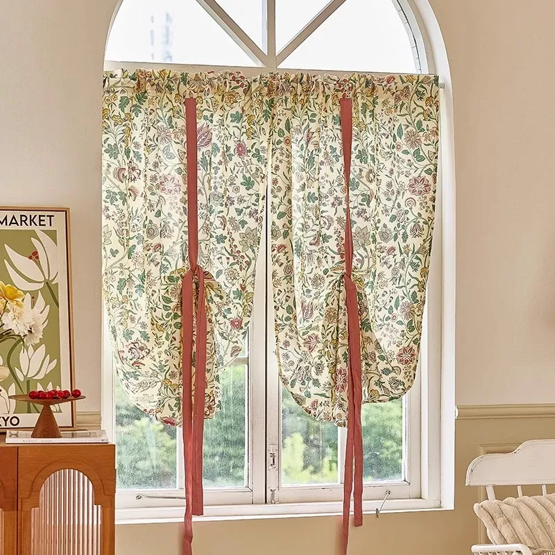 アメリカンスタイルのレトロな引き上げカーテン!穴を開けずに取り付け可能で、寝室や書斎、キッチンの窓を素敵に遮るレースカーテン。おしゃれで機能的な空間を演出します!