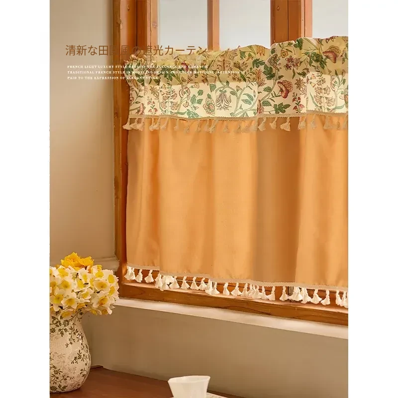 アメリカンスタイルの異形フリンジ三角旗カーテン - 簡単取り付け、穴あけ不要!リビングやキッチンにぴったりなショートカーテンで、魅力的な空間を演出。半分のドアに最適なオシャレな遮光カーテン!