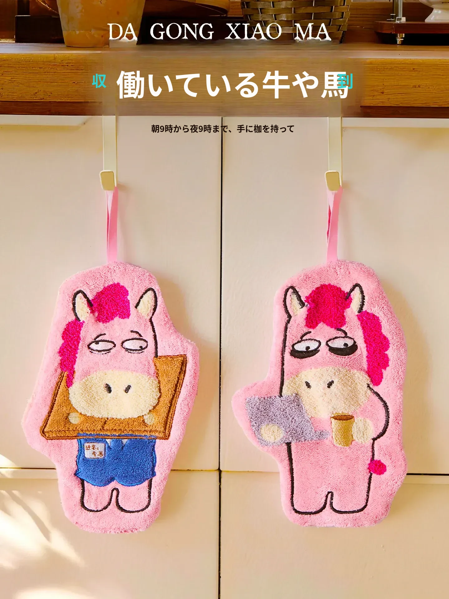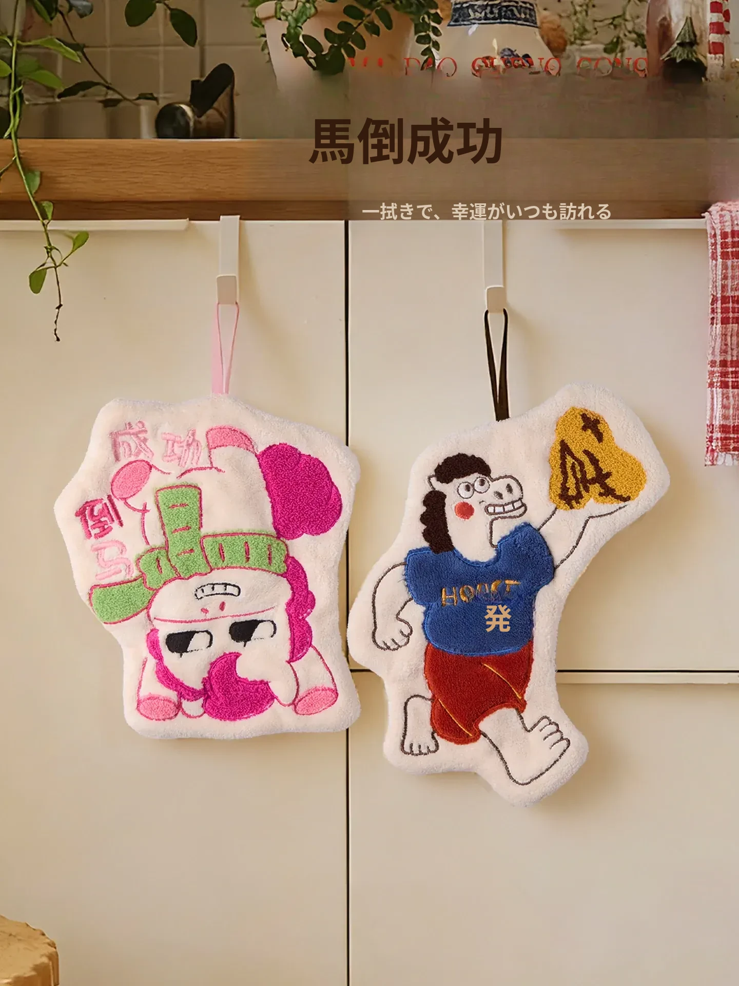 超吸水・厚手・大判!可愛いカートゥーンデザインのキッチン用ハンドタオル。便利な掛け式で、あなたの料理をもっと楽しく!おしゃれで実用的な小さなタオルです。