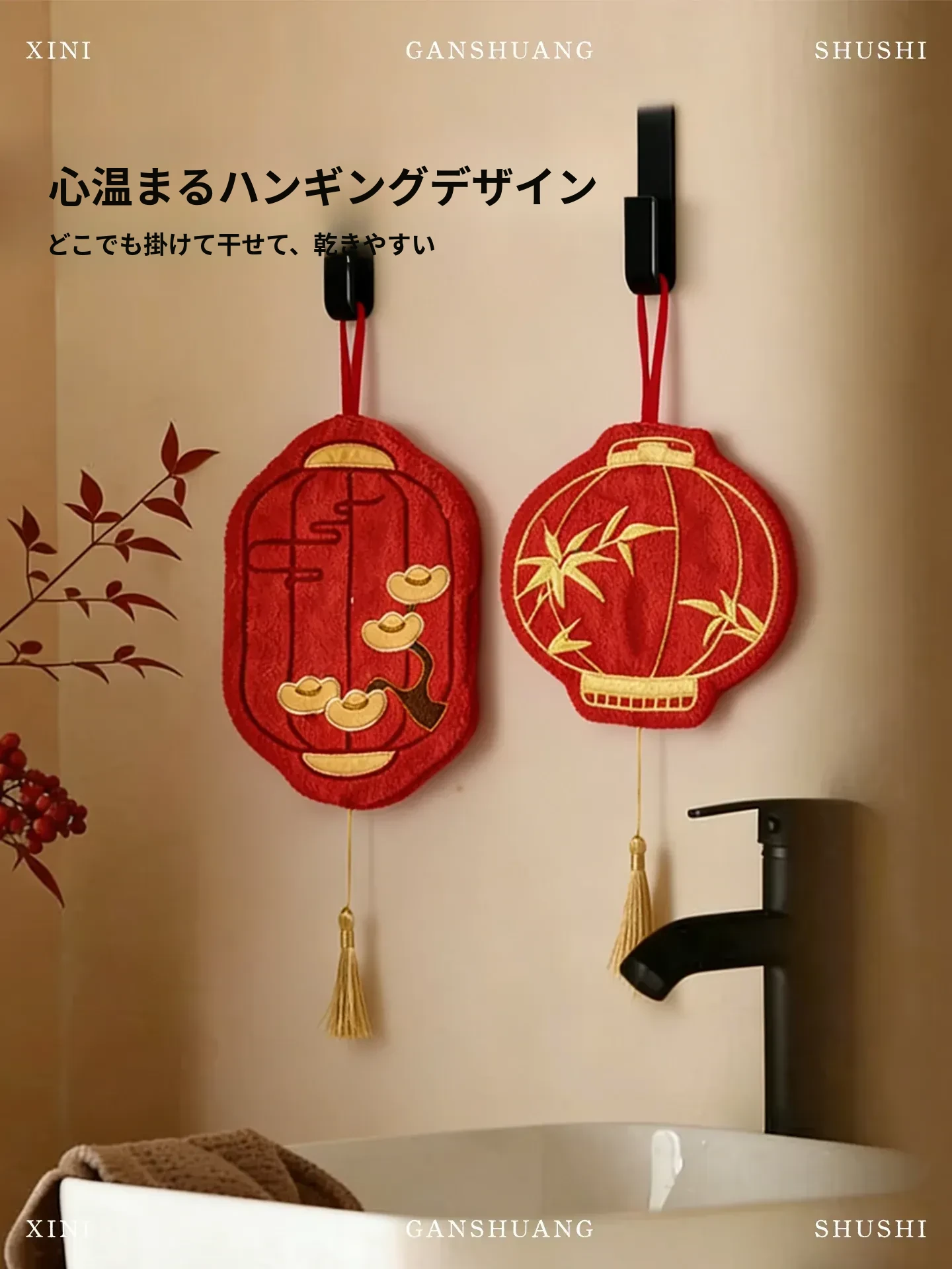 赤い結婚式・新年の福禄を呼ぶ可愛いハンギングタオル!おしゃれな雰囲気を演出し、バスルームやトイレにぴったり。超吸水性で手を素早く乾かします。お客様の生活に彩りを添える一品です!