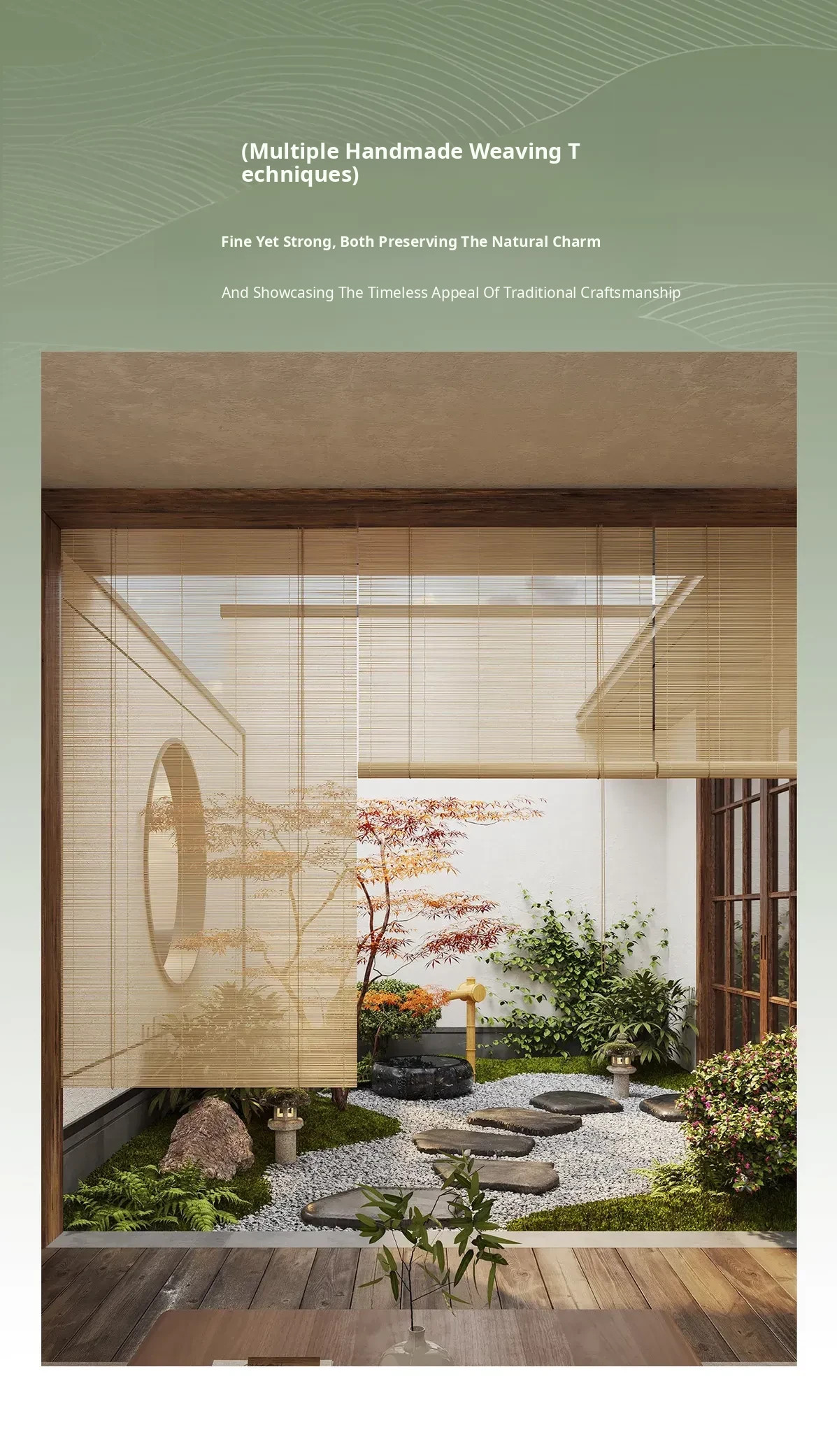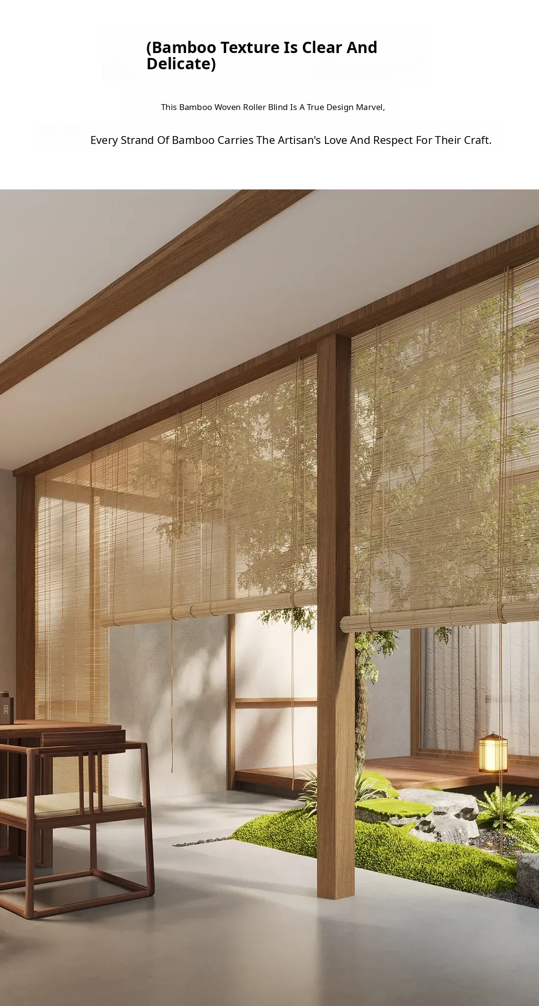 2026 New Zen-Style Bamboo Roller Blinds - No Drill Required, Perfect for Tea Rooms and Wall Décor, Stylish Sunshade Solution