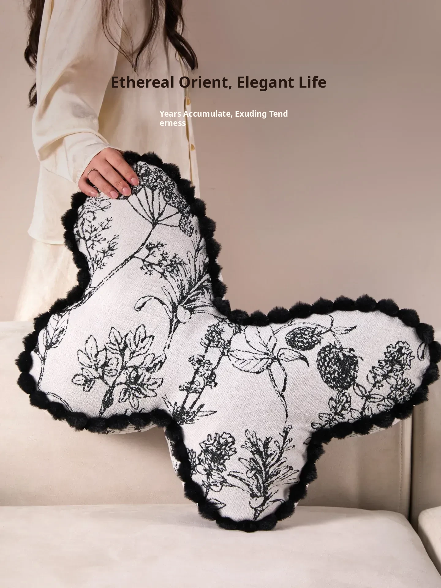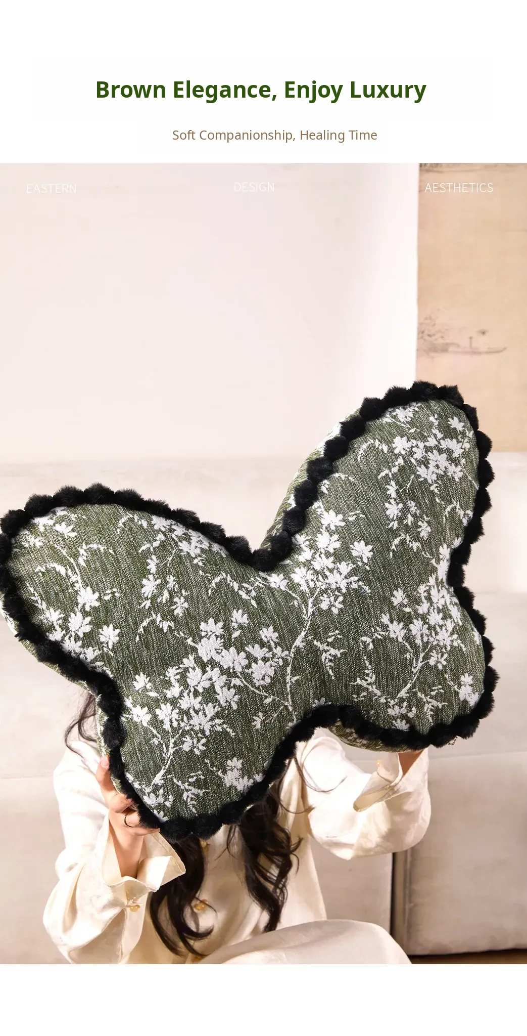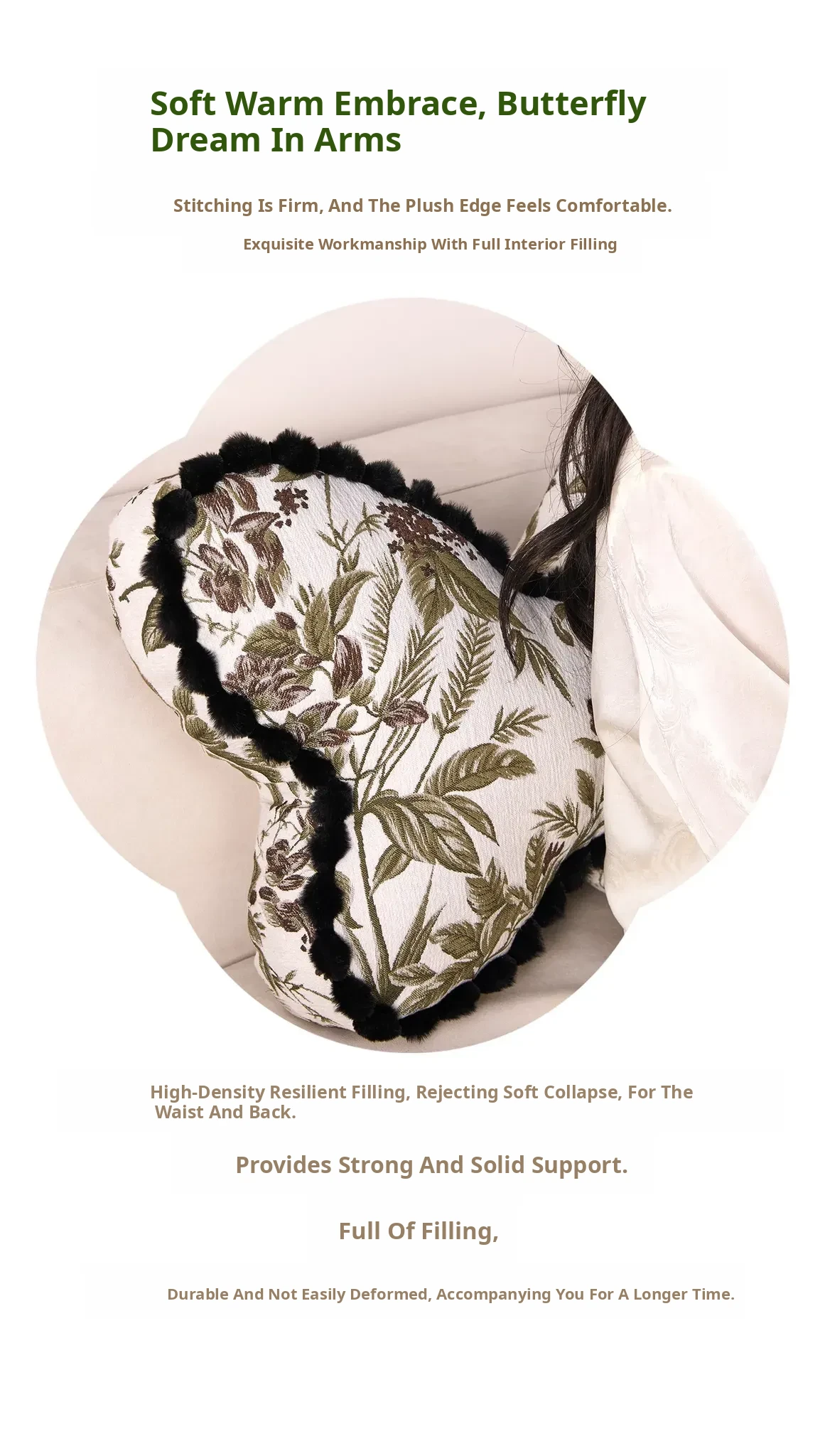 Butterfly New Chinese Style Throw Pillow - Luxurious Decorative Cushion for Bedroom and Living Room, Removable and Washable Waist Pillow with Fringe Edging, Includes Insert