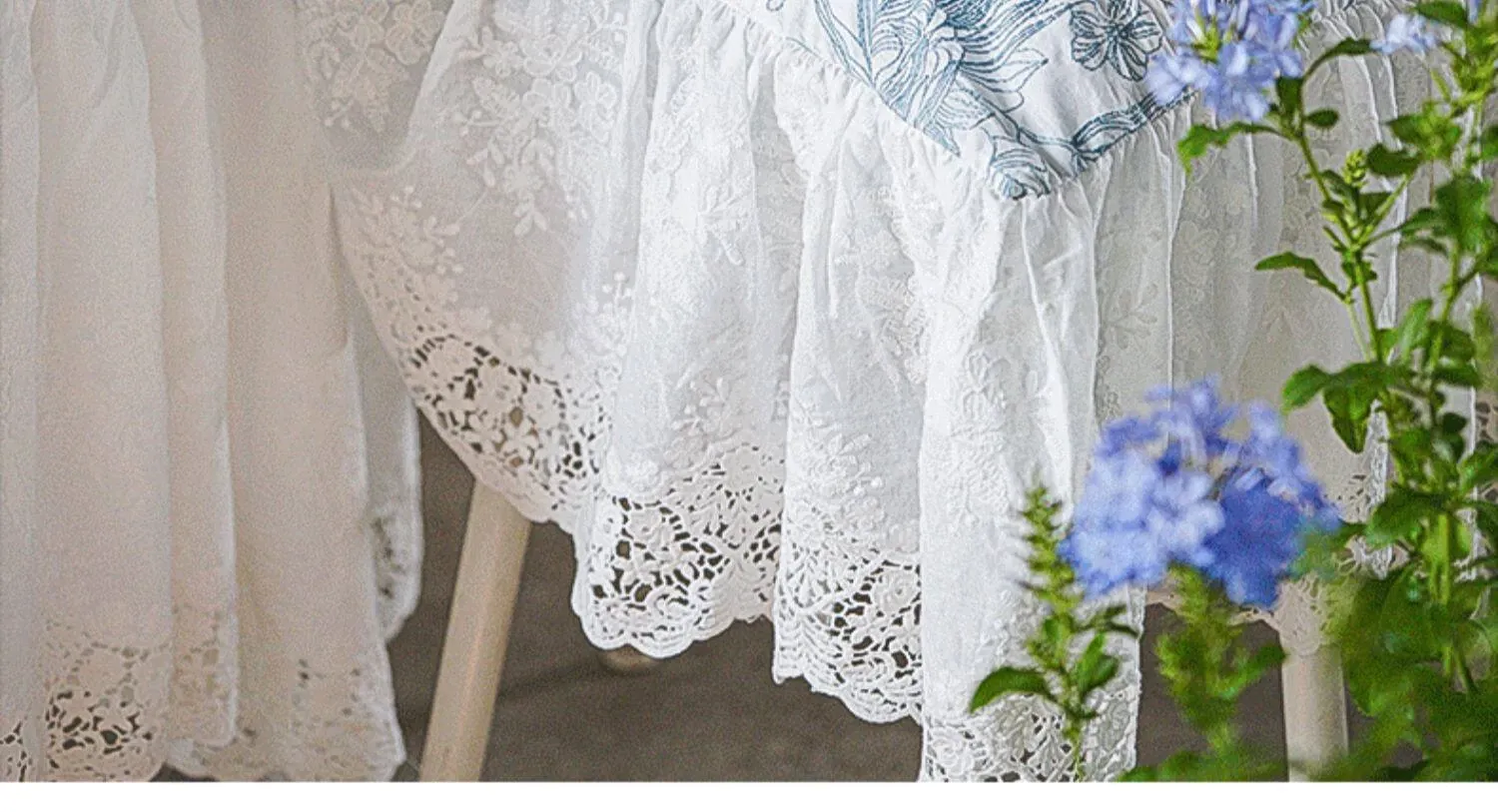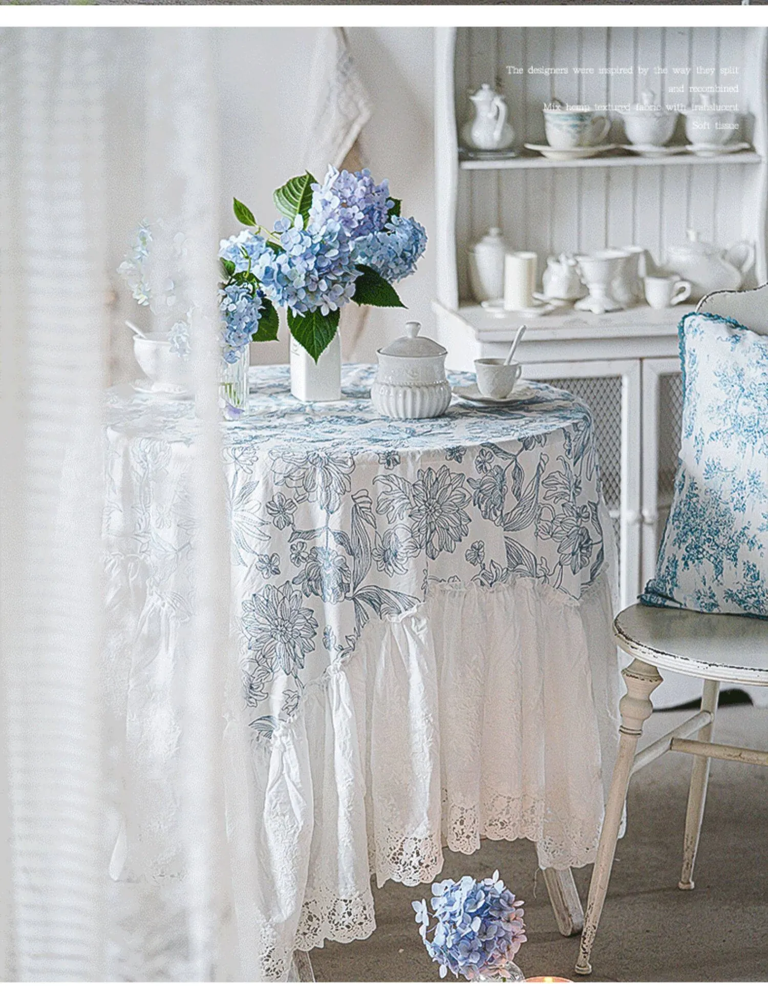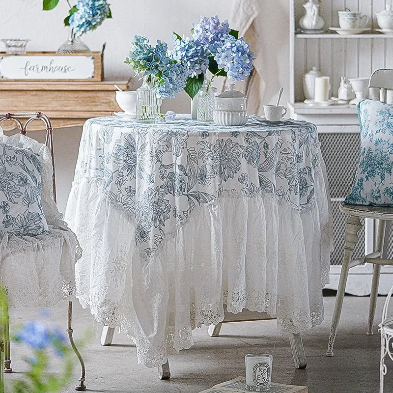 Elegant American Country Style Round Tablecloth with Lace Embroidery – Luxurious Rectangular Table Cover for Dining and Chic Coffee Table Decoration