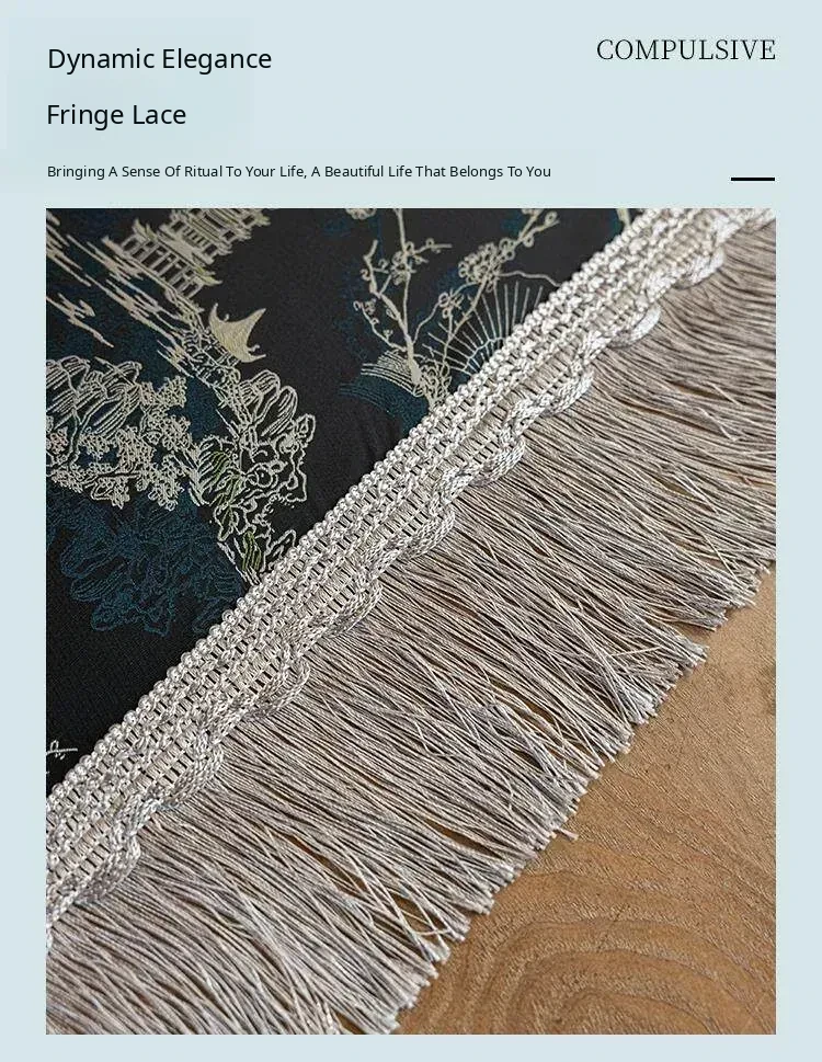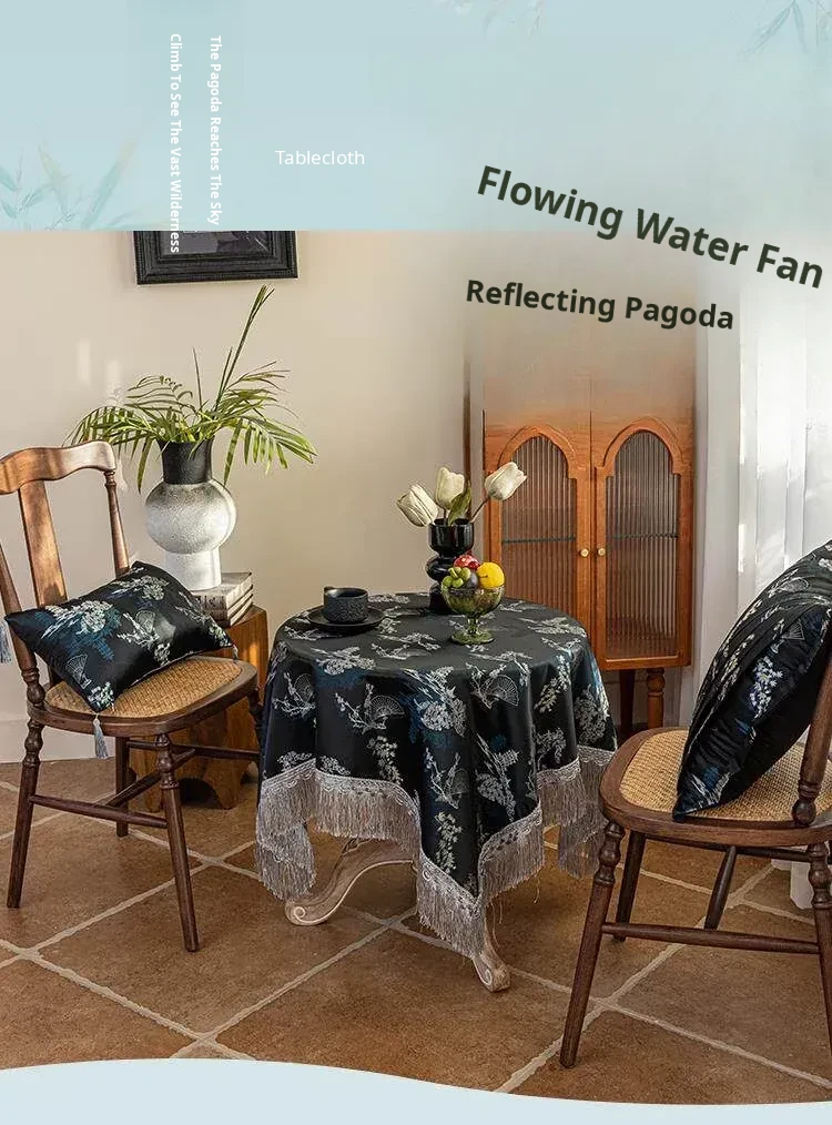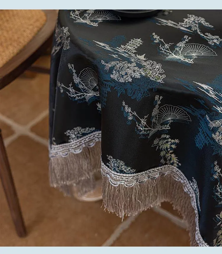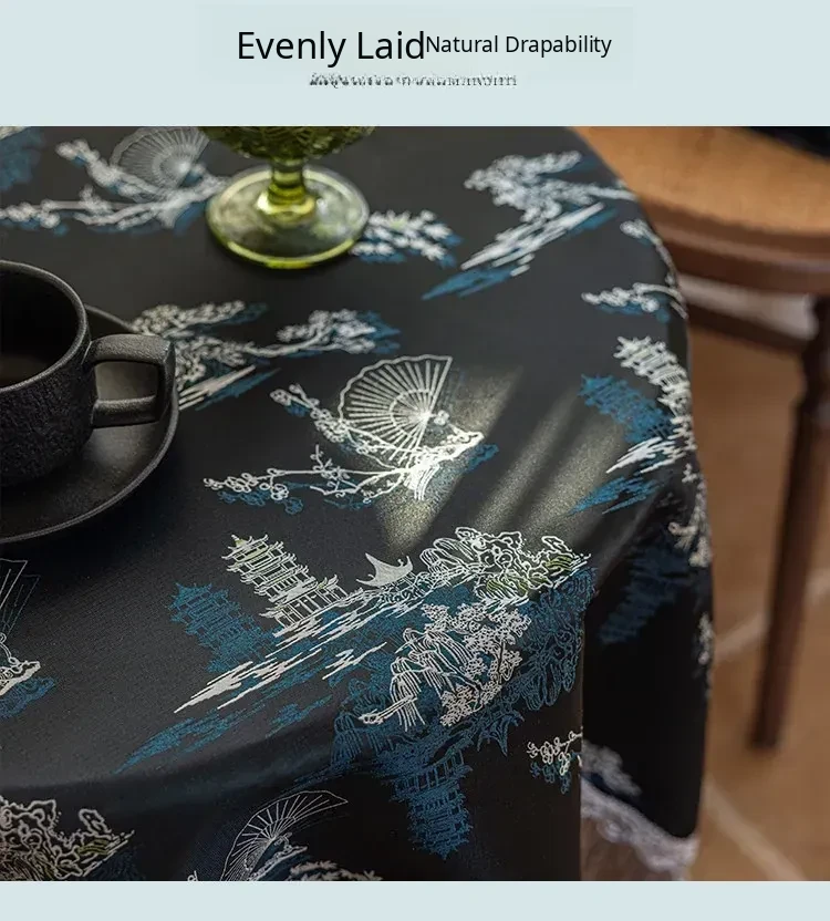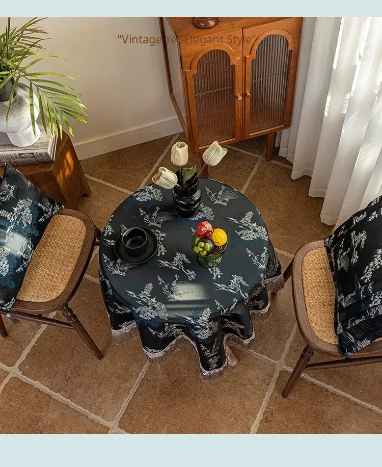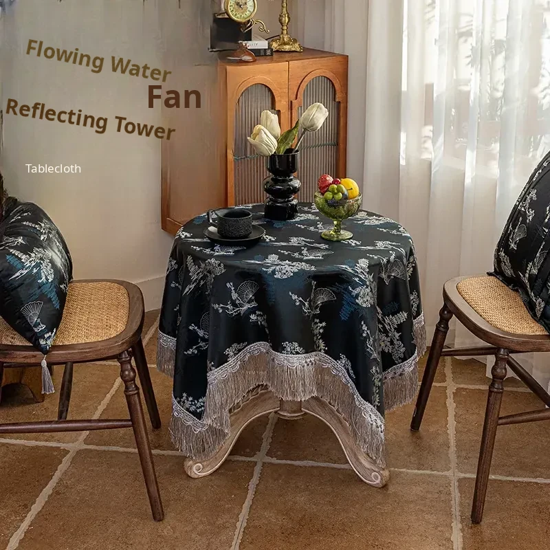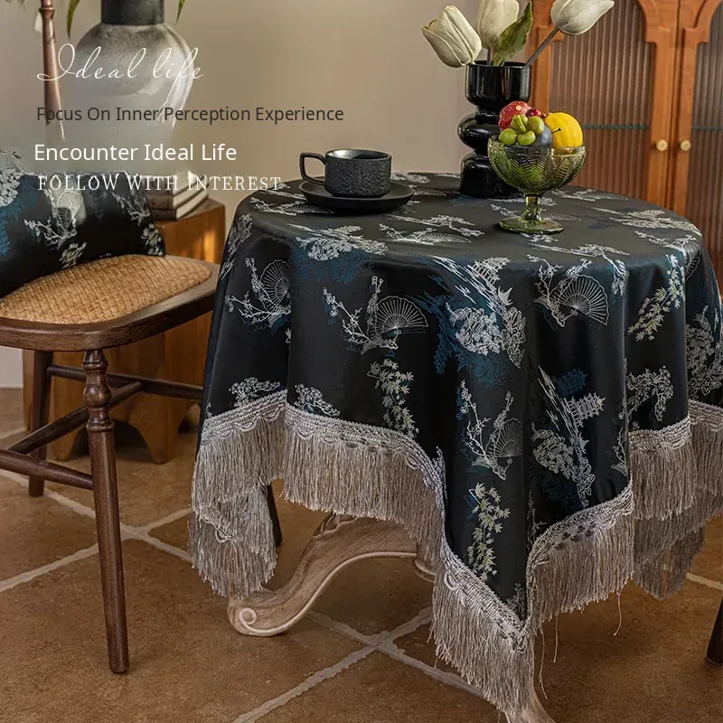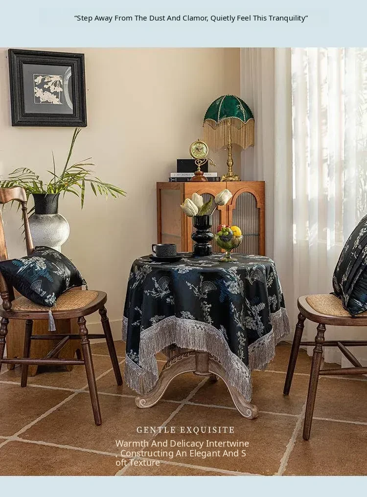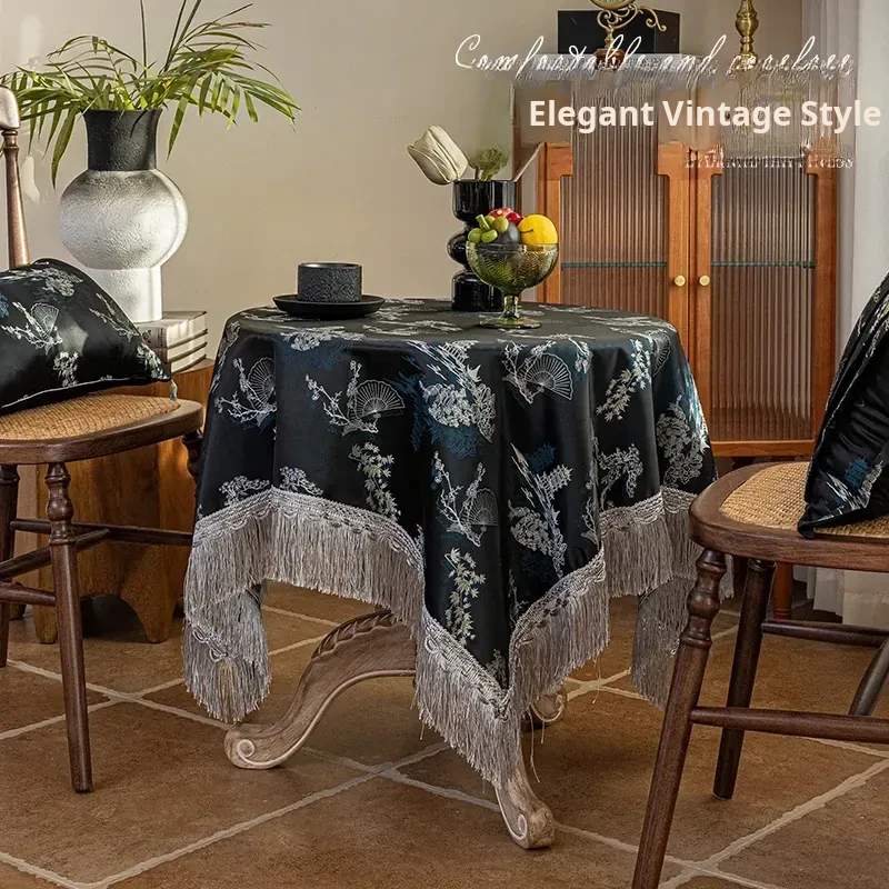 Elegant Black Chinese Style Tablecloth for Dining - Luxurious Lace Retro Design, Perfect for Creating a Cozy Atmosphere in Your Living Room or Tea Table.