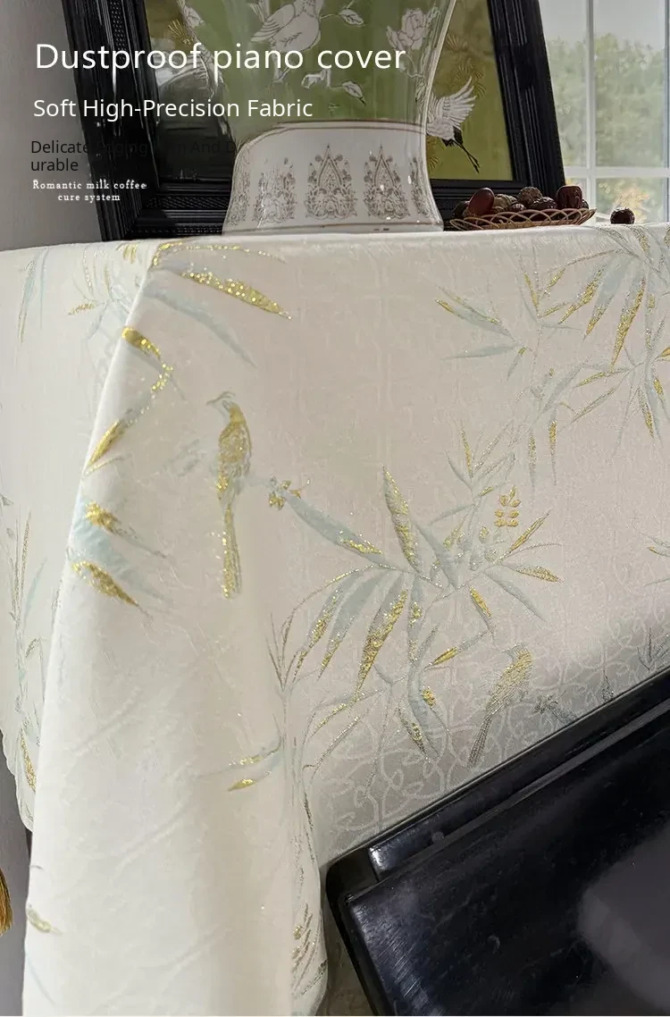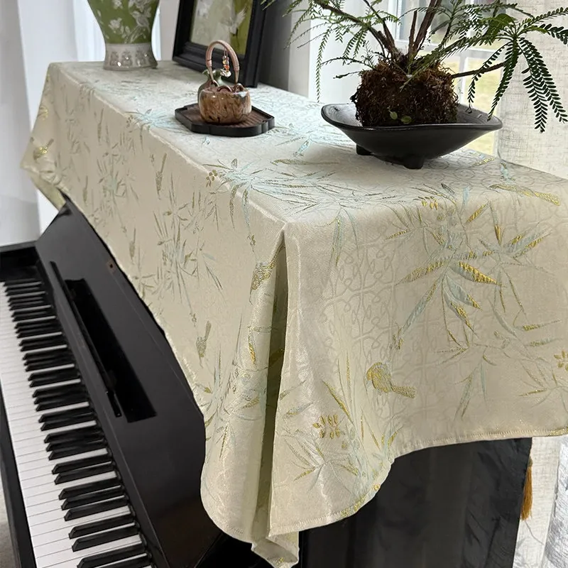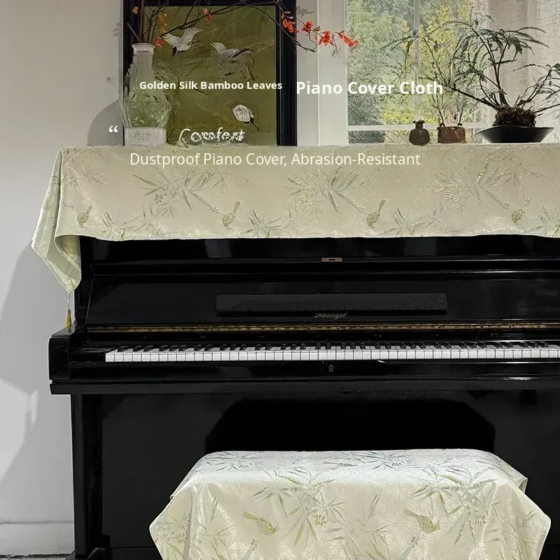 Elegant Chinese-Style Piano Dust Cover - High-End Embroidered Fabric Half Cover for Pianos and Benches, Perfect for a Luxurious Touch in Your Home Decor