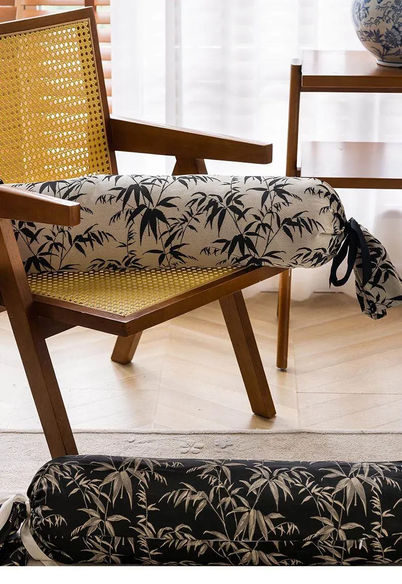 Bamboo Forest Silhouette - Ink Wash Round Tie Pillow