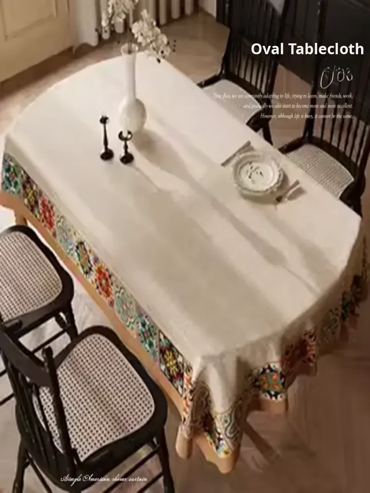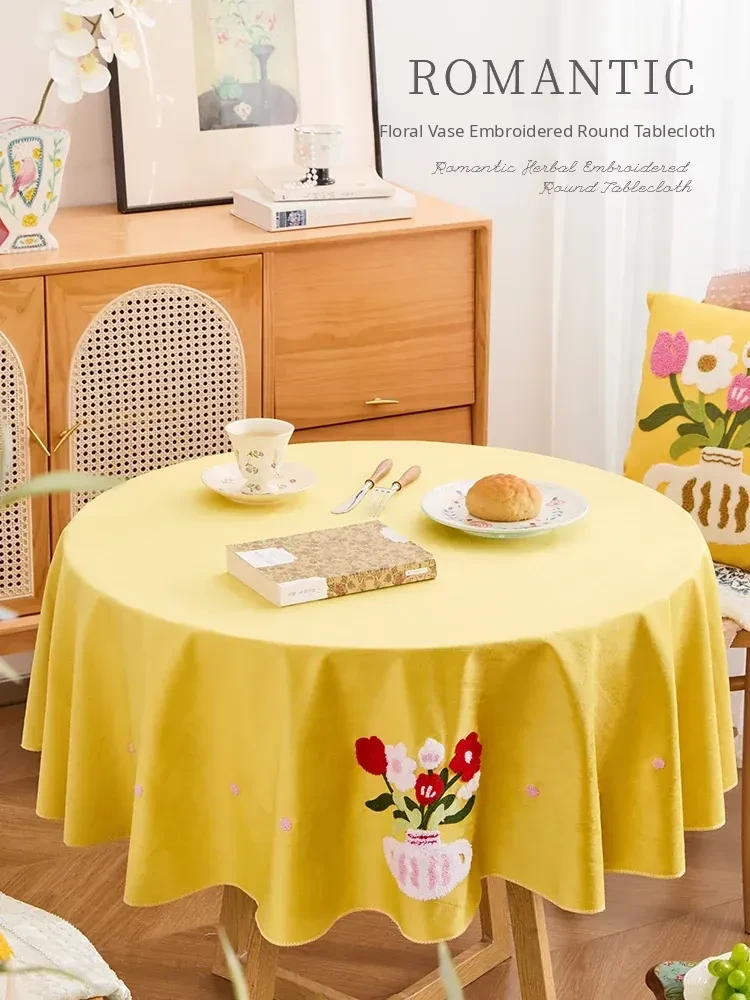 Elegant Minimalist Embroidered Tablecloth - Waterproof, Oil-Resistant, and Easy-Care Rectangular Fabric for Home Use - Perfect for Japanese Tea Tables and Chic Dining Experiences