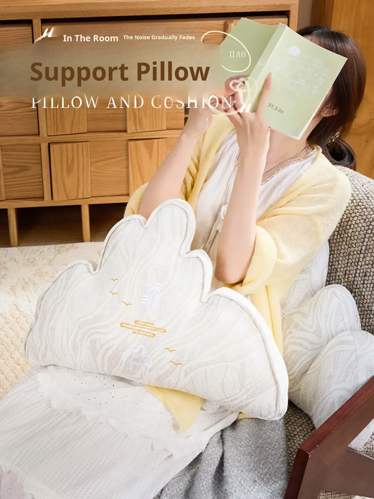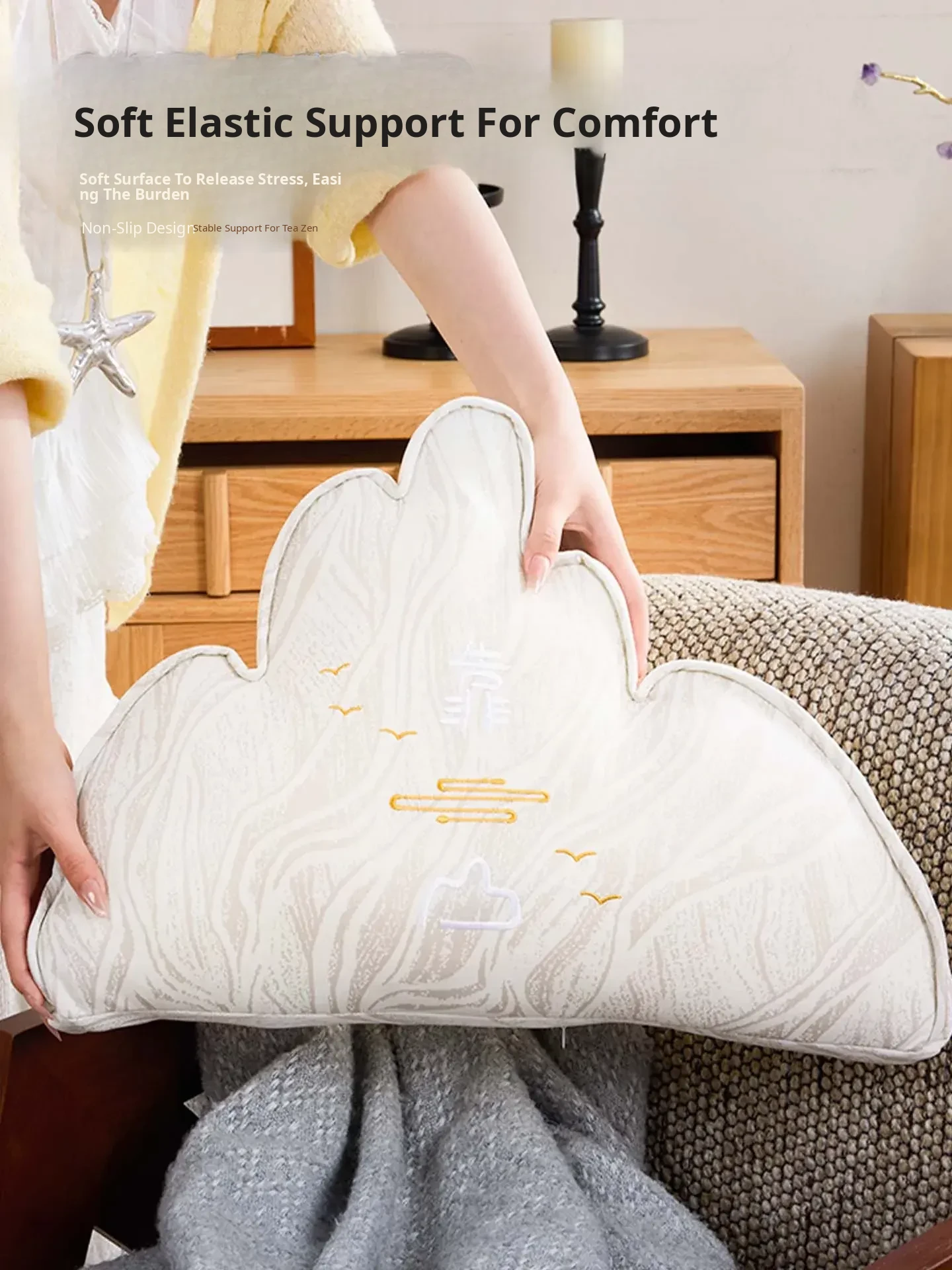 Elegant New Chinese Style Backrest Cushion - Artistic Lumbar Support Pillow for Office Chairs and Living Room Sofas - Enhance Comfort and Aesthetics