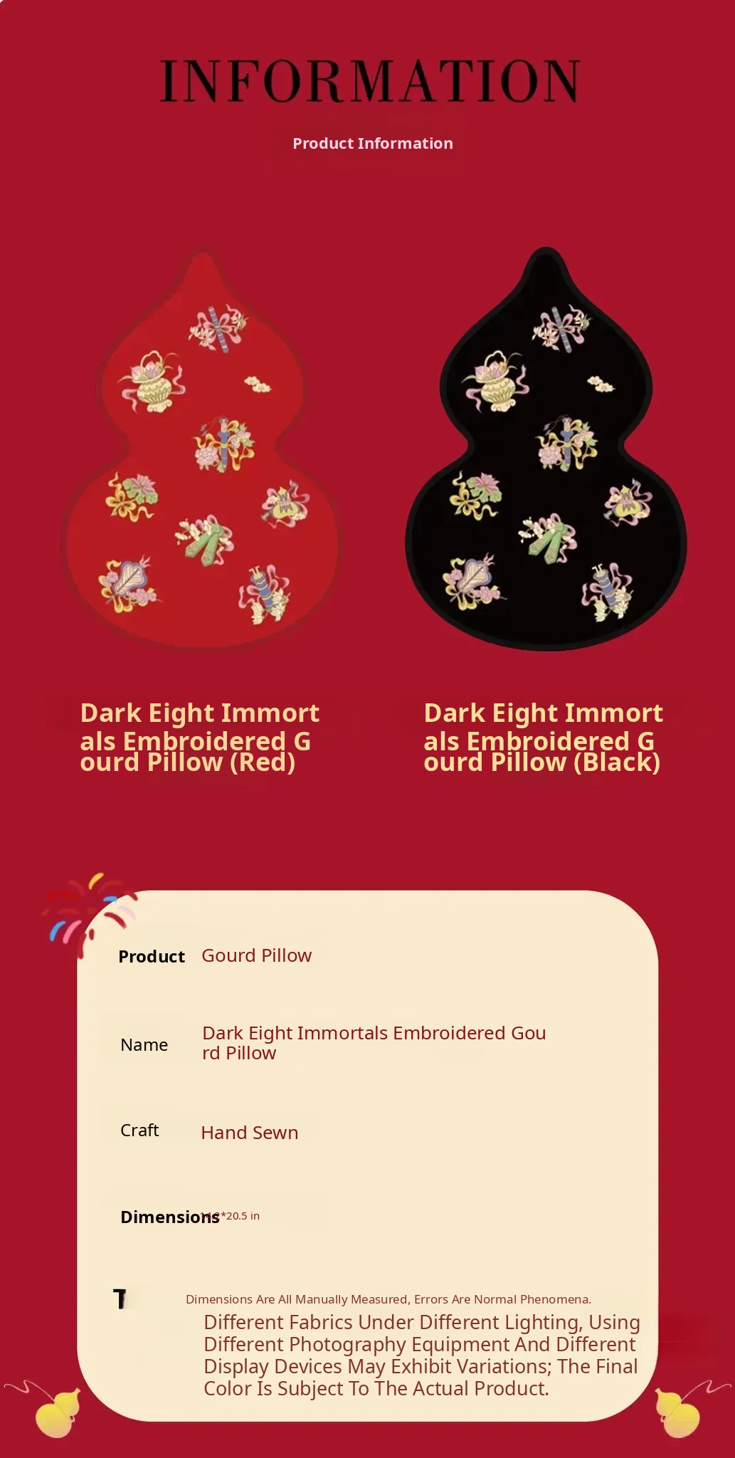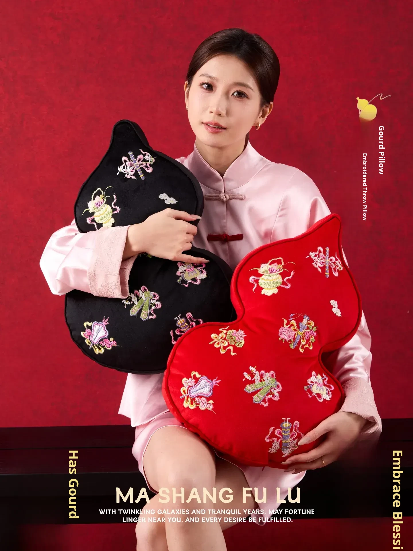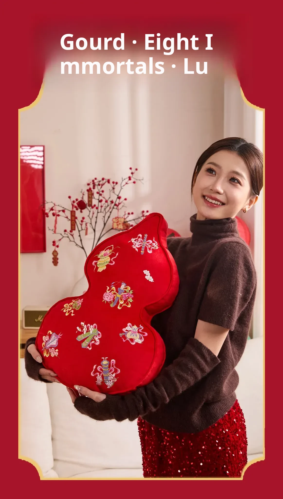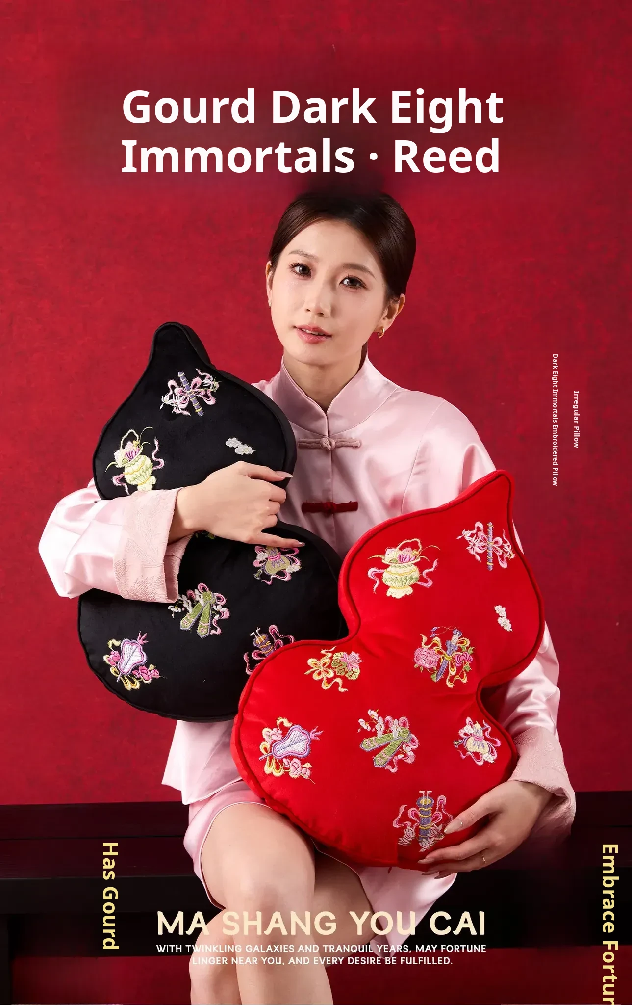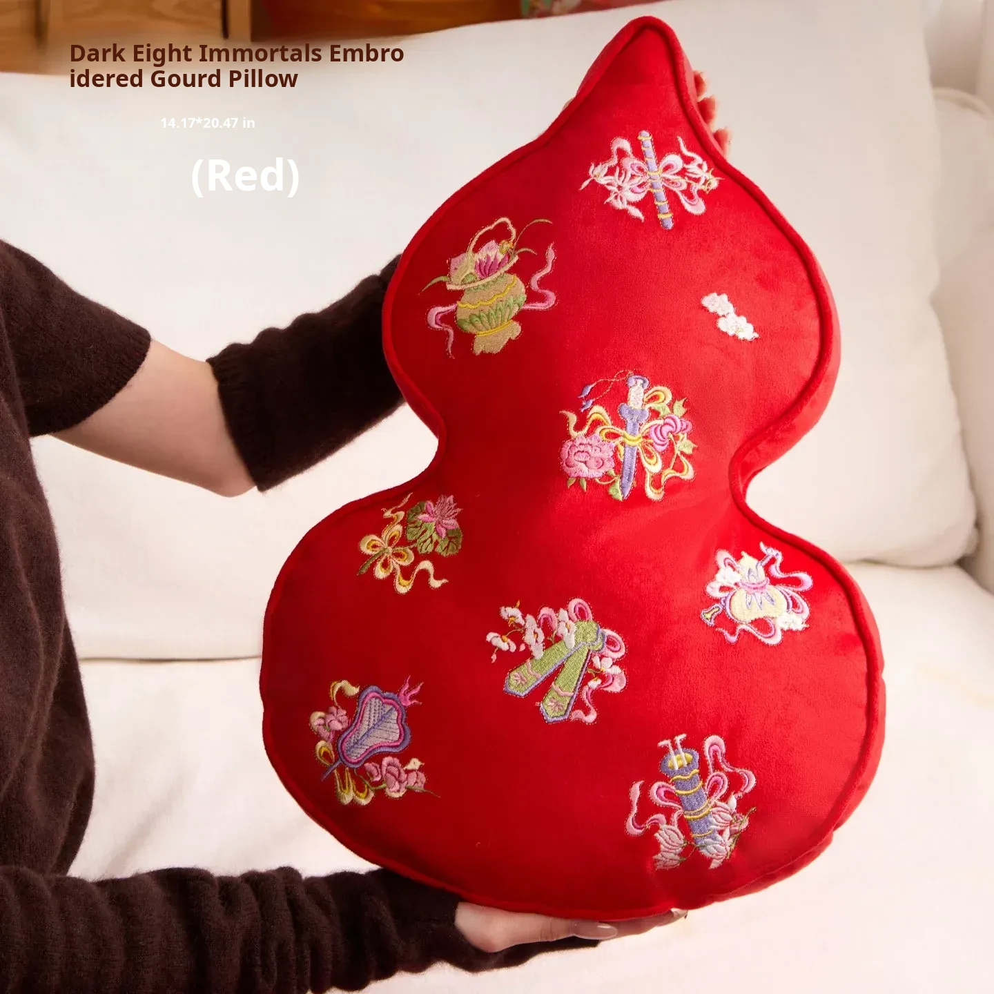 Embroidered Eight Iinortals Gourd Pillow - Red 13.78in*19.69in