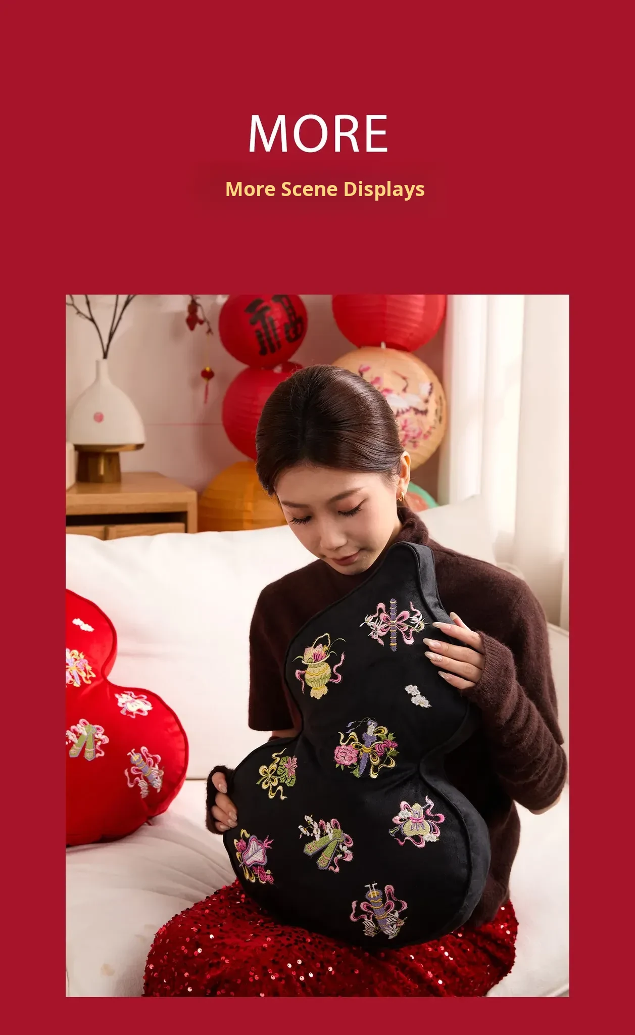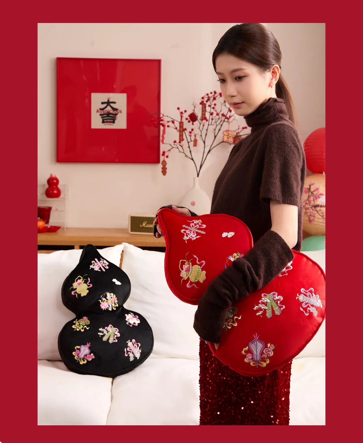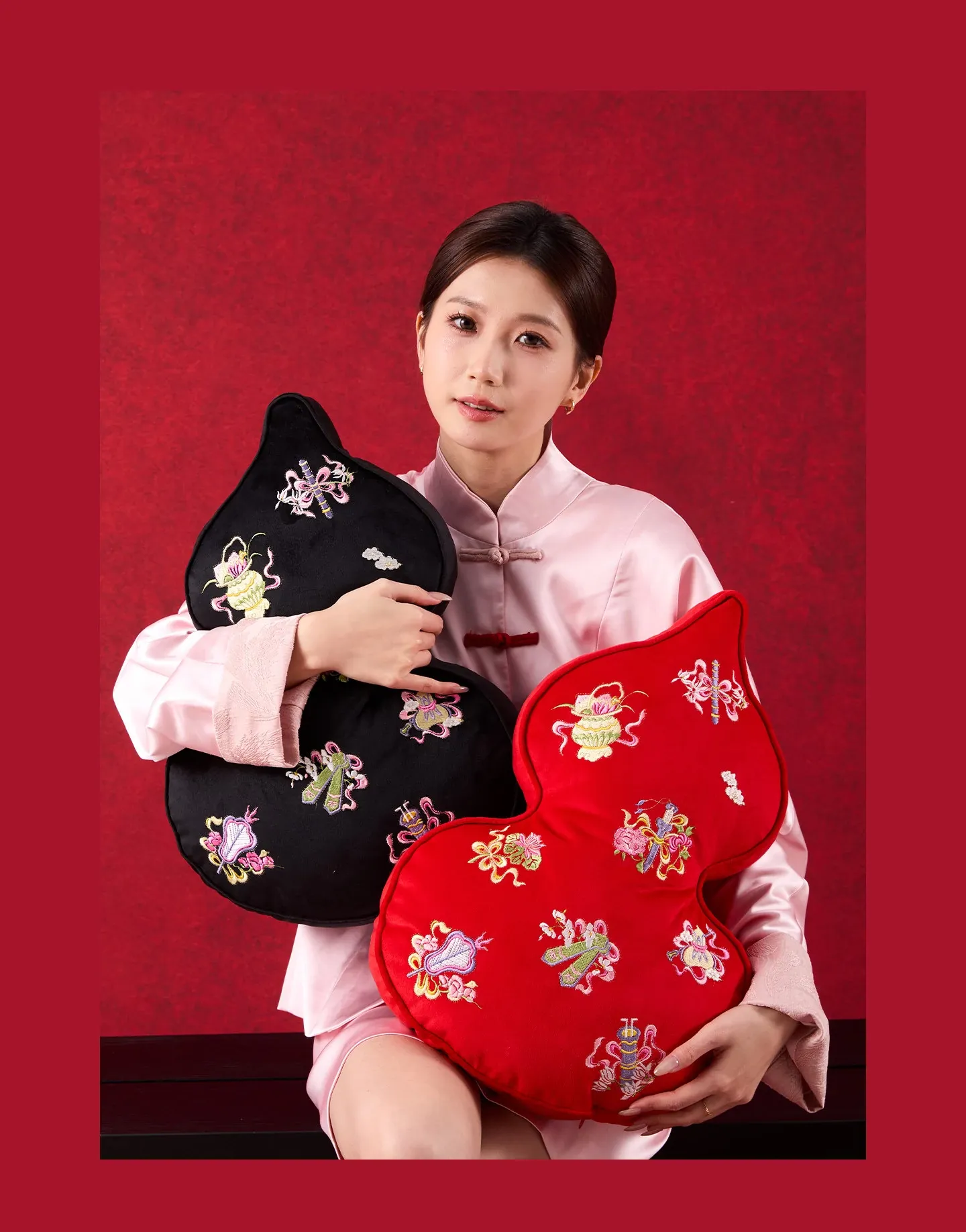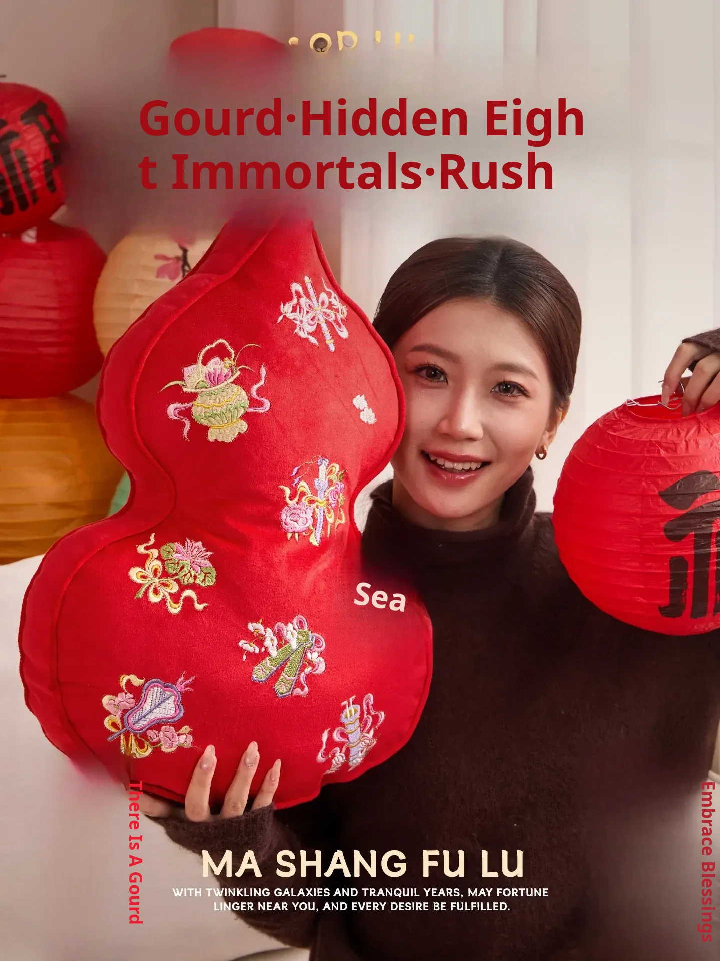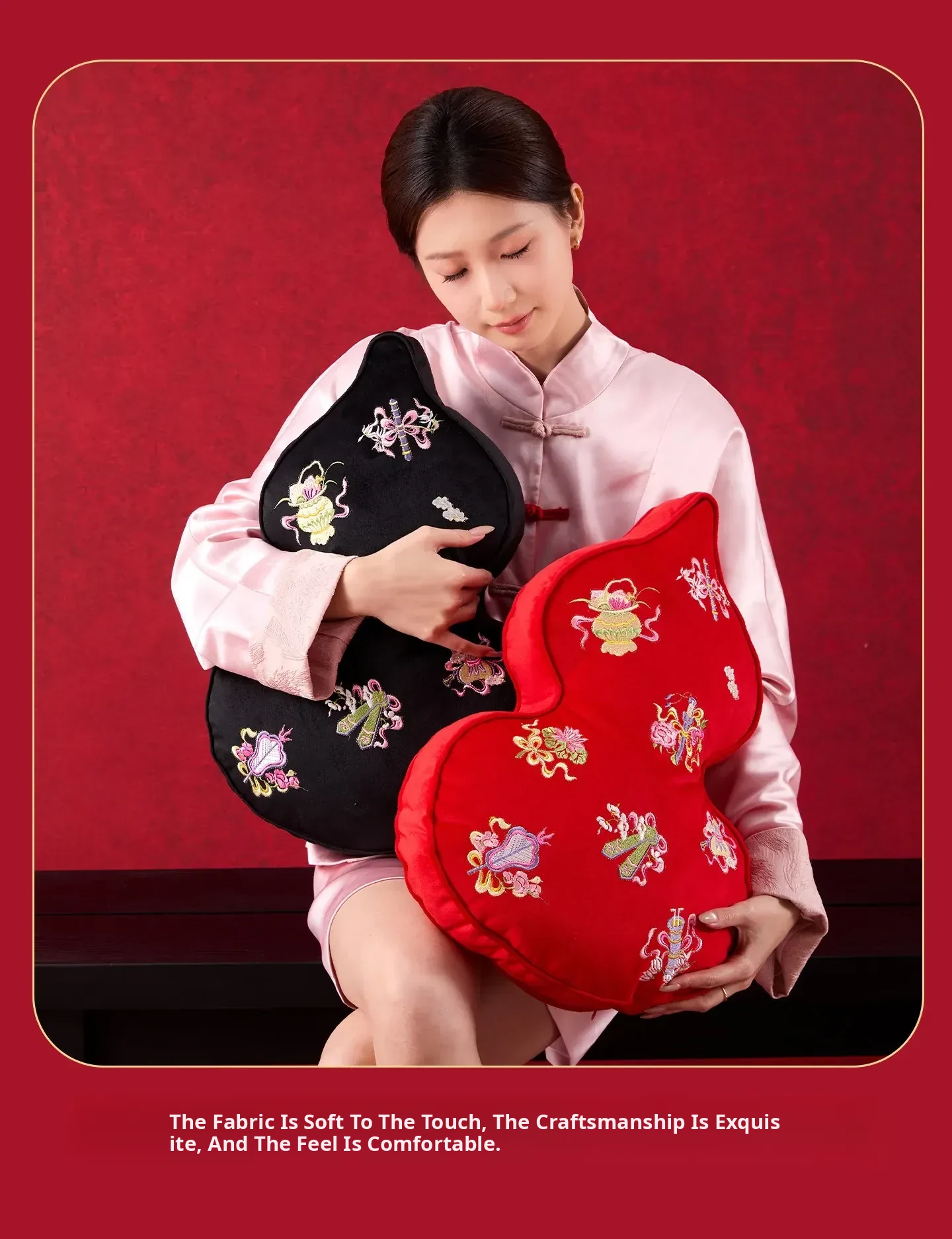 Embroidered Eight Iinortals Gourd Pillow - Red 13.78in*19.69in