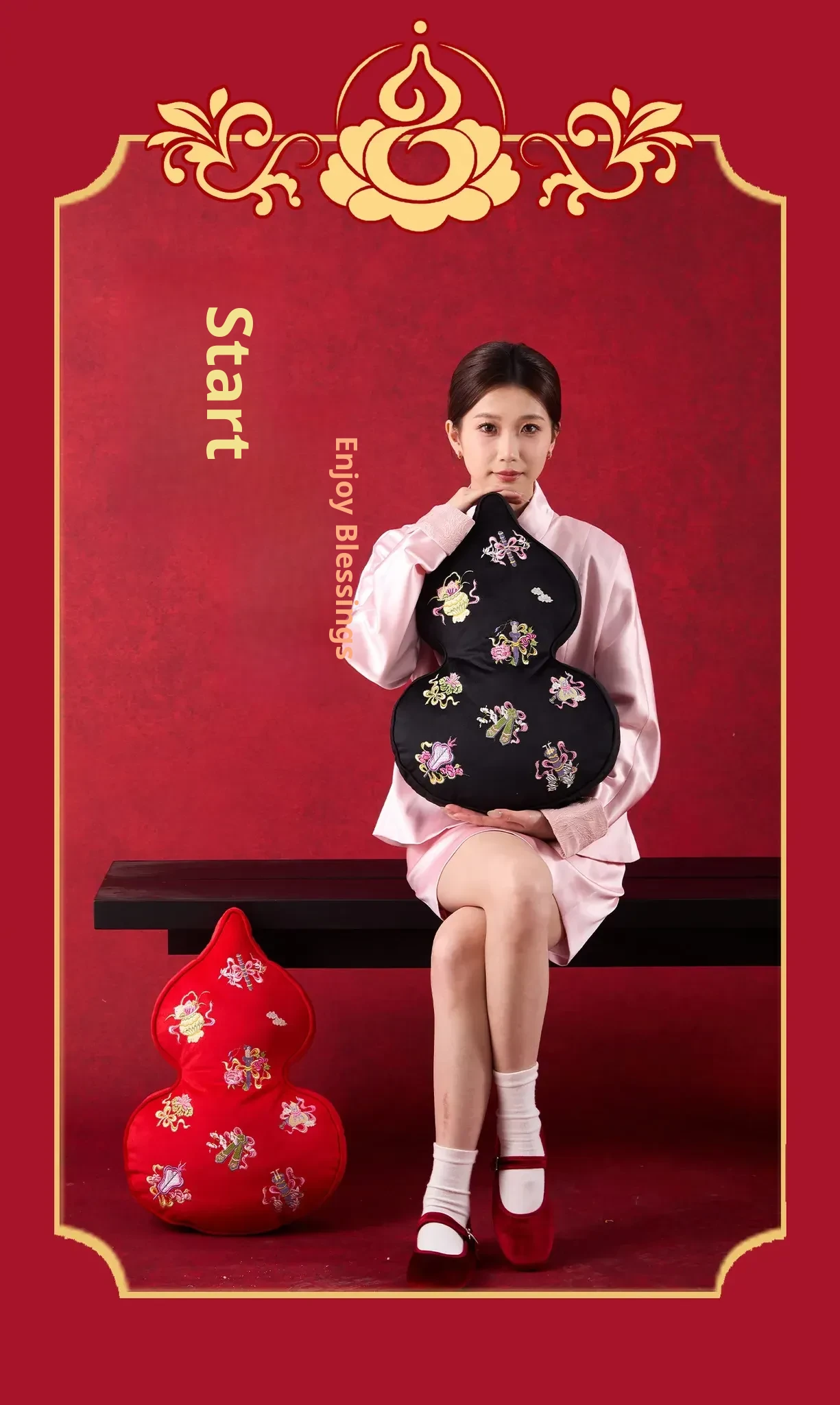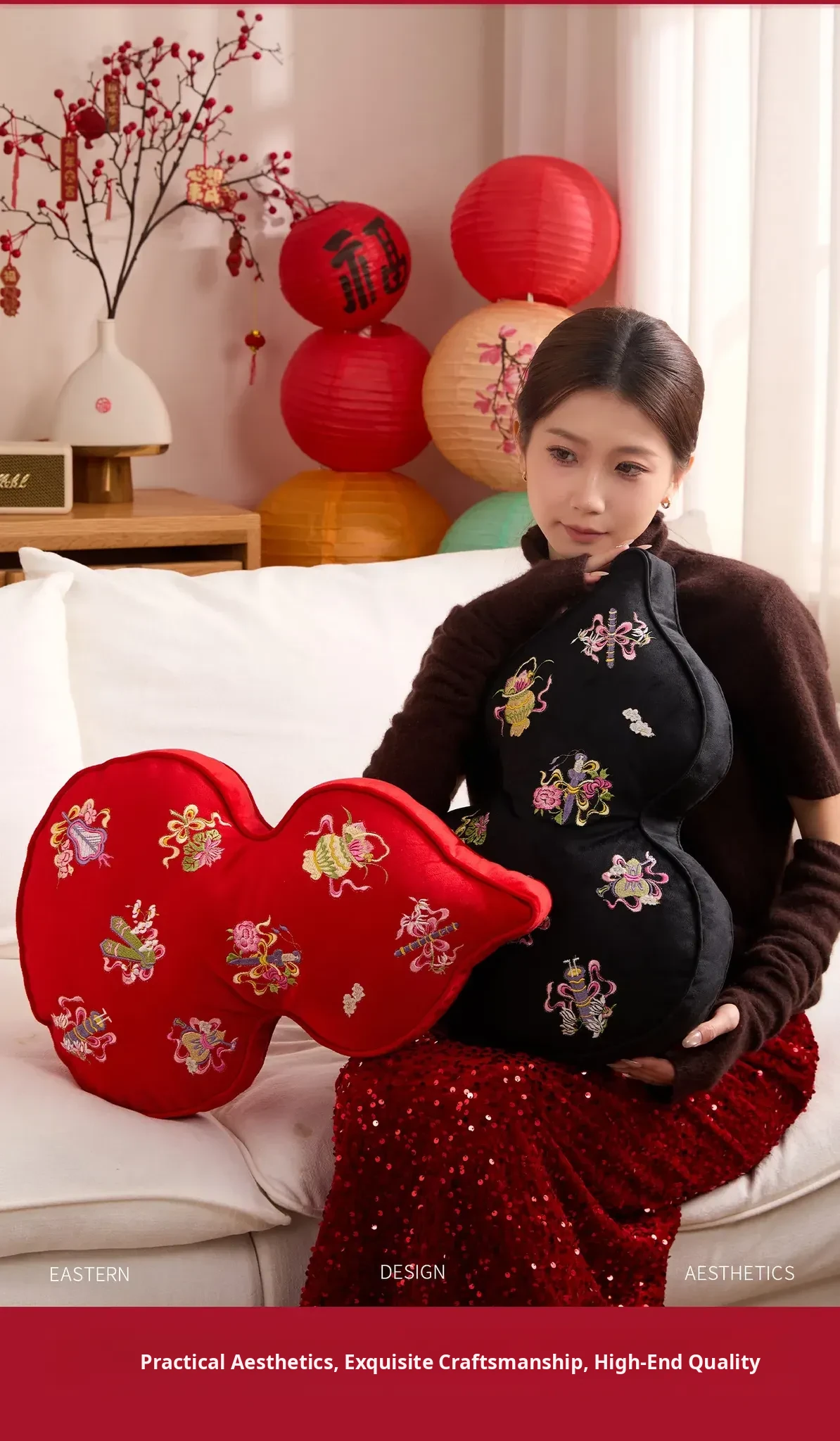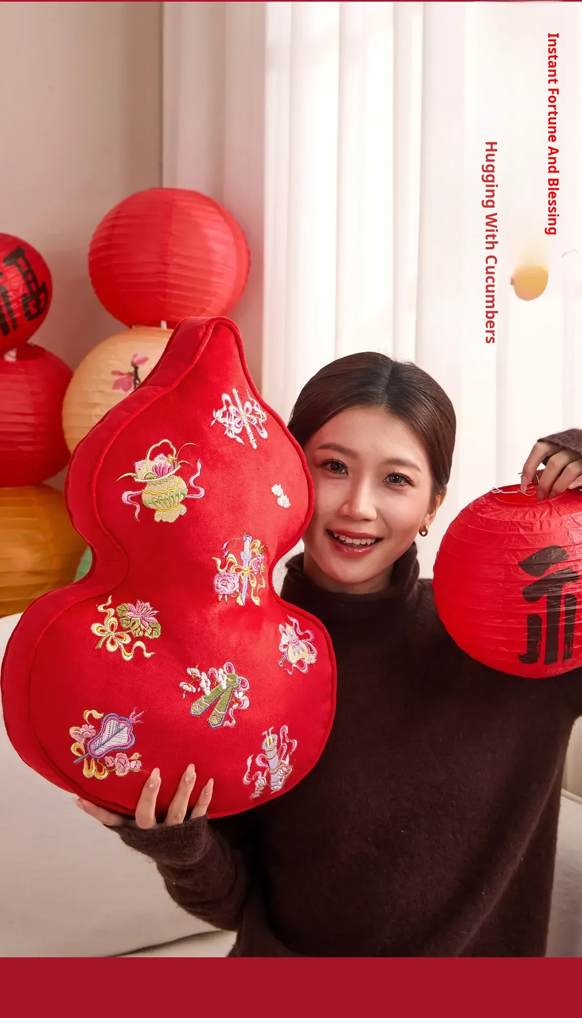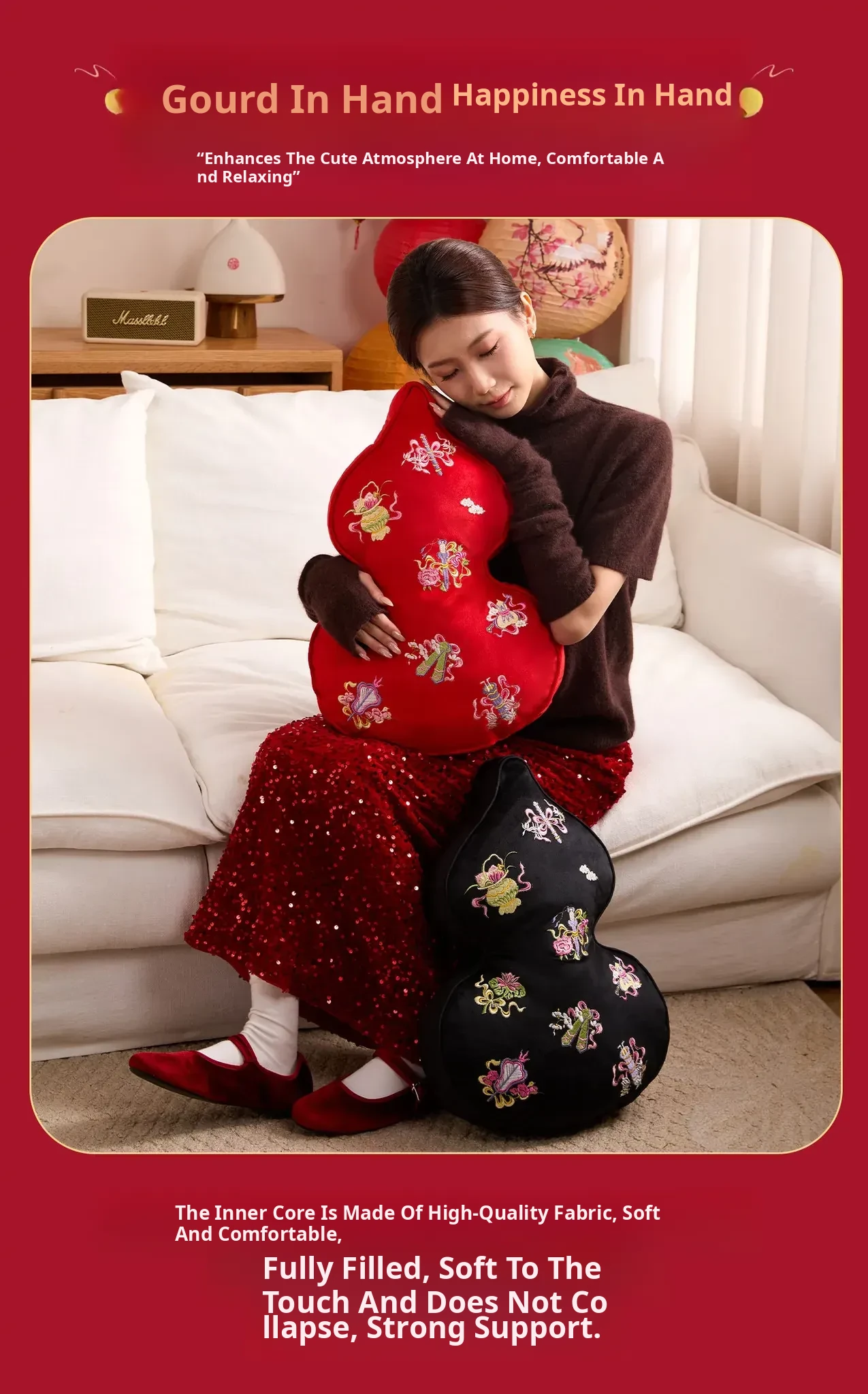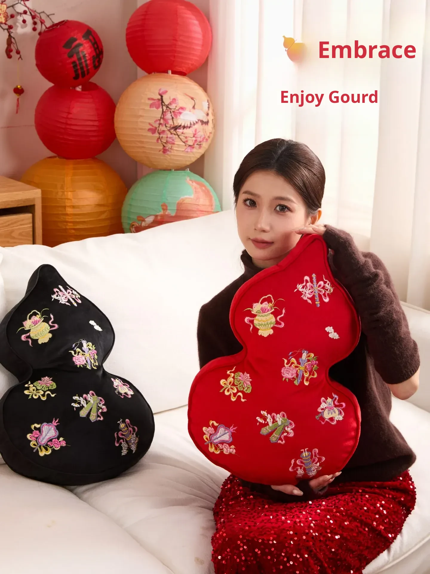 Embroidered Eight Iinortals Gourd Pillow - Red 13.78in*19.69in
