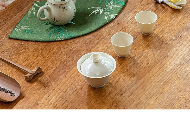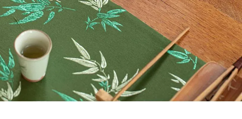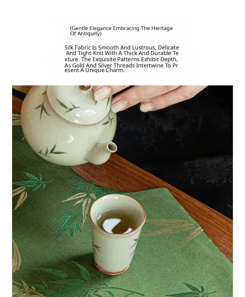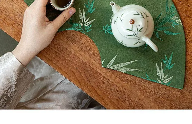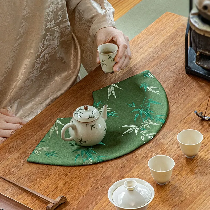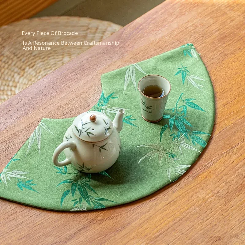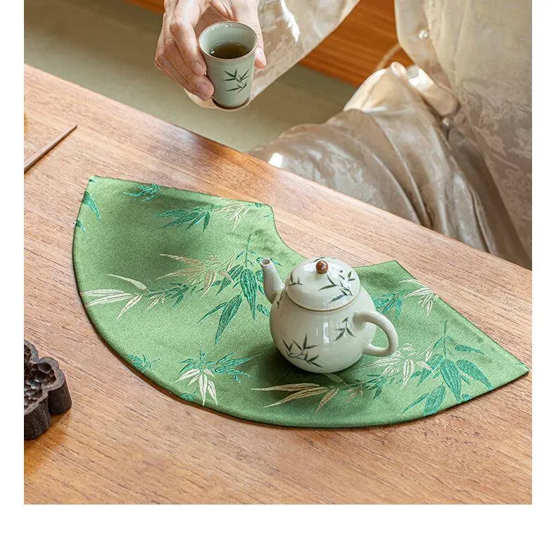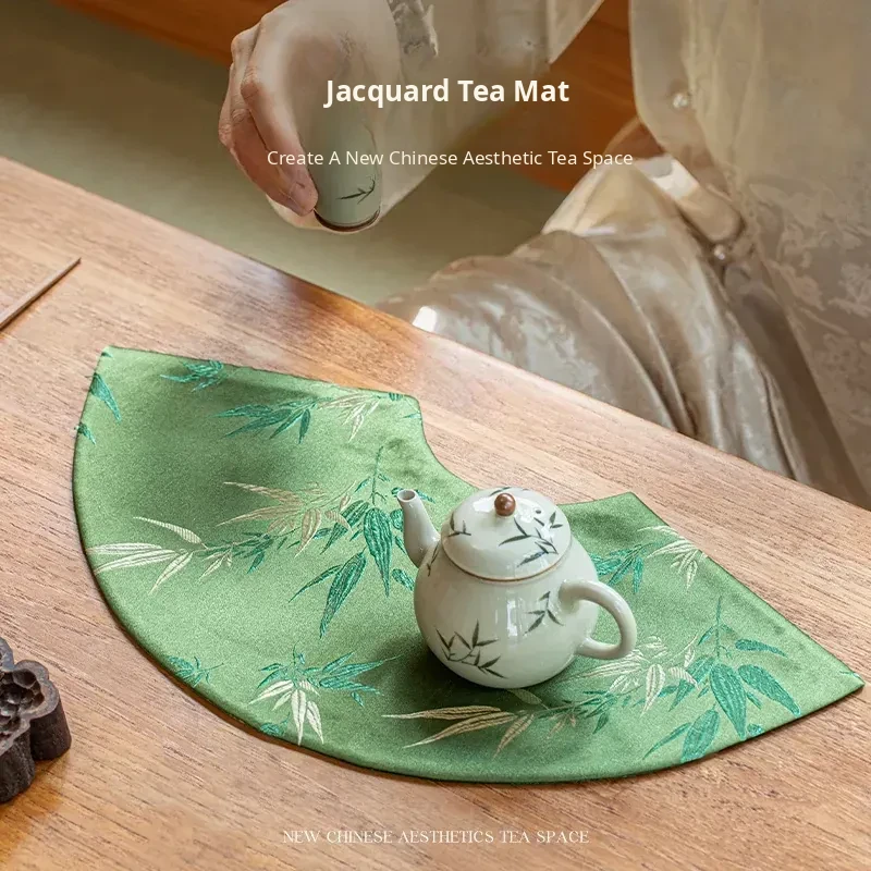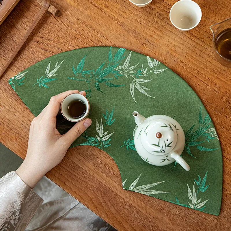 Elegant New Chinese Style Waterproof Fan-Shaped Tea Table Flag - Luxurious Green Bamboo Tea Mat for Dry Brewing, Perfect for High-End Tea Ceremonies