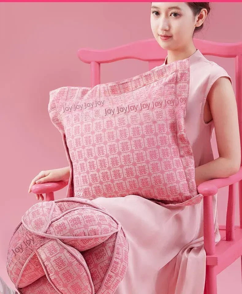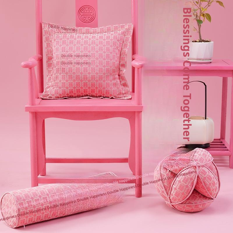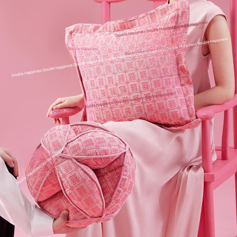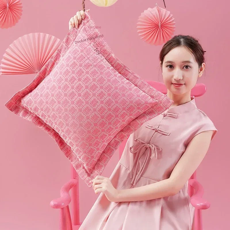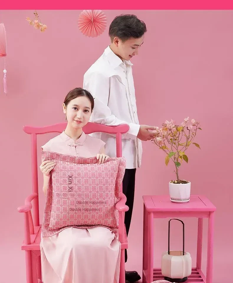Elegant Pink Double Happiness Wedding Decorative Pillow - Perfect for Living Room Sofas, Ideal for Girls' Sleep and Relaxation, Premium Quality Cushion