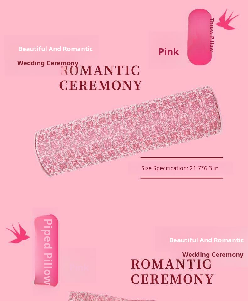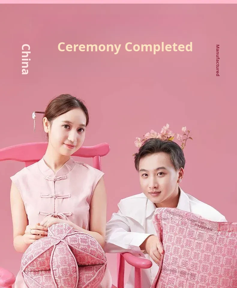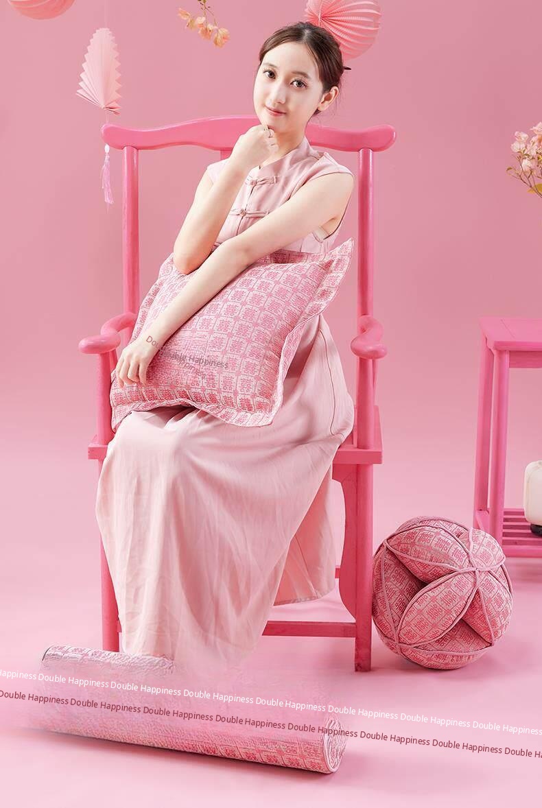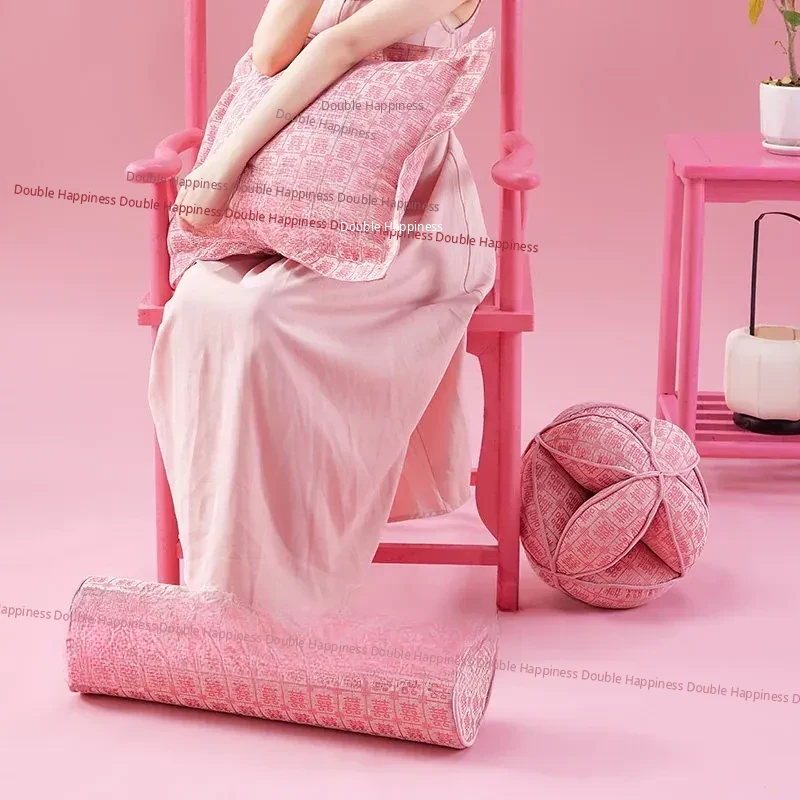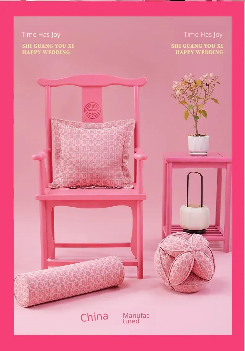 Elegant Pink Double Happiness Wedding Decorative Pillow - Perfect for Living Room Sofas, Ideal for Girls' Sleep and Relaxation, Premium Quality Cushion