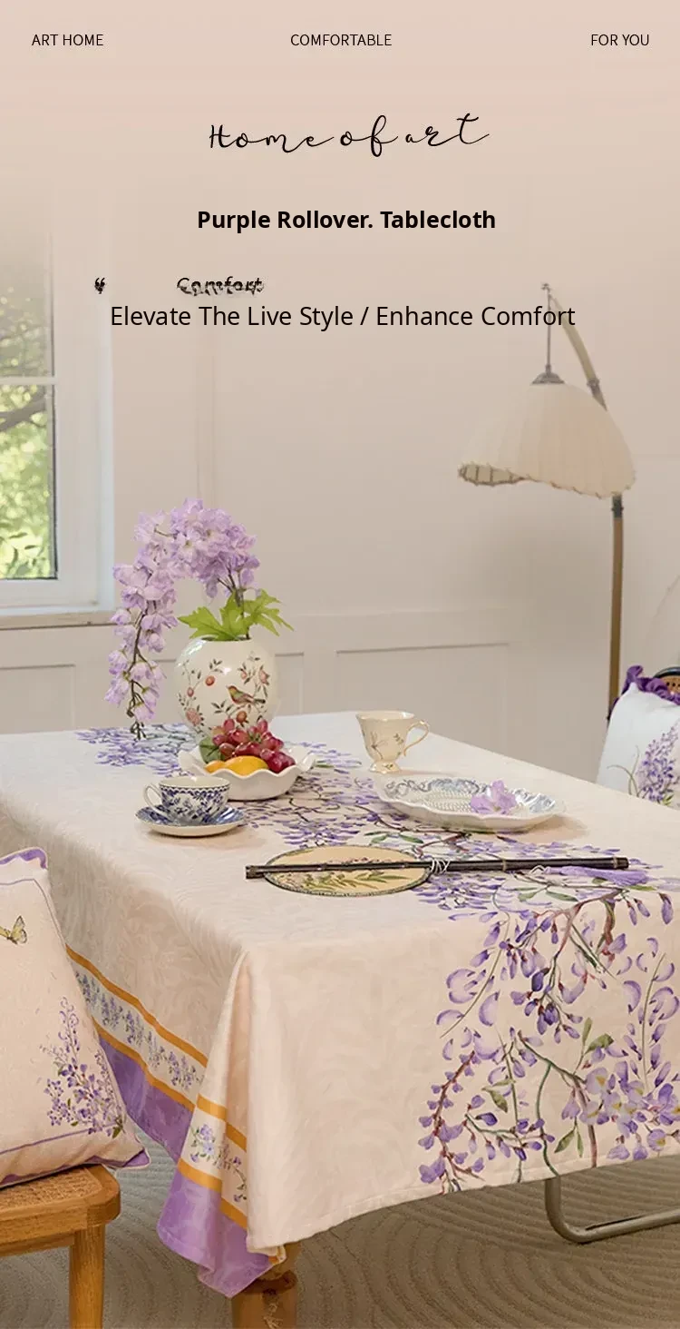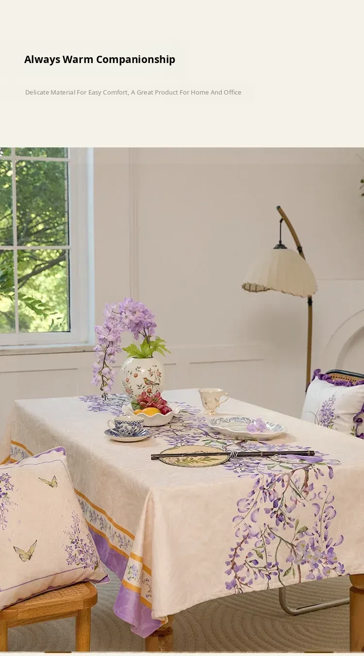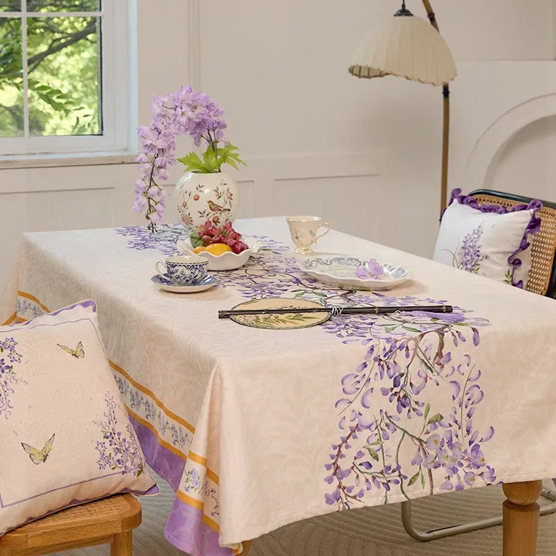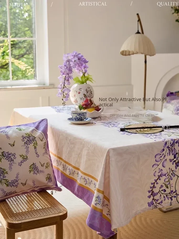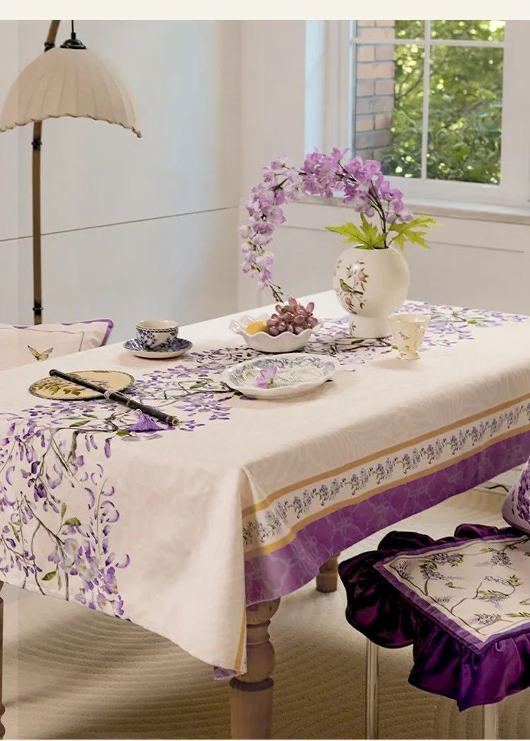 Elegant Purple Rectangular French Tablecloth - 2026 New Collection for a Luxurious Touch, Perfect for American Coffee Tables and Dining Spaces.