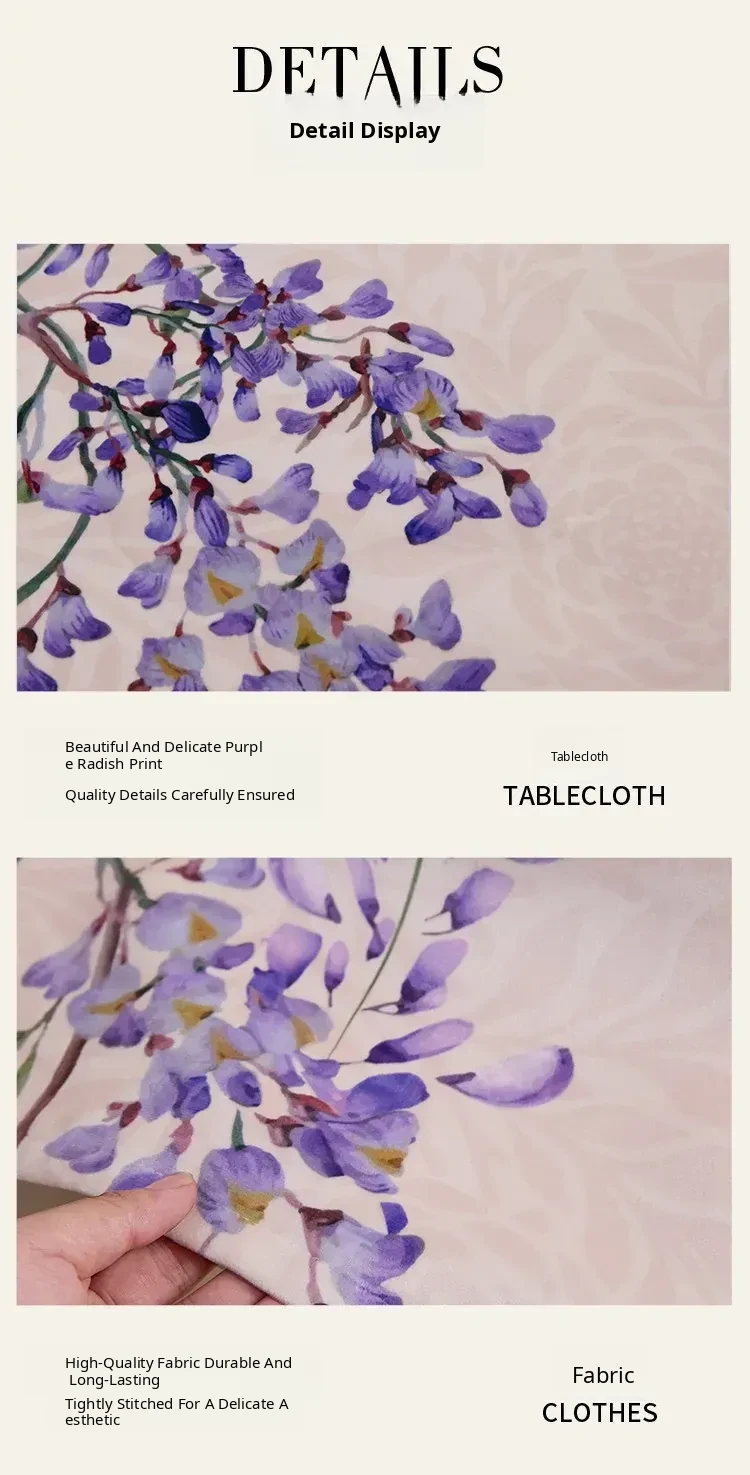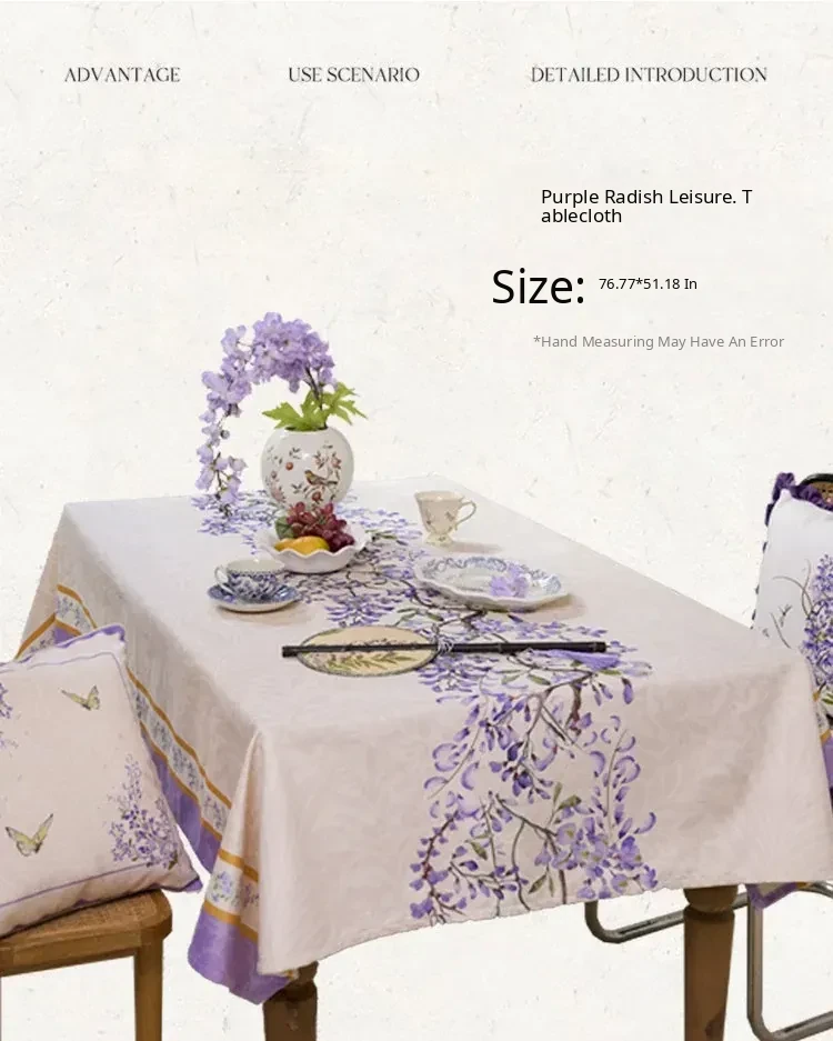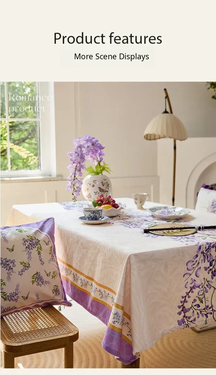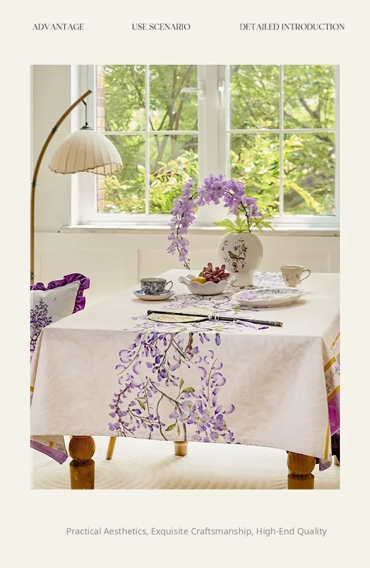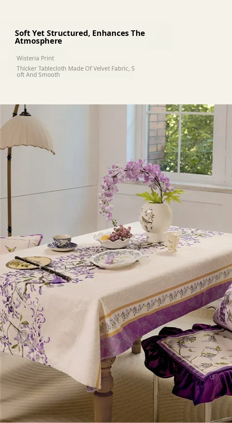Elegant Purple Rectangular French Tablecloth - 2026 New Collection for a Luxurious Touch, Perfect for American Coffee Tables and Dining Spaces.