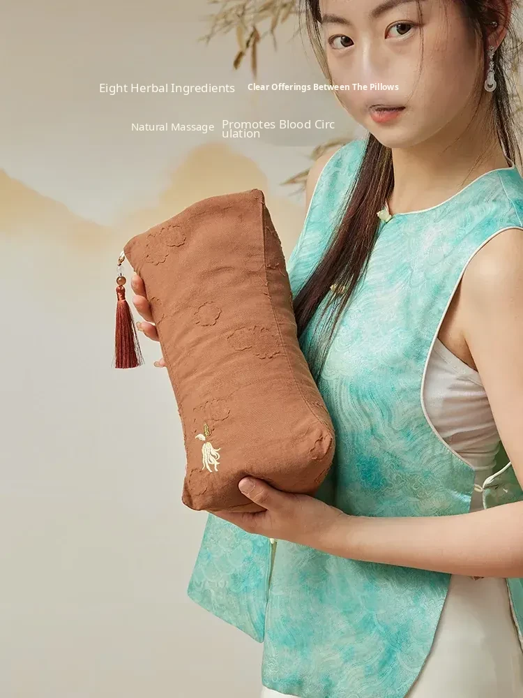 Ergonomic New Chinese Style Neck Support Sleep Wellness Pillow – Portable Herbal Long Rectangular Cervical Pillow for Neck Health and Better Sleep