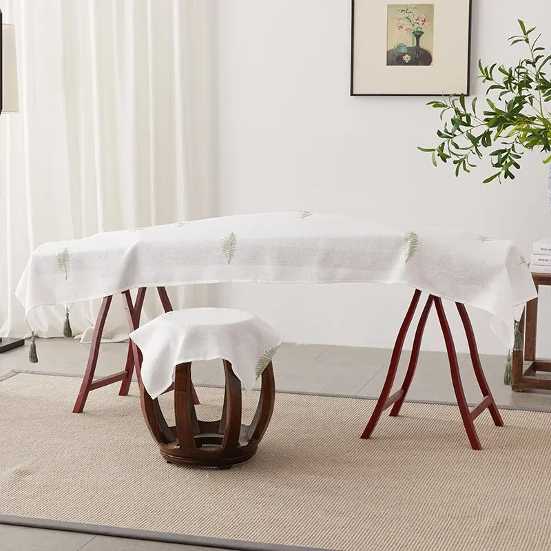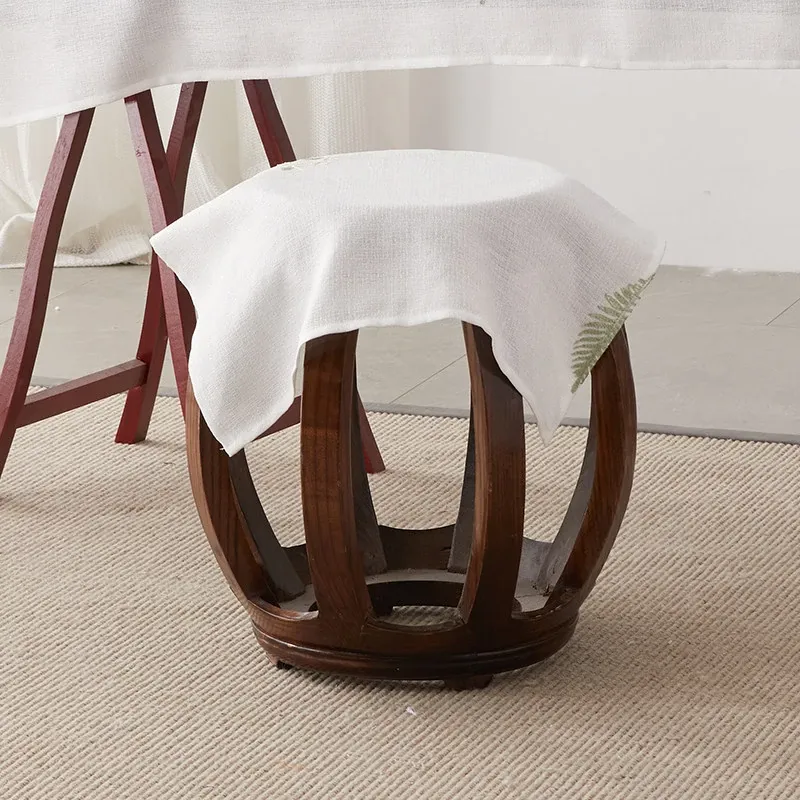 White flower and green leaf stool cover