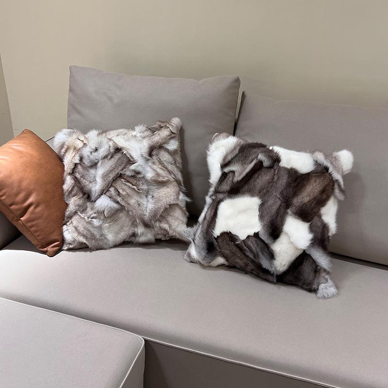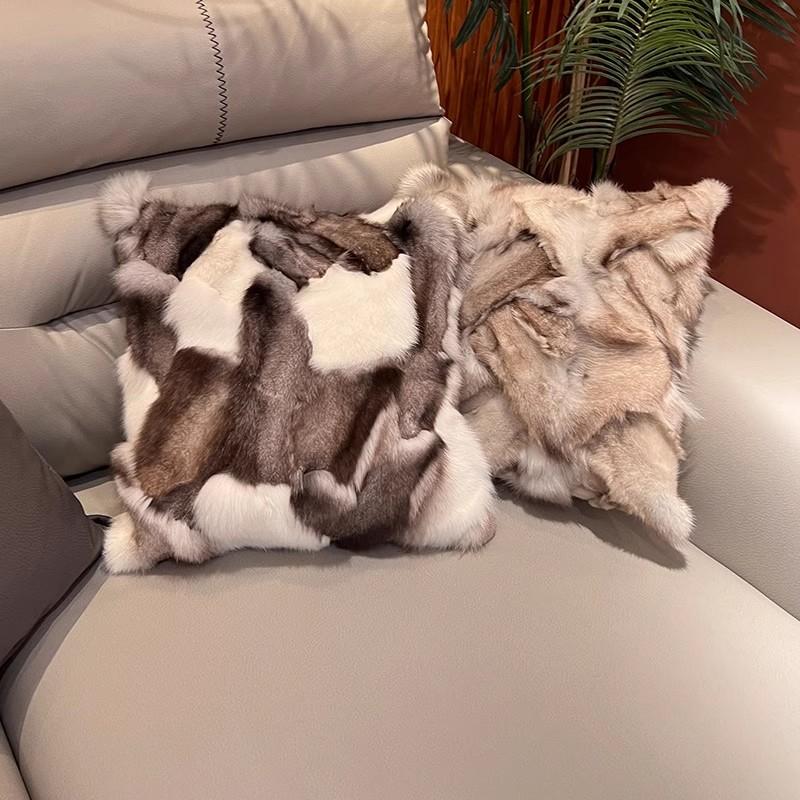 Luxury Real Fox Fur Outdoor Throw Pillow Cover - Elegant Cushion for Living Room Sofa, Bedside Backrest, Model Room, and Patio - Perfect for Adding a Touch of Opulence to Your Space