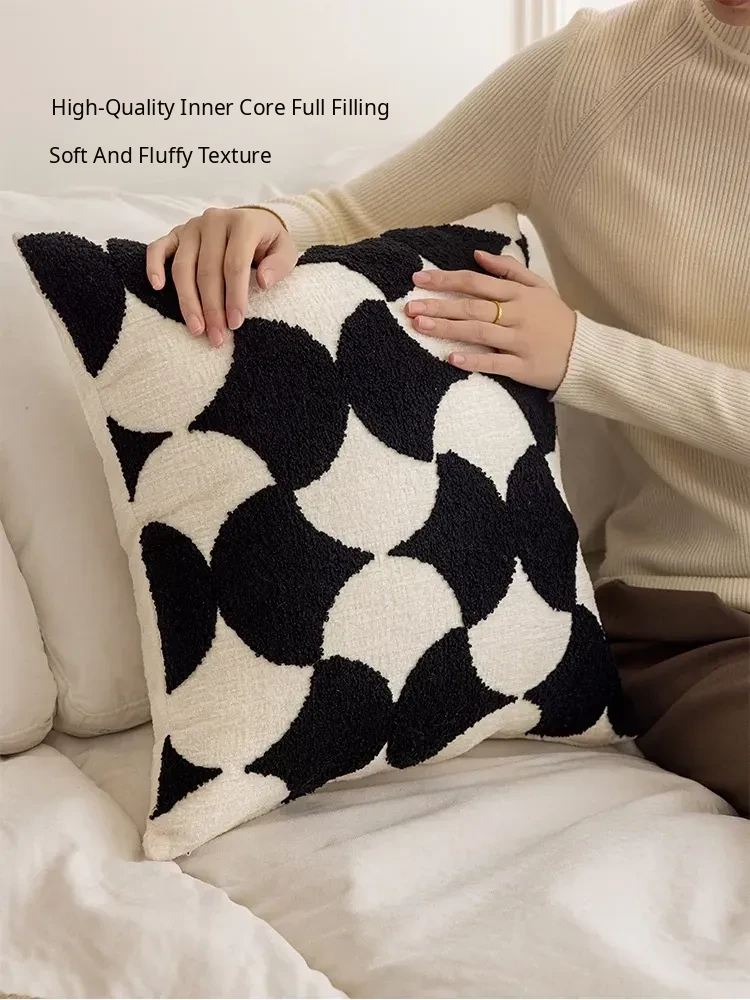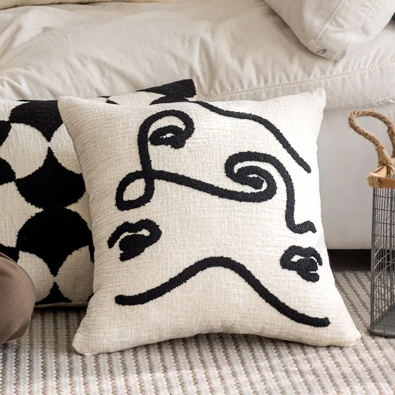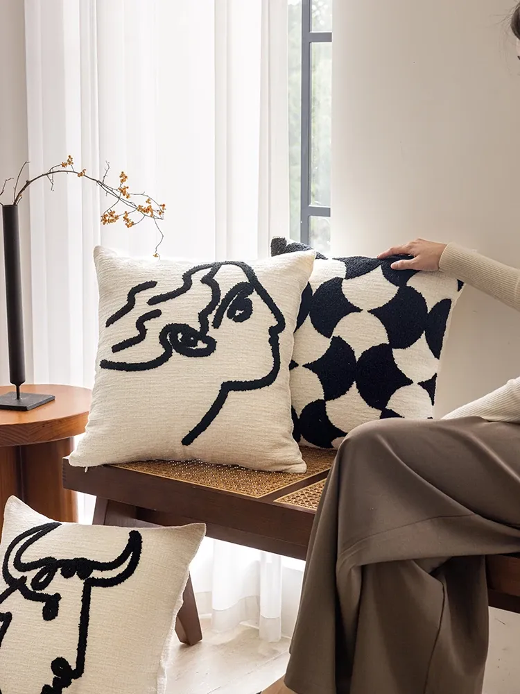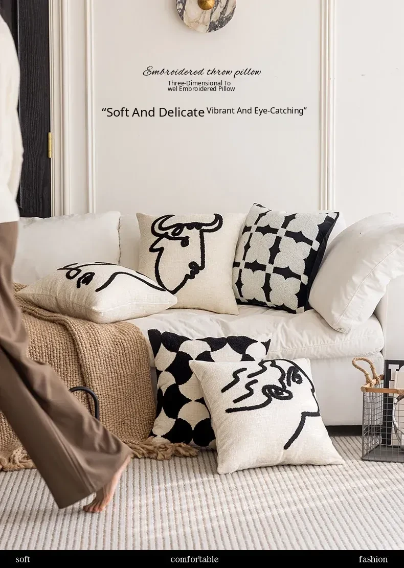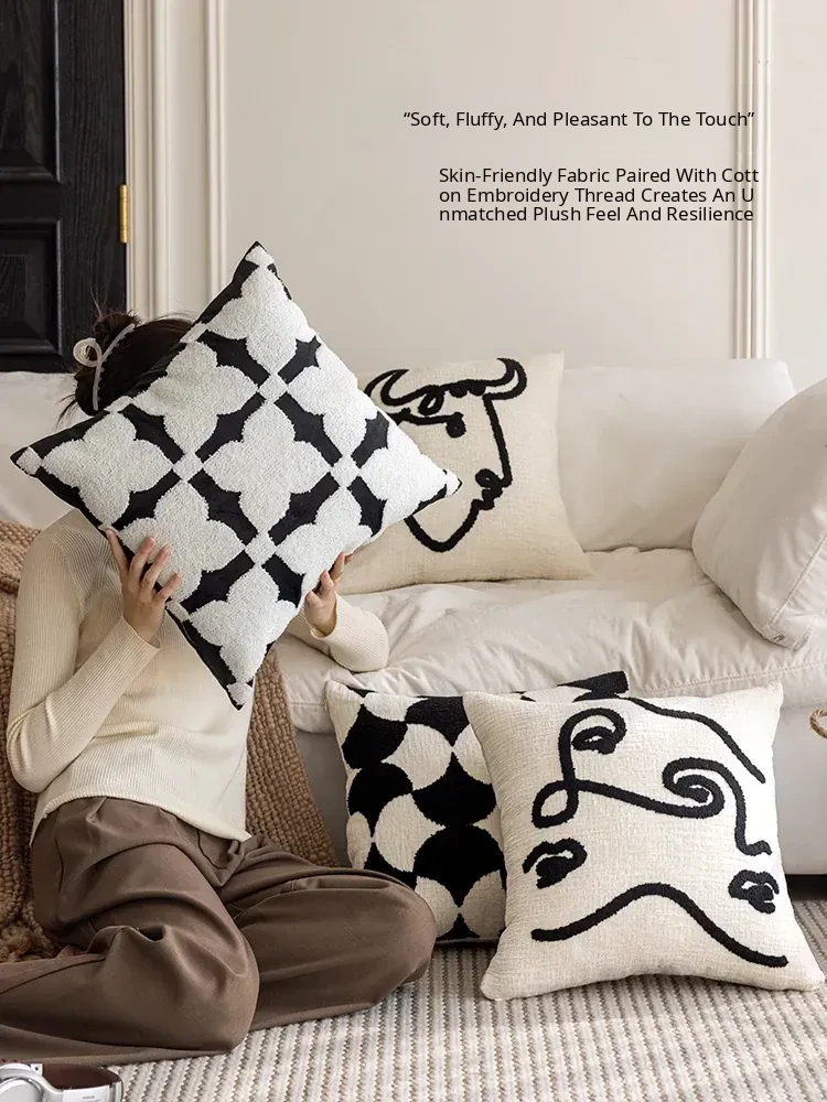 Minimalist French Black and White Luxury Nordic Throw Pillow Covers - Elegant Embroidered Cushions for Living Room Sofa, Perfect for Hotel Sample Rooms