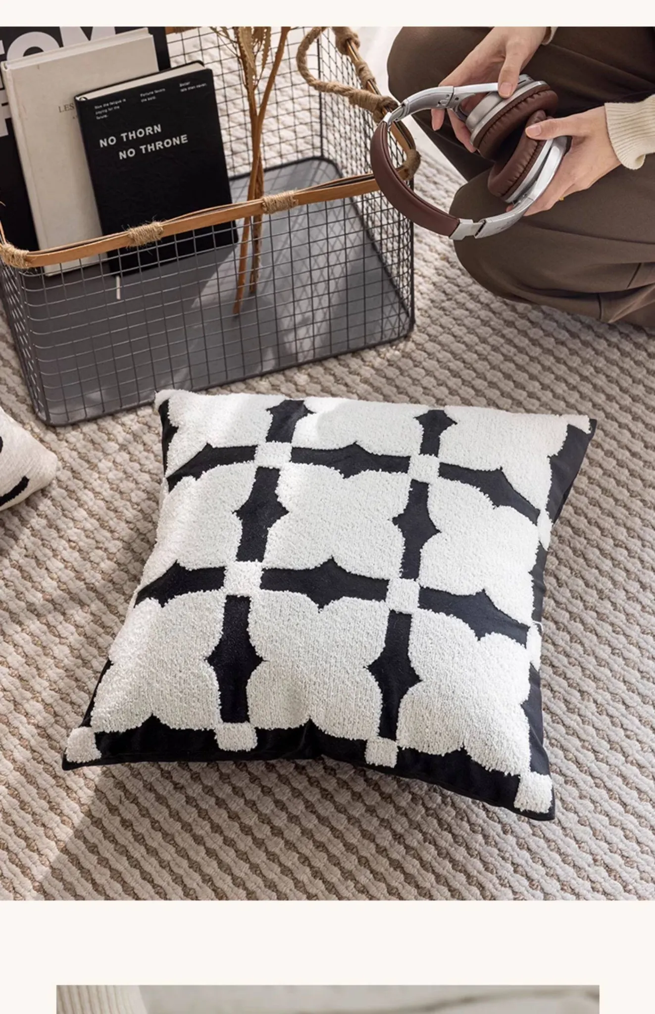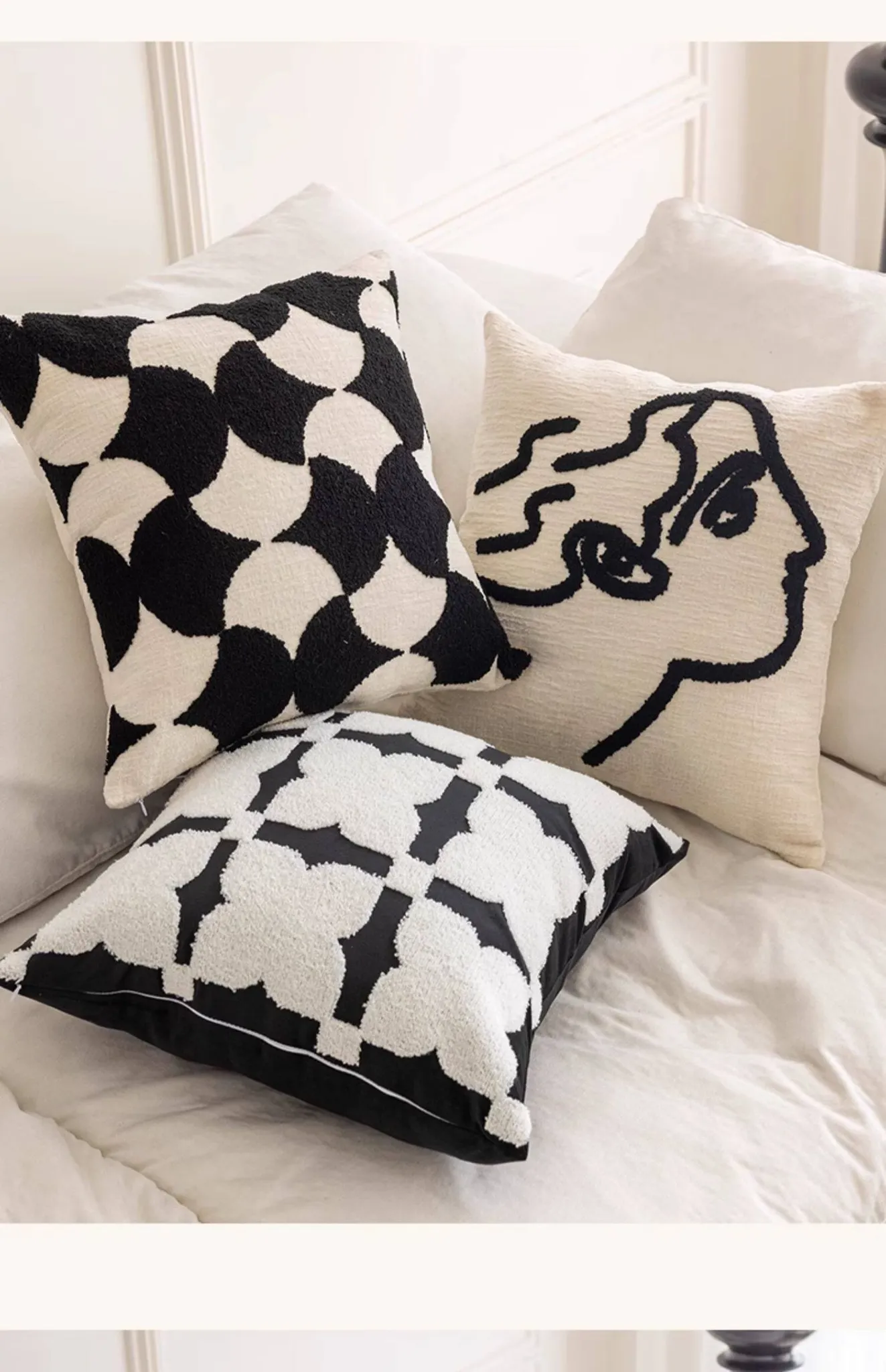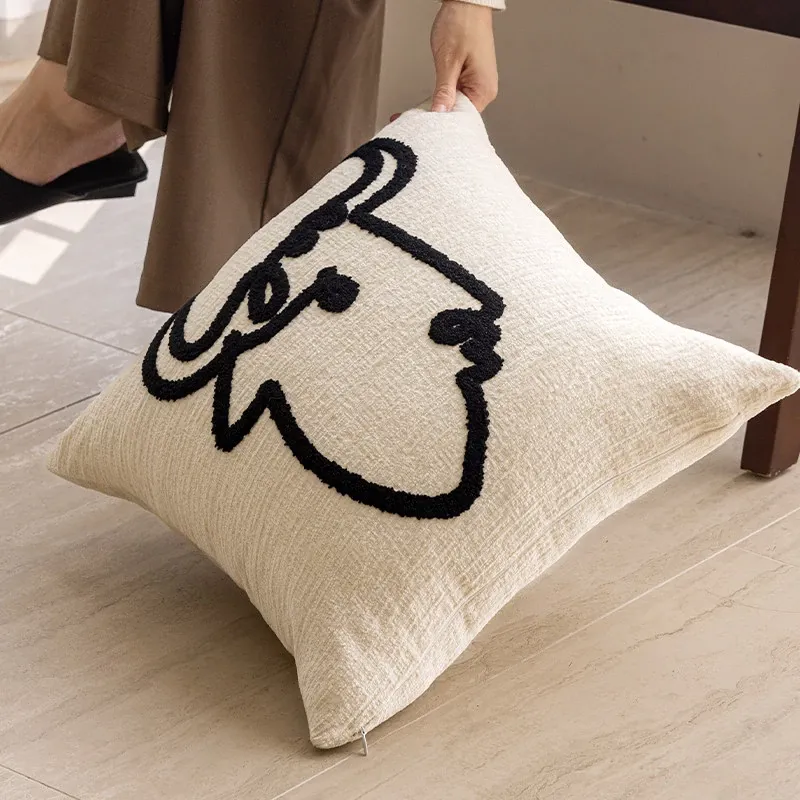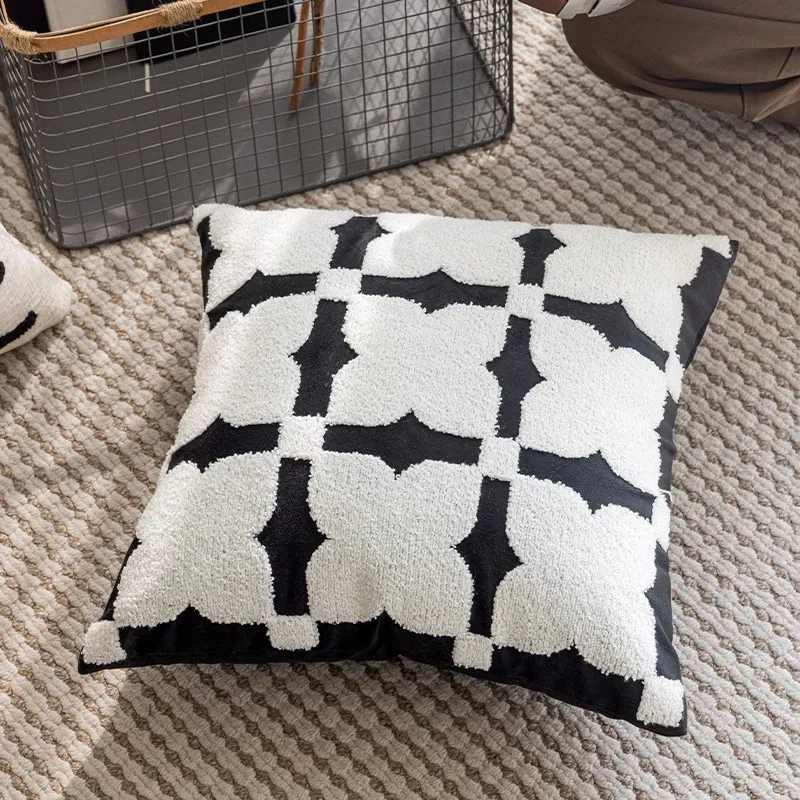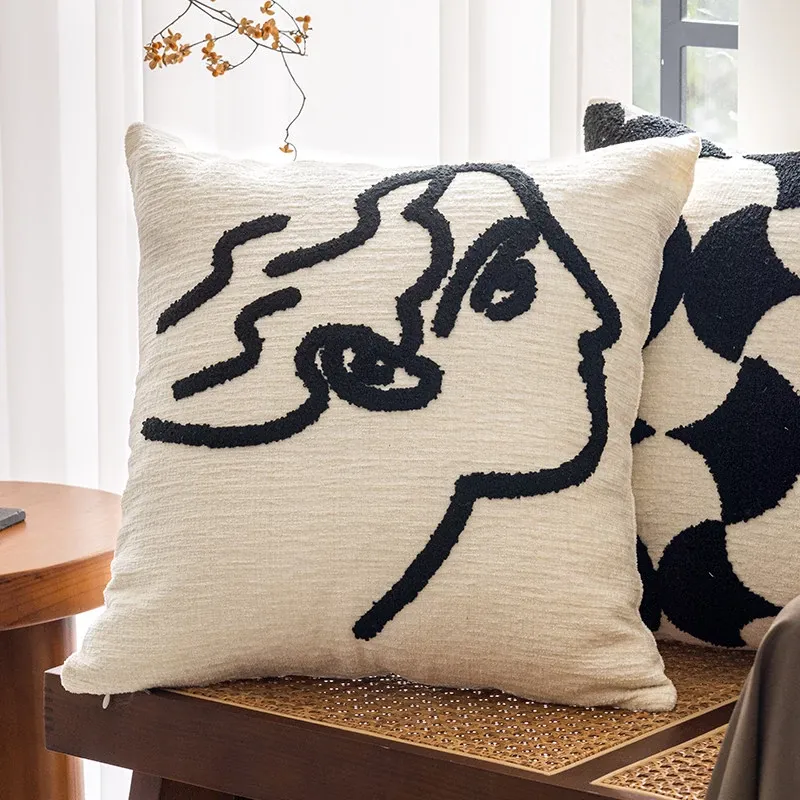 Minimalist French Black and White Luxury Nordic Throw Pillow Covers - Elegant Embroidered Cushions for Living Room Sofa, Perfect for Hotel Sample Rooms