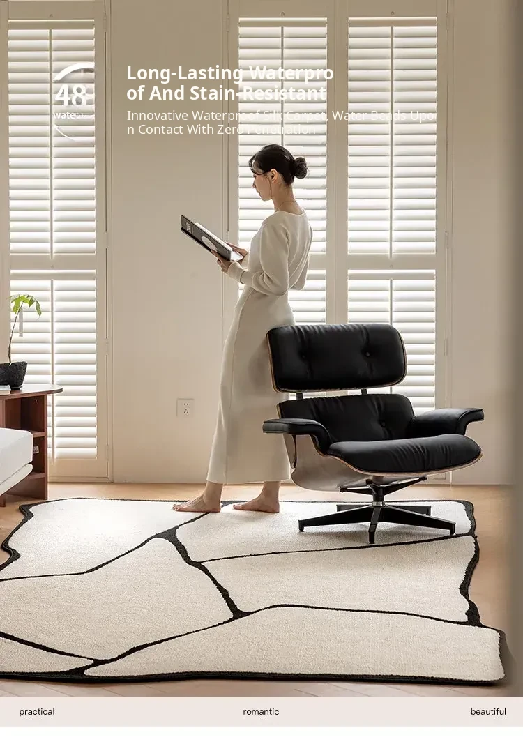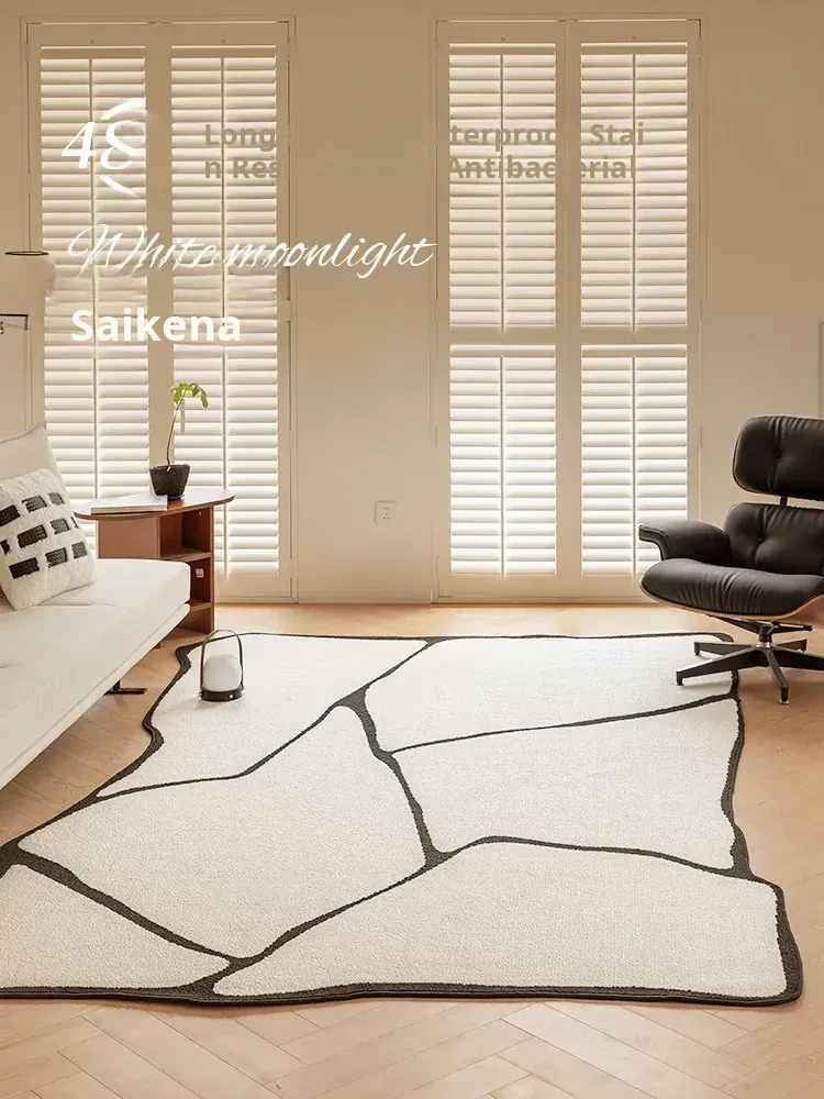 Modern Minimalist Area Rug for Living Room - Unique Shape, Luxurious and Easy-Care Sofa and Coffee Table Mat, Versatile for All Seasons, Perfect for Bedside Use