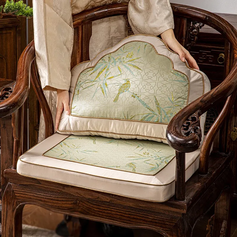New Chinese Style Rohan Bed & Tai Shi Chair Non-Slip Cushions – Thickened Red Wood Sofa, Tea Table, Circle Chairs & Stools for Winter Comfort
