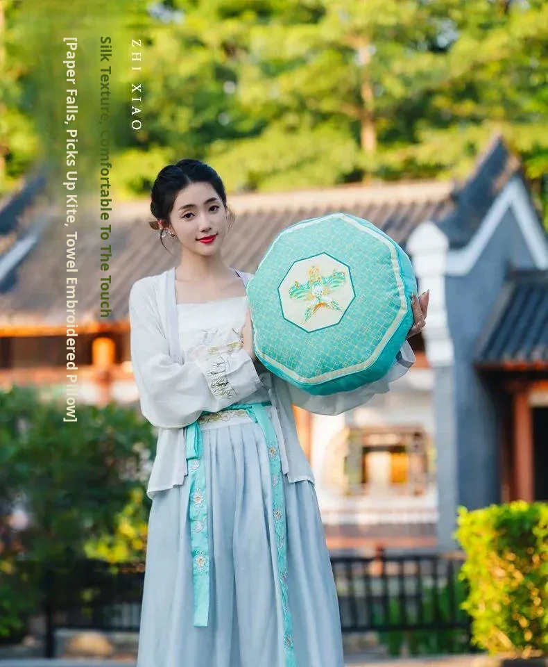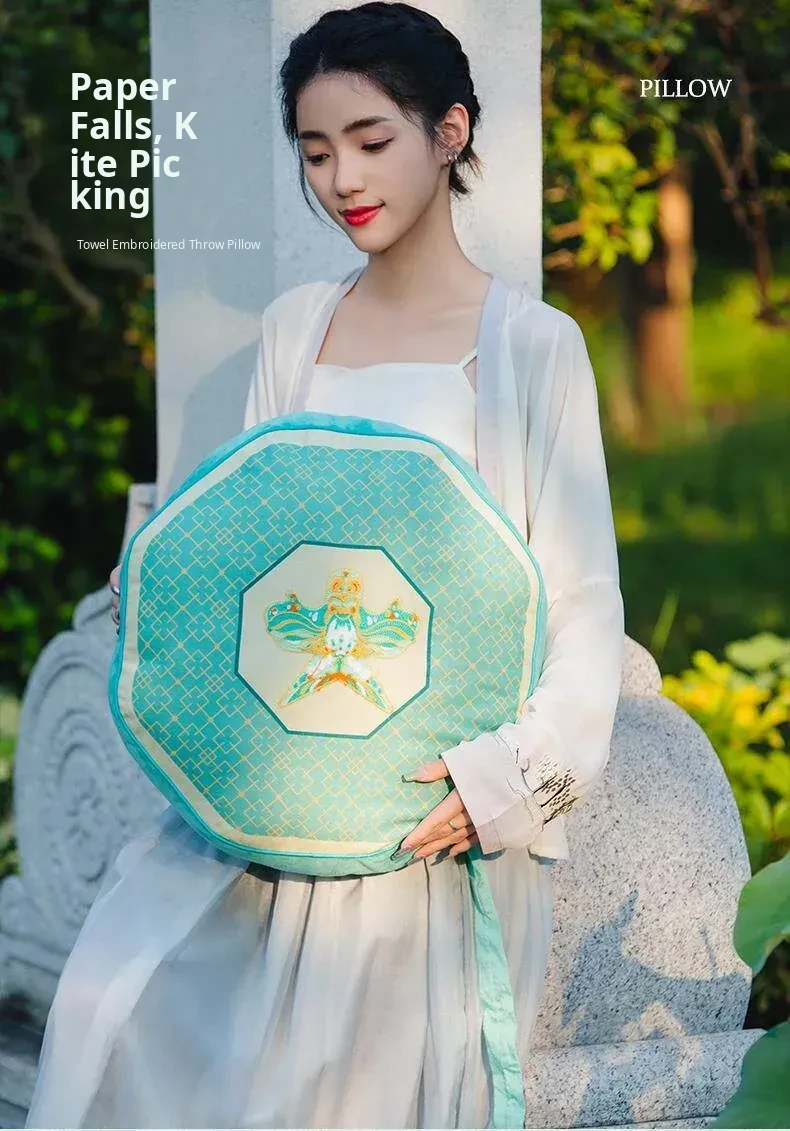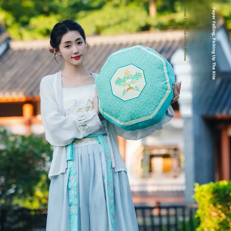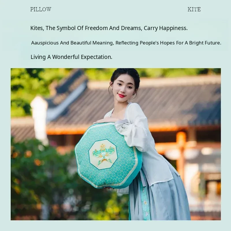 New Chinese-Style Kite Design Cushion - Fresh Green Decorative Pillow for Living Room Sofa and Bedroom Headboard, Perfect as a Back Support Pillow for a Cozy Atmosphere.