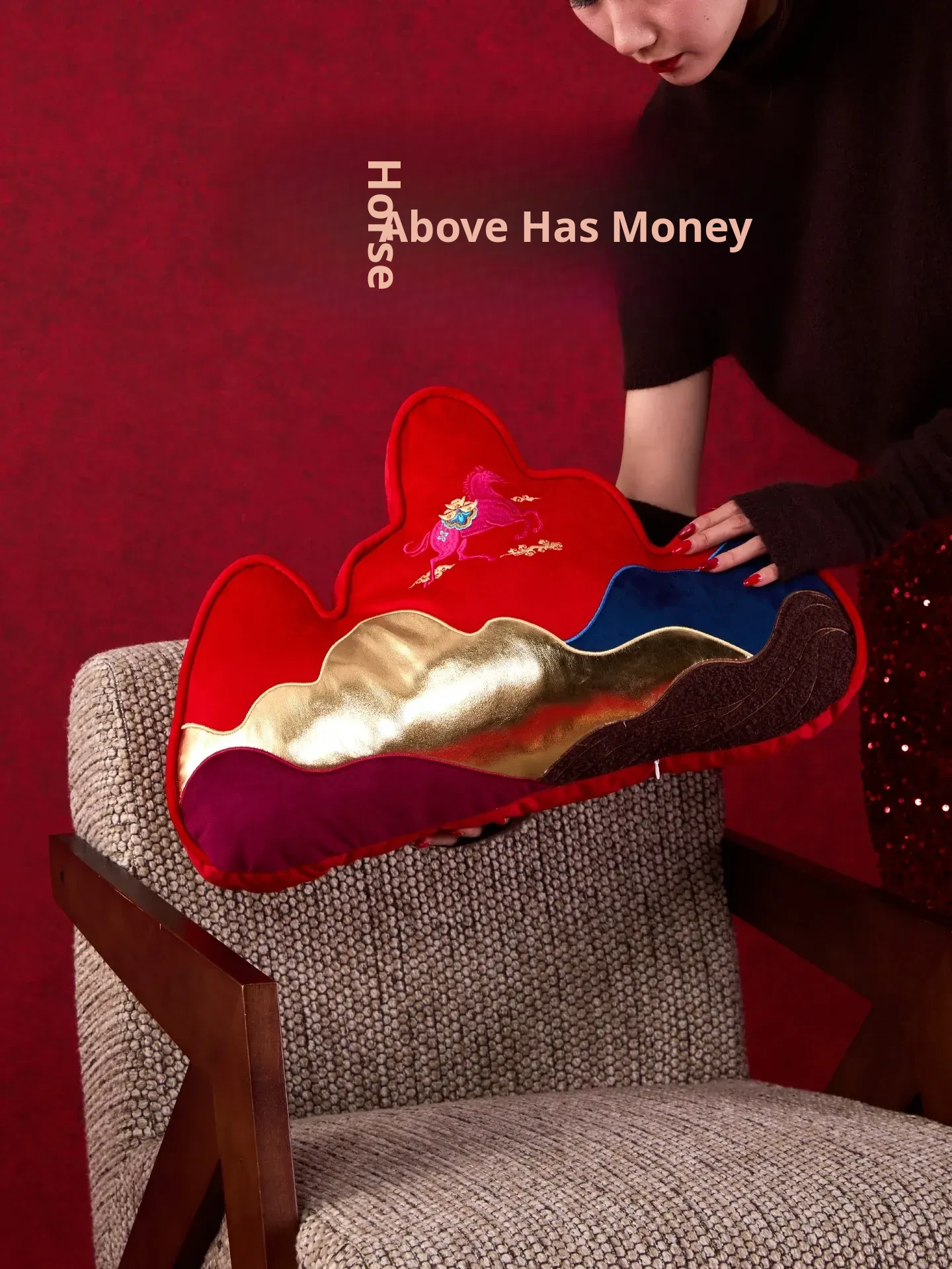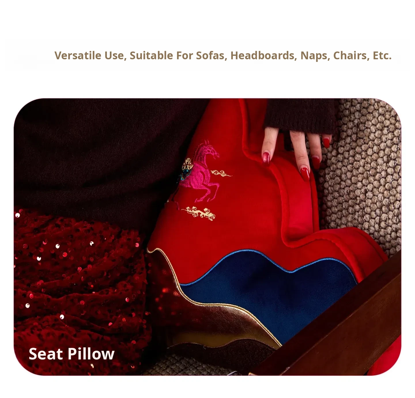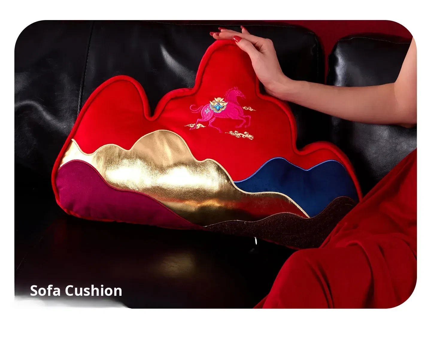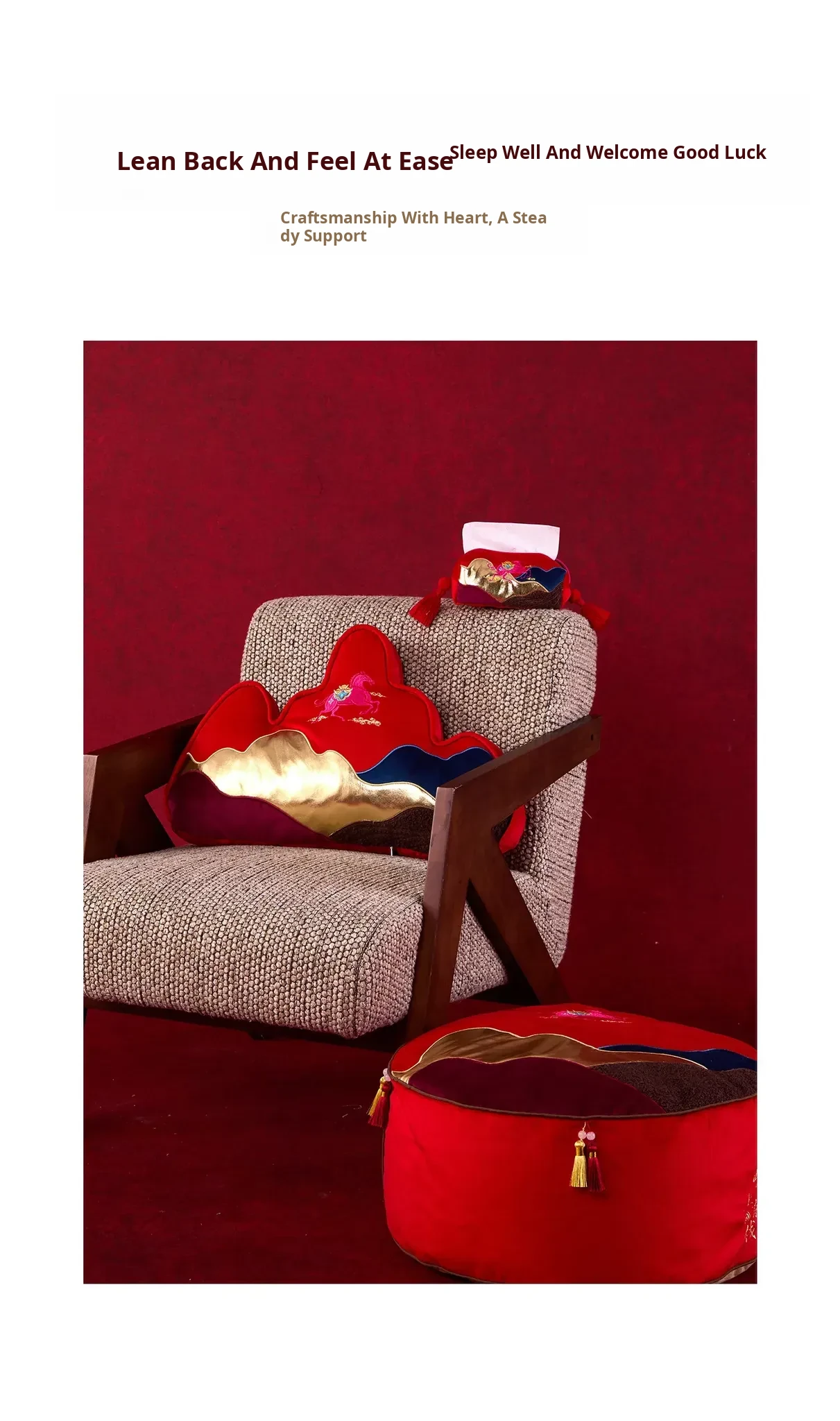 New Year Mountain-Style Sofa Pillow - 2026 Year of the Horse Red Embroidered Cushion Cover, Elegant New Chinese-Style Unique Shaped High-End Lumbar Pillow