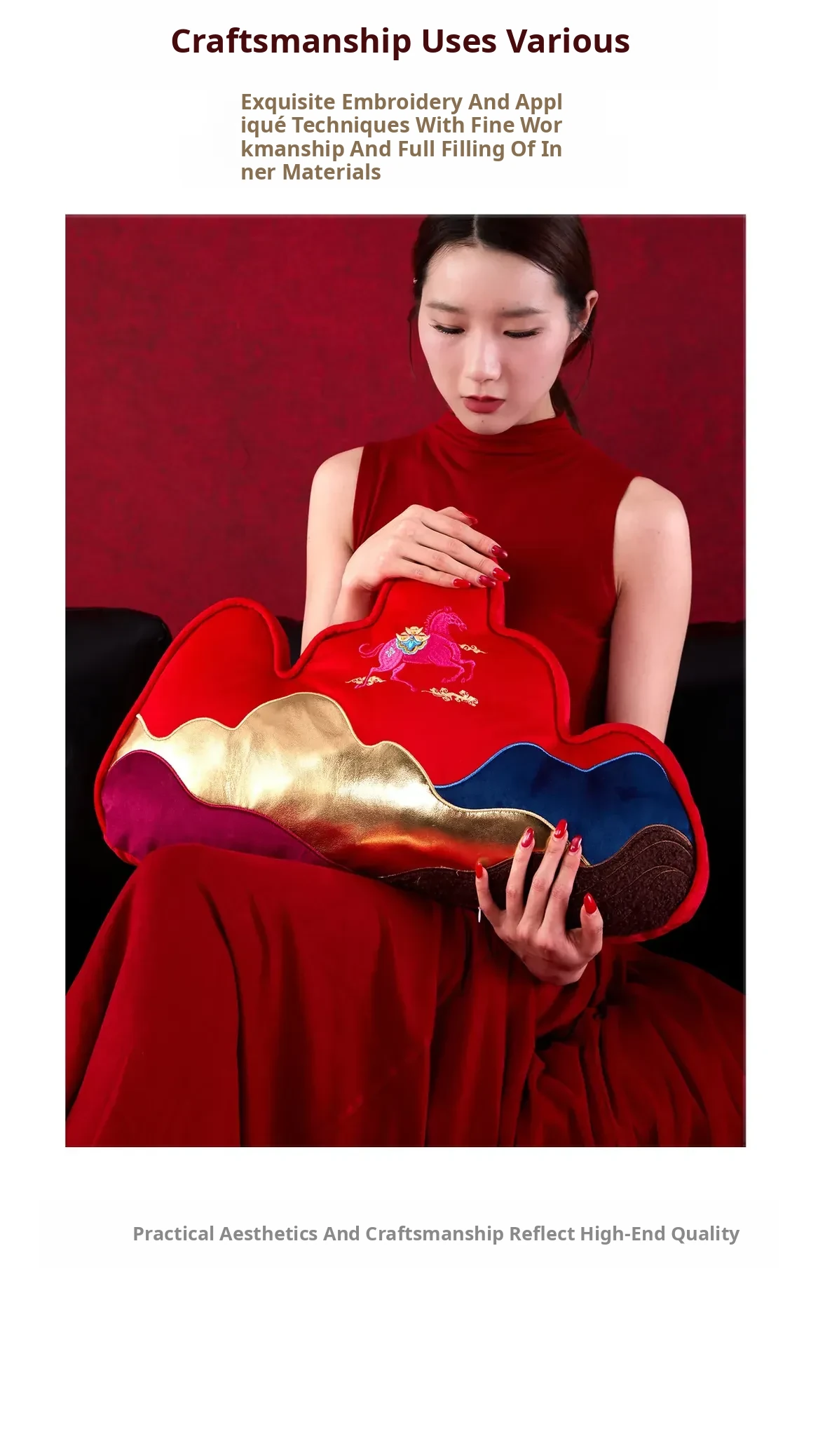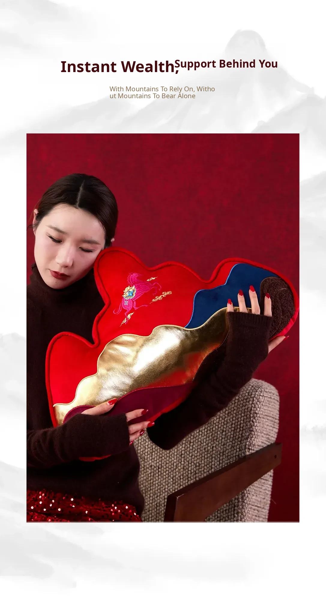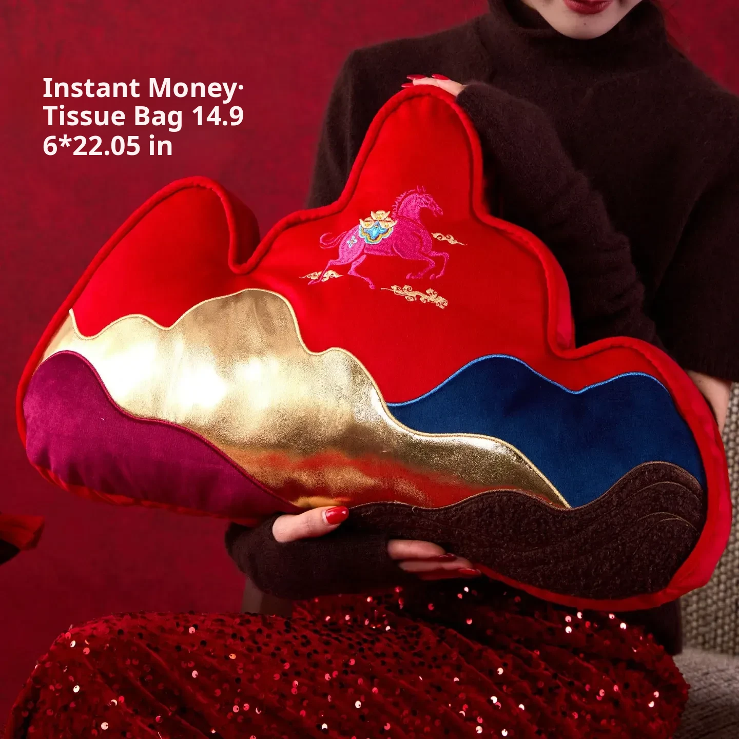New Year Mountain-Style Sofa Pillow - 2026 Year of the Horse Red Embroidered Cushion Cover, Elegant New Chinese-Style Unique Shaped High-End Lumbar Pillow