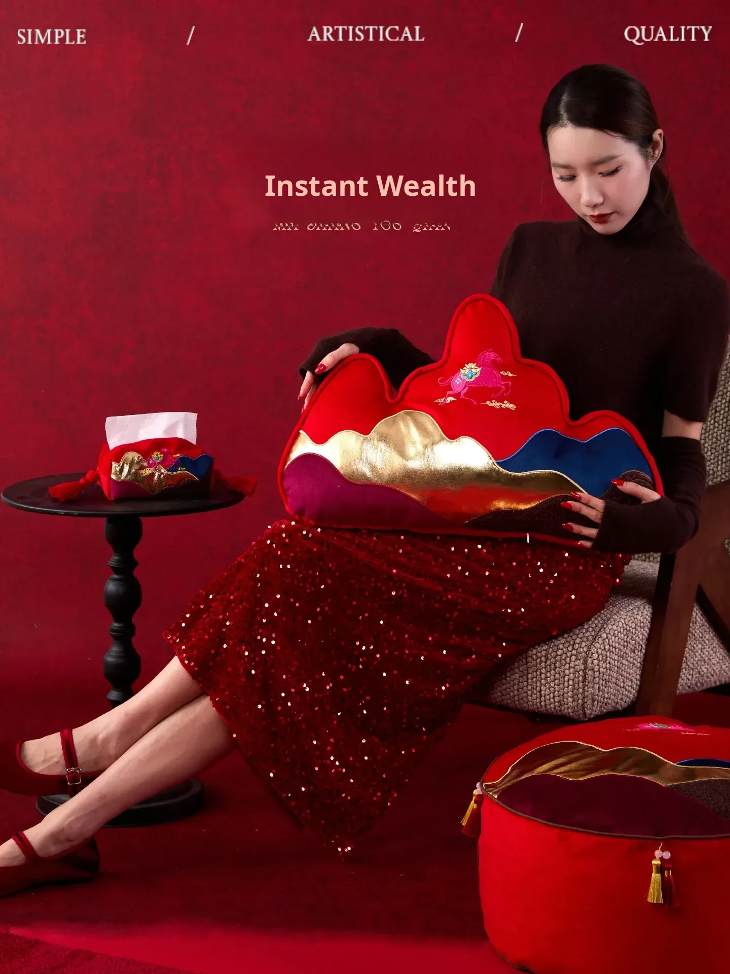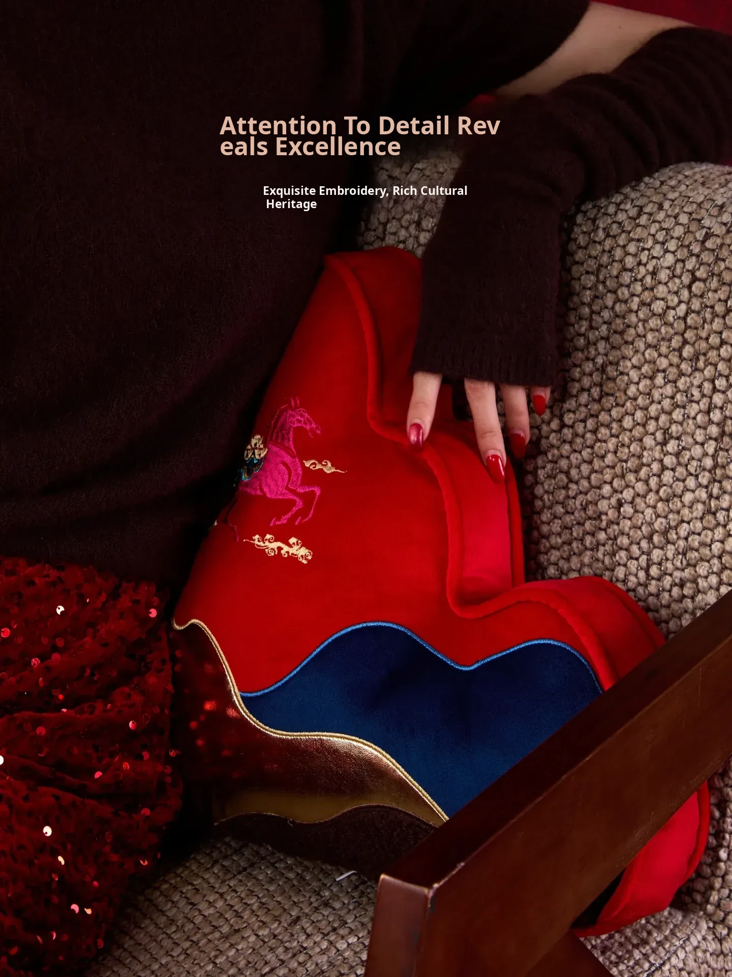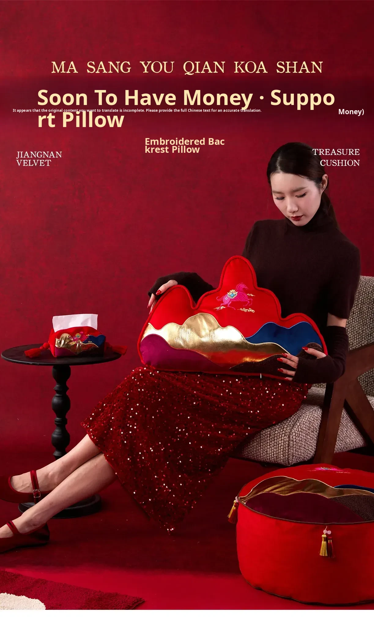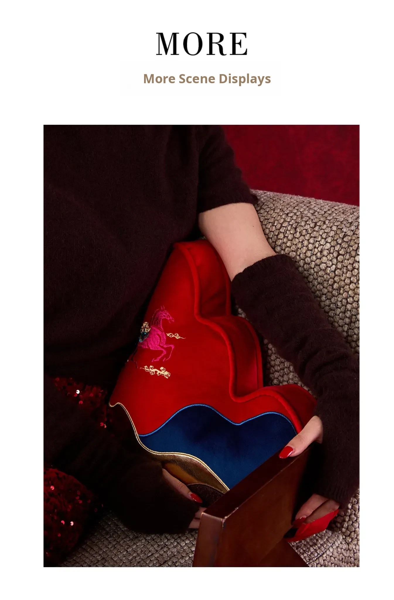 New Year Mountain-Style Sofa Pillow - 2026 Year of the Horse Red Embroidered Cushion Cover, Elegant New Chinese-Style Unique Shaped High-End Lumbar Pillow