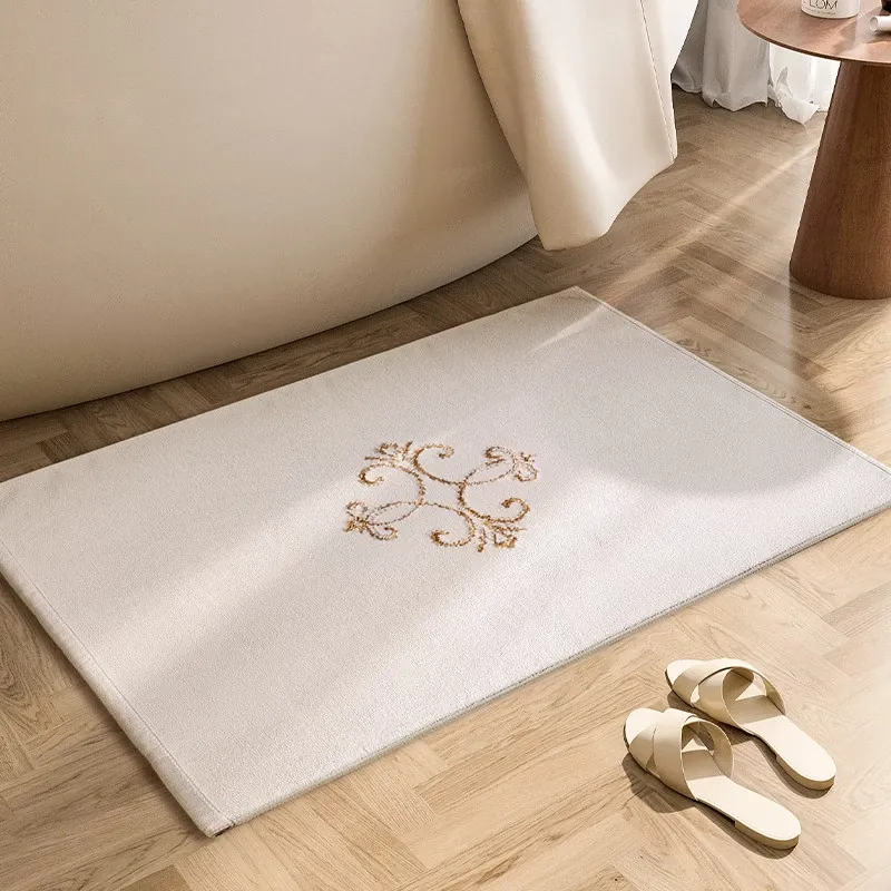 Premium Hotel Embroidered Bath Mat - 100% Cotton Absorbent Door Mat for Bathroom, Machine Washable Non-Slip Rug, Perfect for Elegant Spaces
