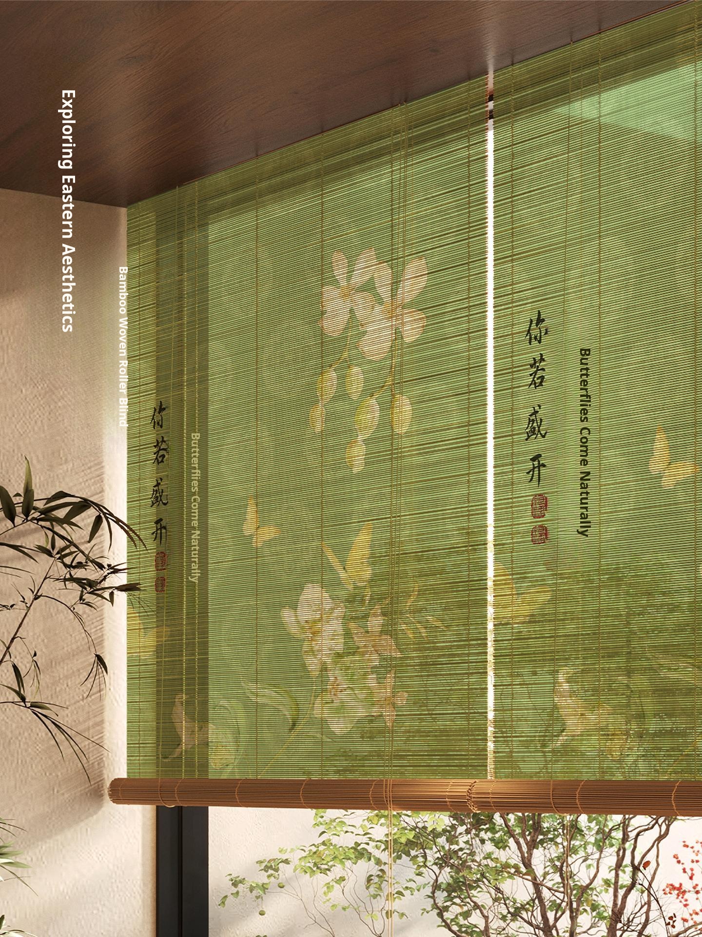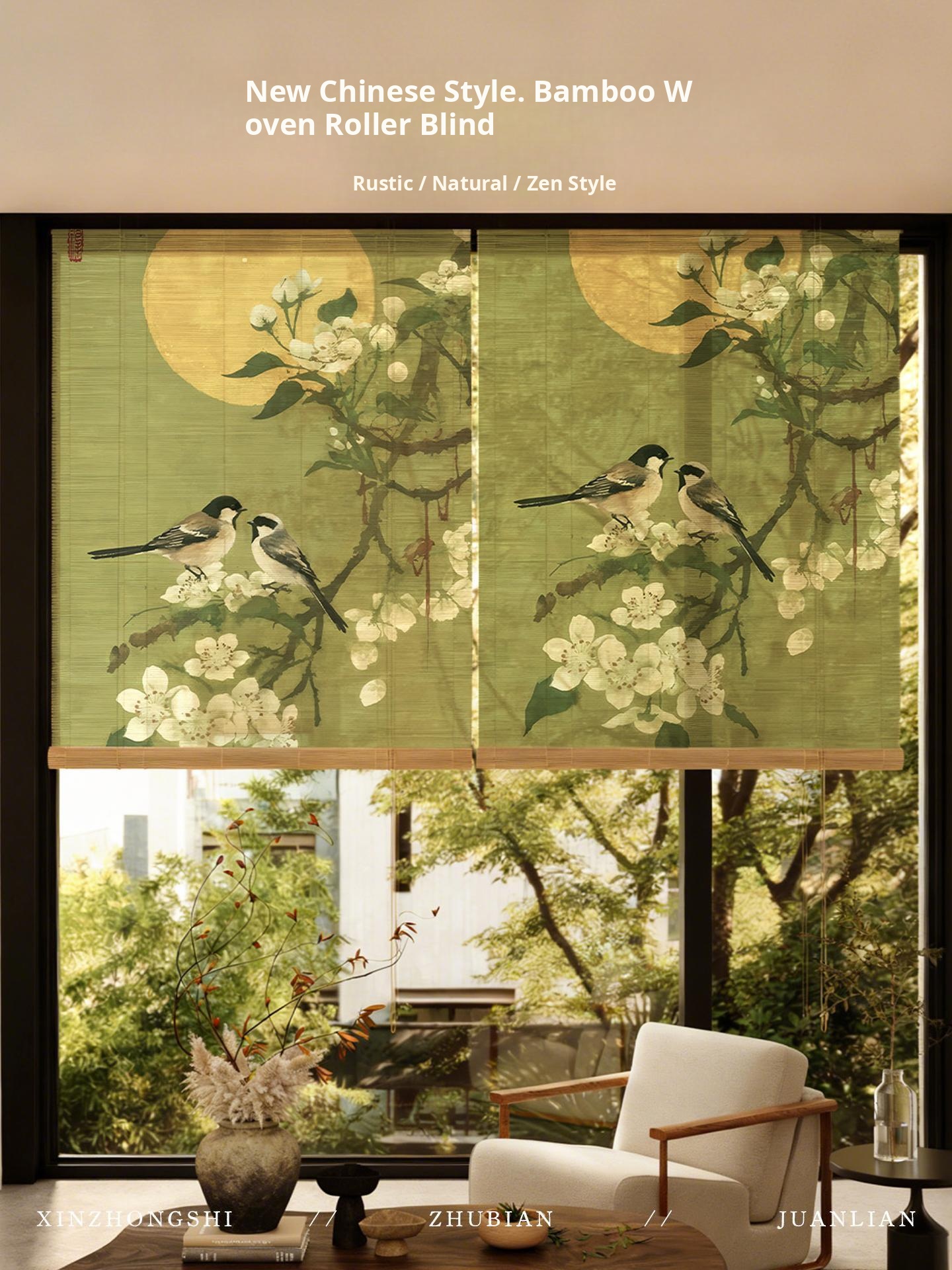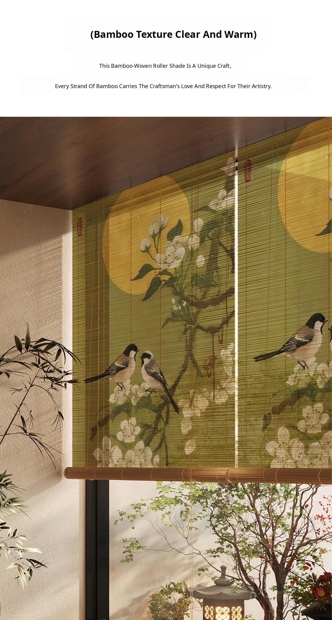 Song Dynasty Aesthetic Bamboo Roller Shades - Elegant and Zen-Inspired Bamboo Curtains for Balconies, Traditional Chinese Door Curtains, No-Drill Window Treatments for a Serene Ambiance