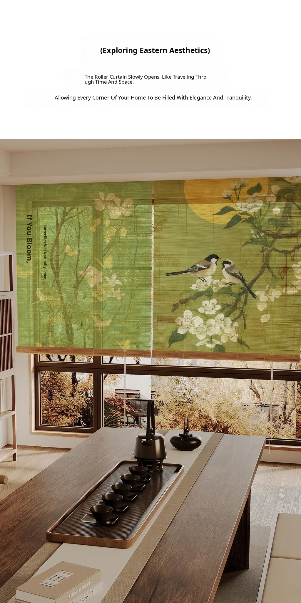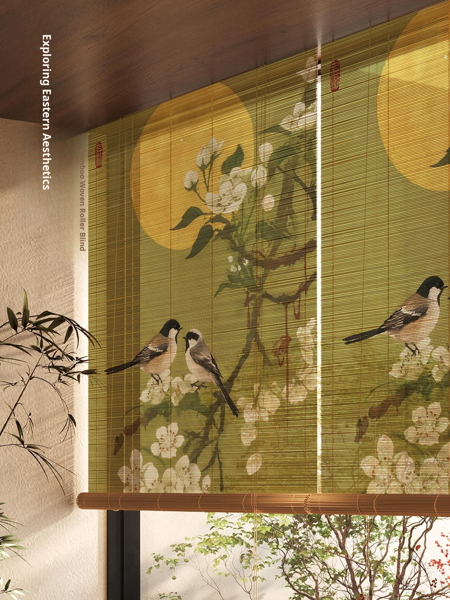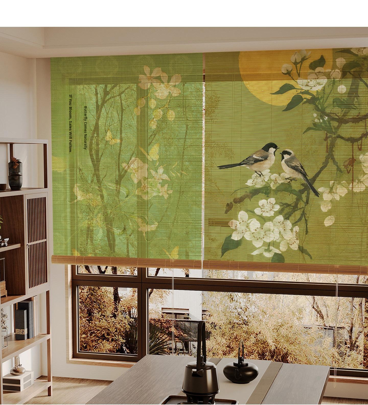 Song Dynasty Aesthetic Bamboo Roller Shades - Elegant and Zen-Inspired Bamboo Curtains for Balconies, Traditional Chinese Door Curtains, No-Drill Window Treatments for a Serene Ambiance