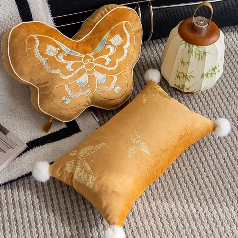 Elegant New Chinese Style Butterfly-Shaped Throw Pillow | Luxurious Sofa Cushion for Living Room, Window Seat, and Bedside | Perfect for Showrooms and Chic Decor