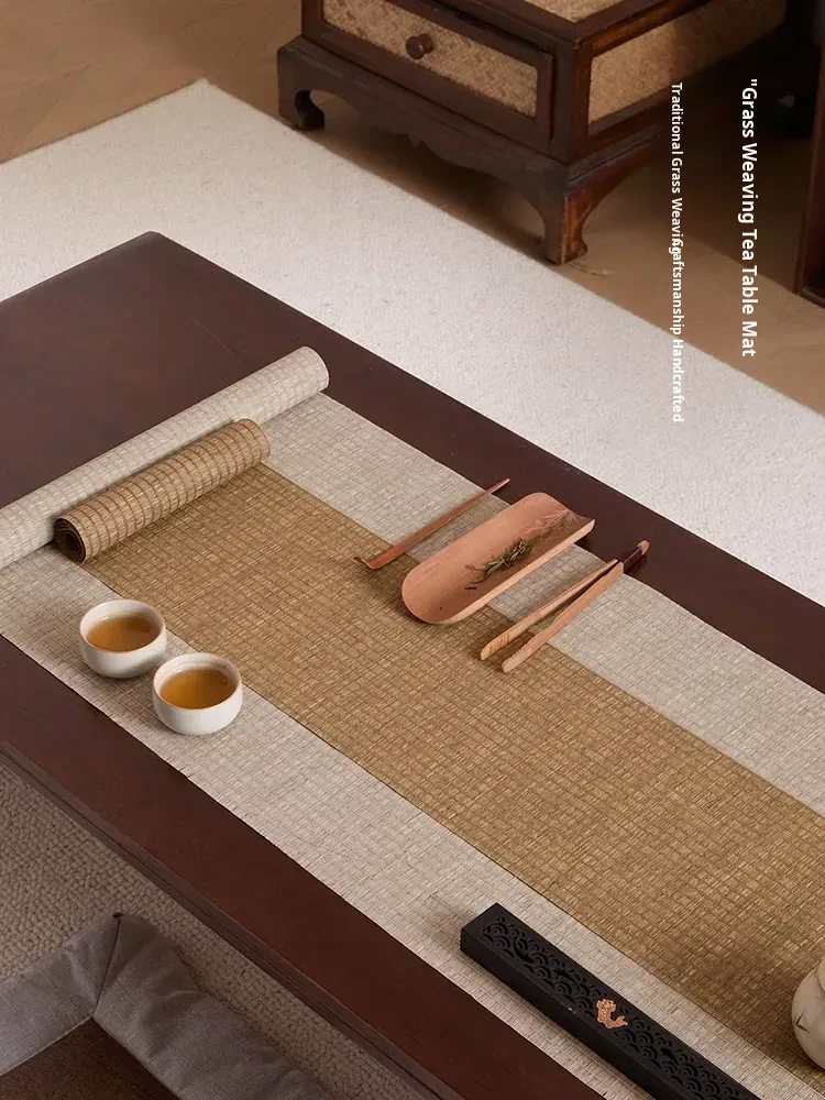 Luxury Modern Chinese Style Waterproof Tea Mat - Elegant Woven Tea Tray Table Runner for Zen Tea Ceremony, Perfect for High-End Tea Settings
