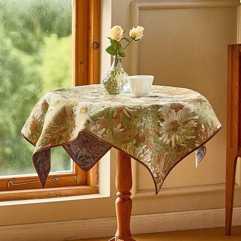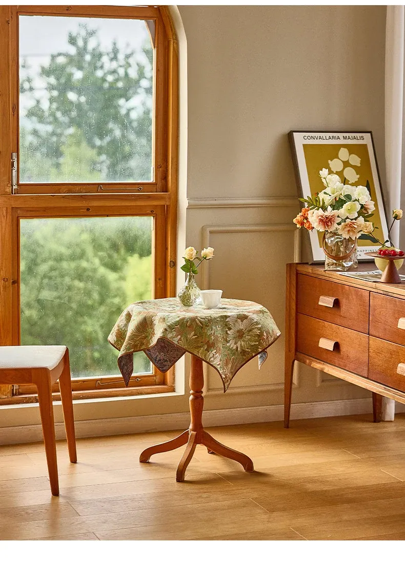 アメリカンレトロスタイルのティーテーブル&ダイニングテーブルカバー - おしゃれな小さなラウンドテーブル用、2026年新作!リビングにぴったりな高級感あふれるテーブルマットで、インテリアを引き立てます。