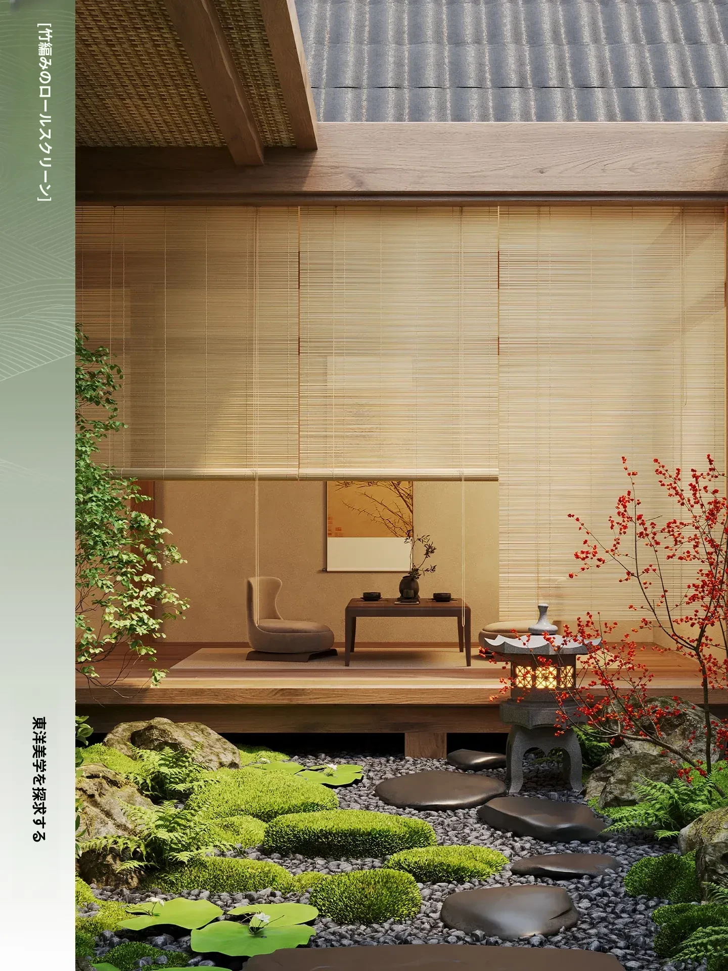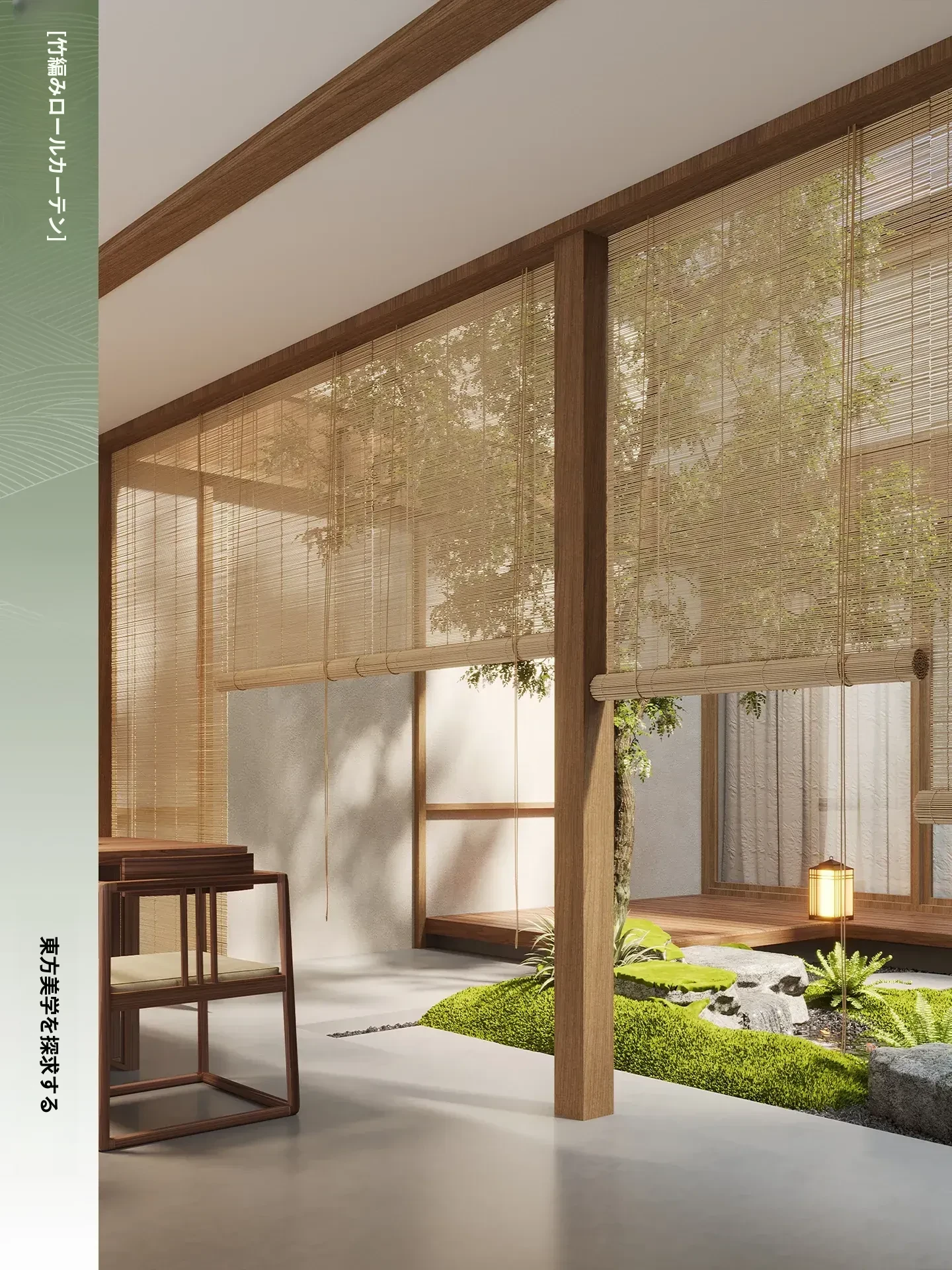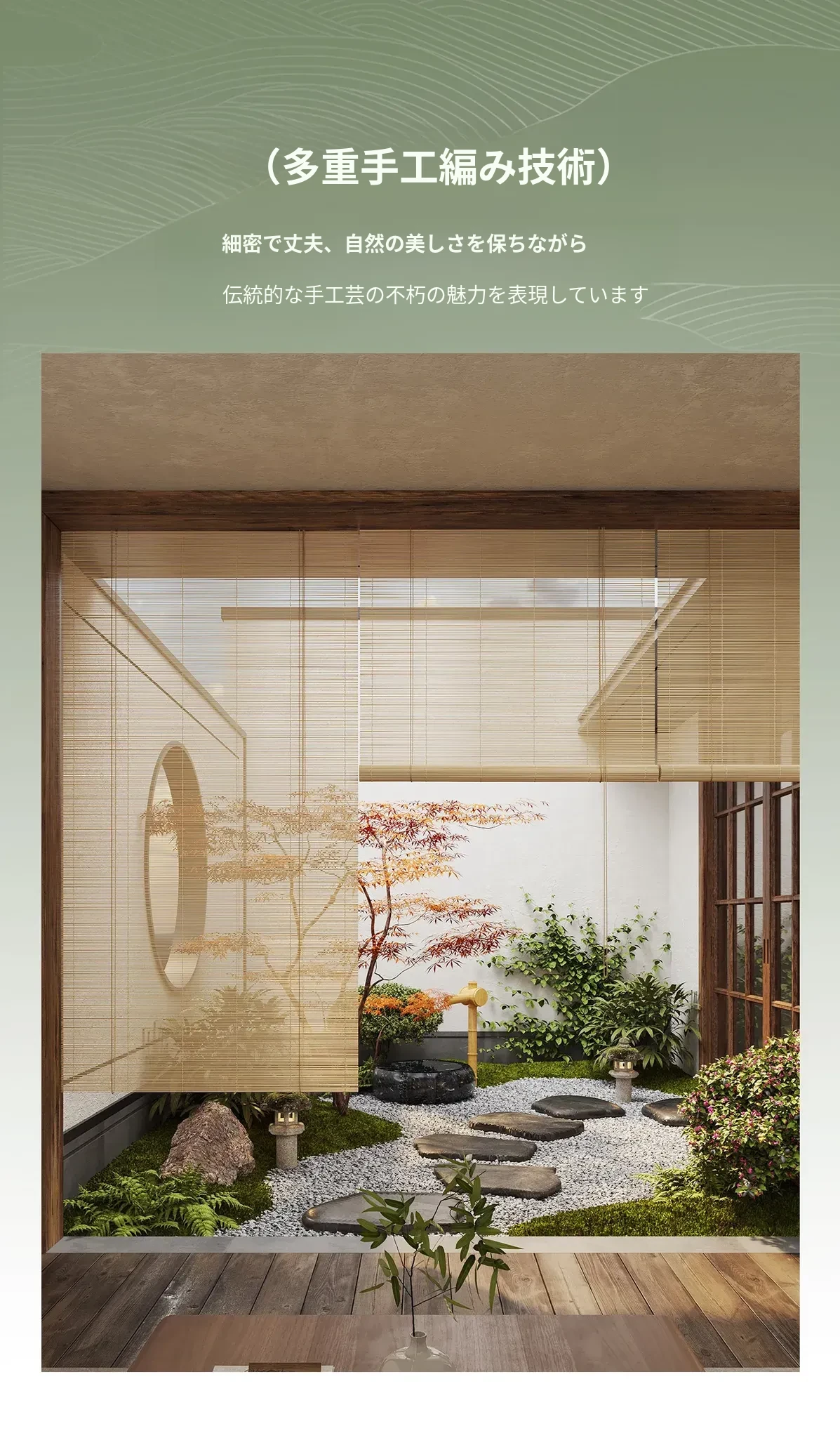 新中式禅風の竹製ロールカーテン2026年新作!穴あけ不要で簡単取り付け、茶室や壁面の装飾にも最適な遮光カーテン。心安らぐ空間を演出し、洗練された和のスタイルを楽しんでください。