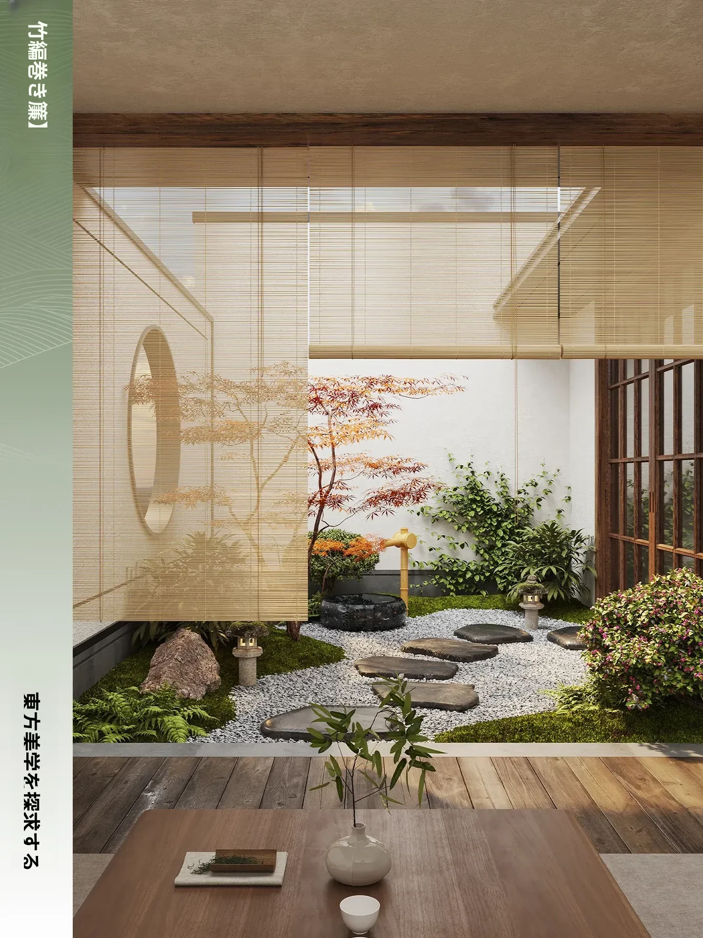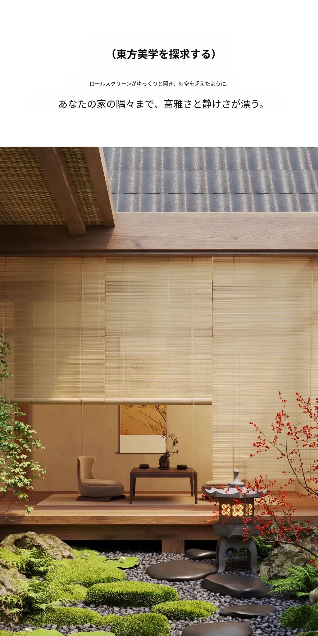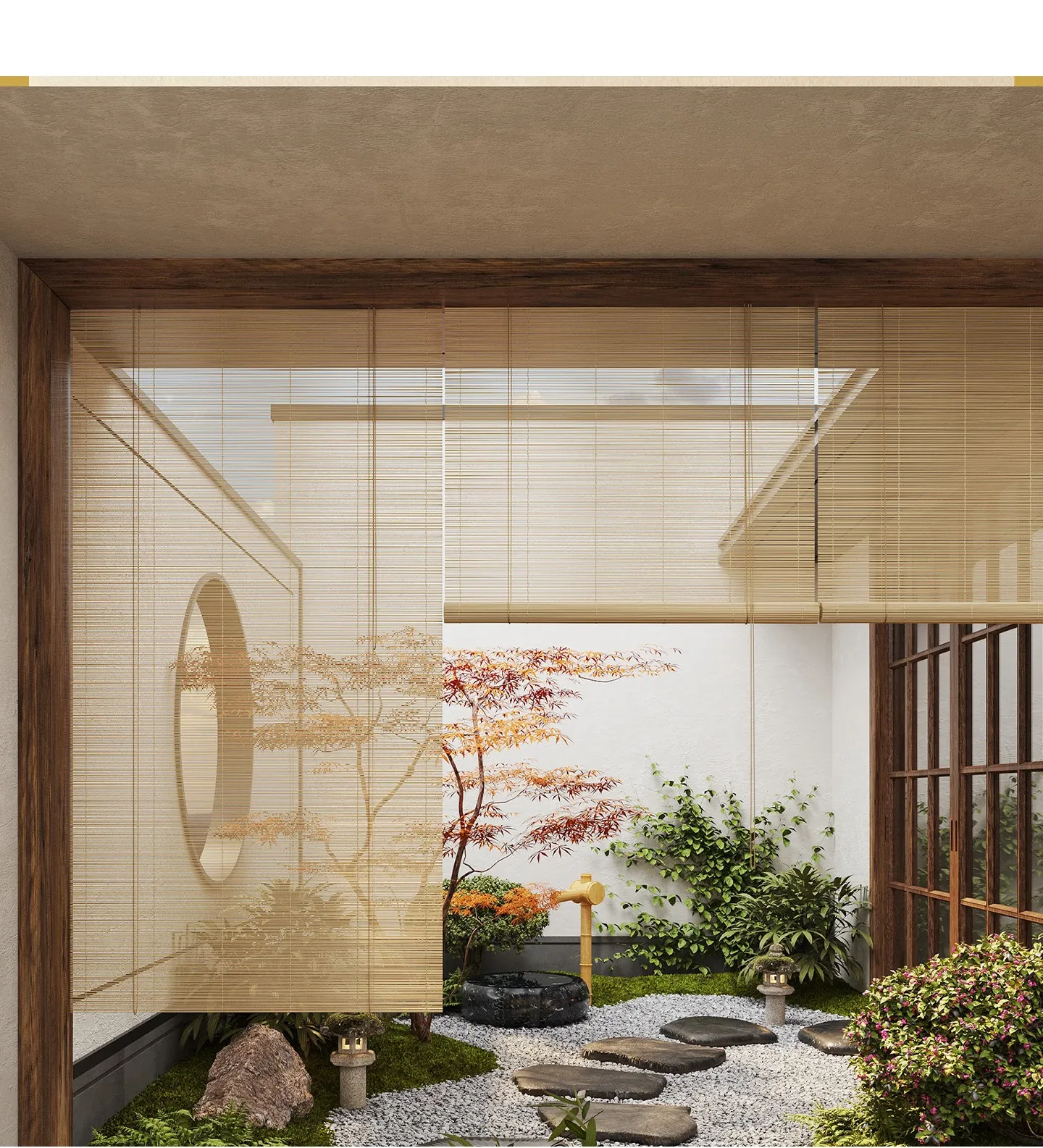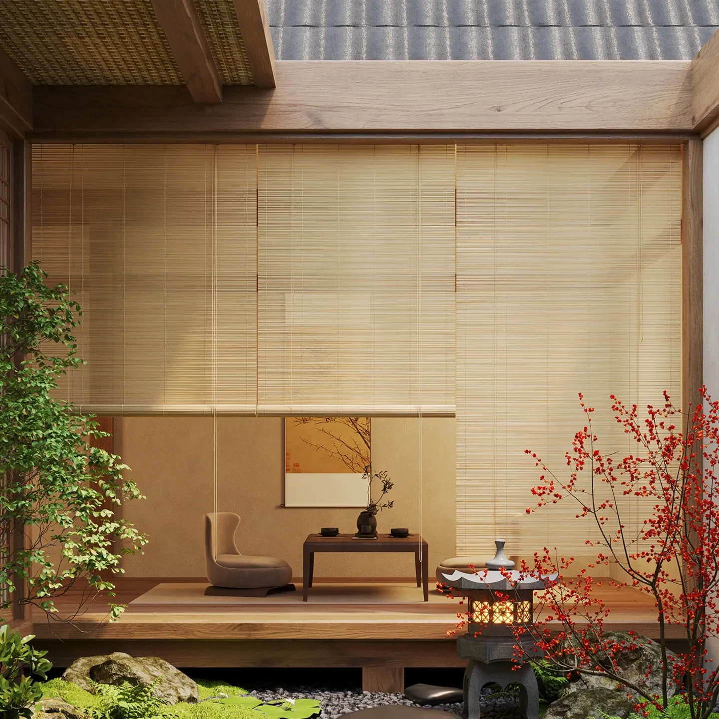 新中式禅風の竹製ロールカーテン2026年新作!穴あけ不要で簡単取り付け、茶室や壁面の装飾にも最適な遮光カーテン。心安らぐ空間を演出し、洗練された和のスタイルを楽しんでください。