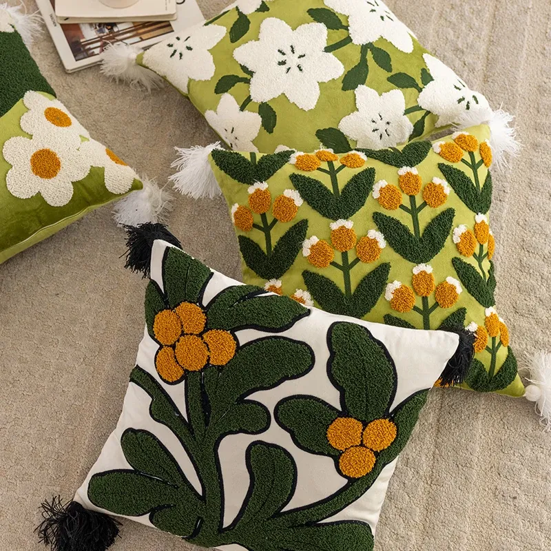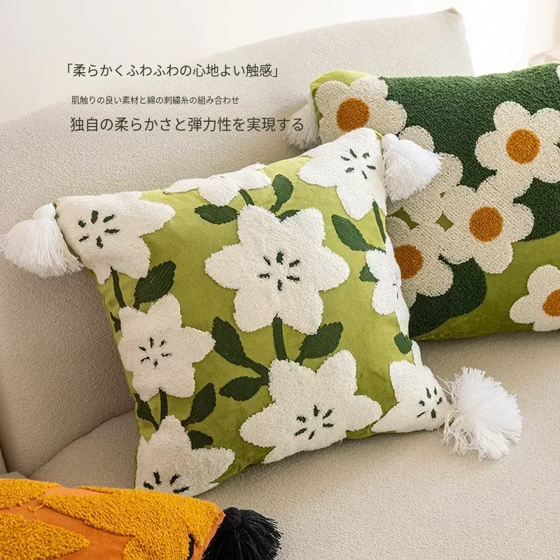 アメリカンスタイルのラグジュアリー感漂うリビングソファ用クッションカバー、フレンチカントリー風デザイン、45x45cmサイズ、洗濯可能でお手入れ簡単!お部屋の雰囲気を一層引き立てる上質なアイテムです。
