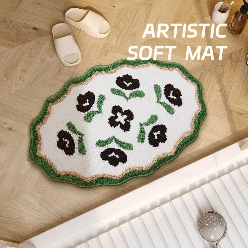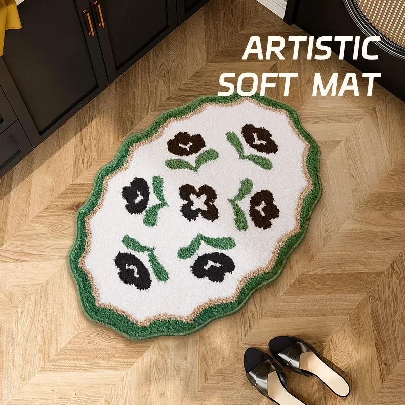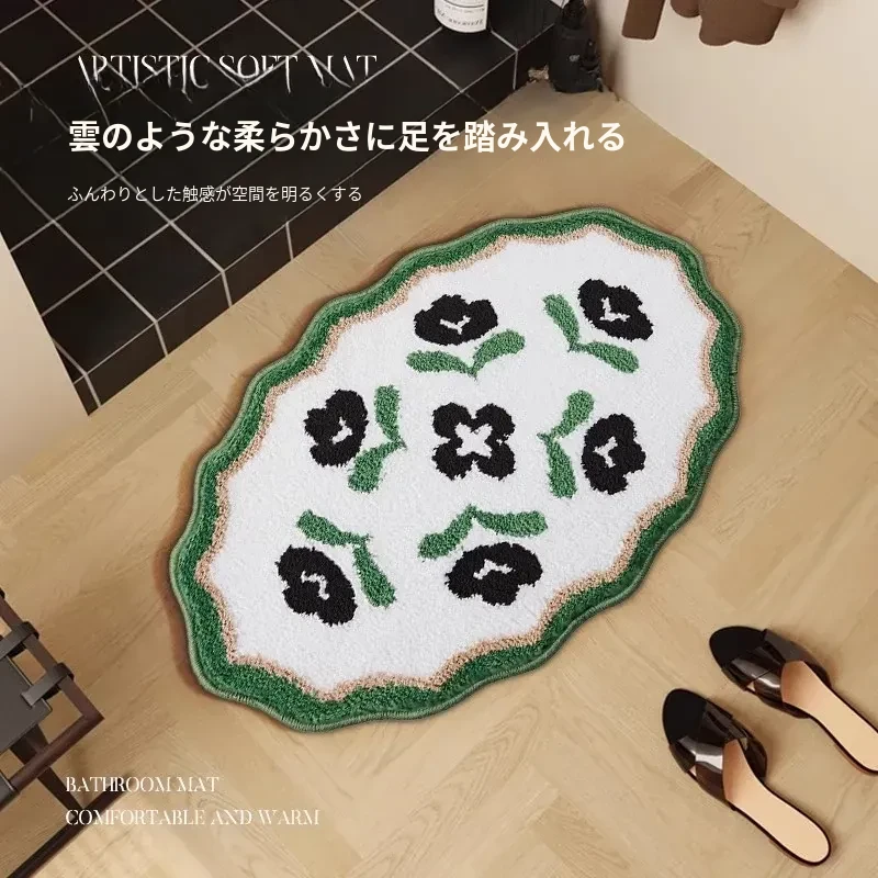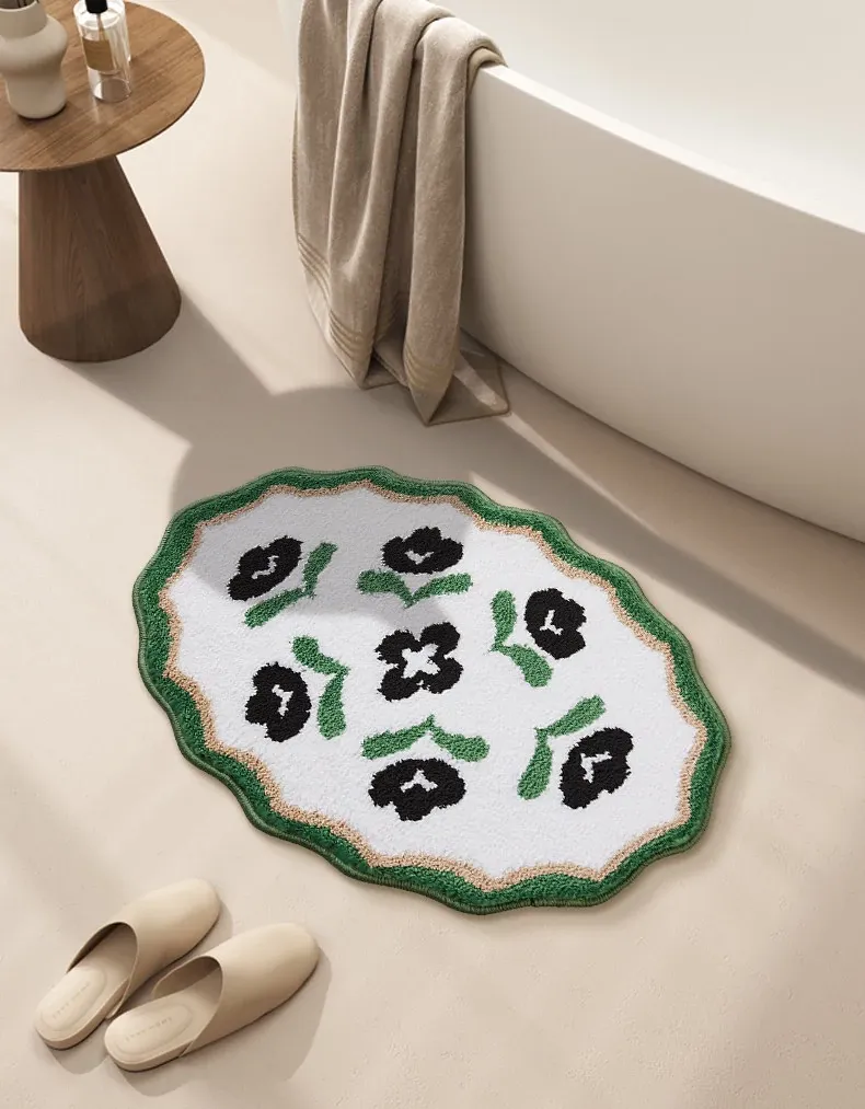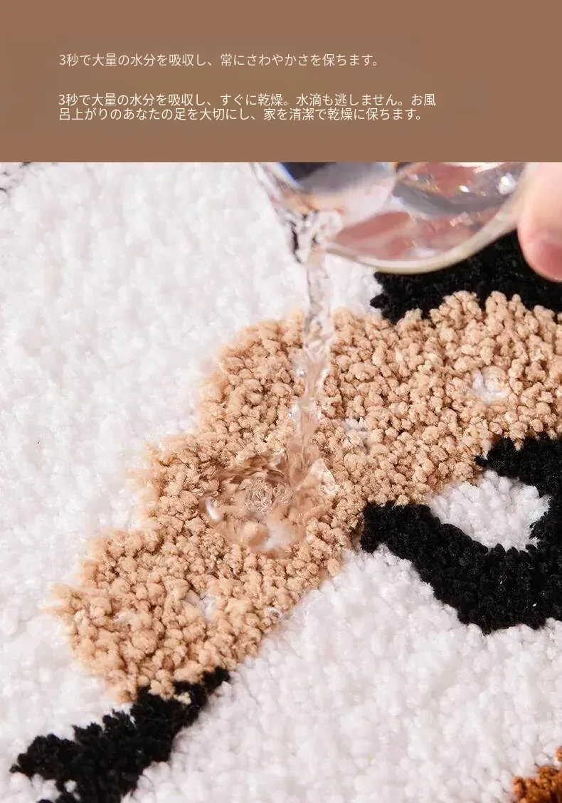 アメリカンスタイルのバスルーム用滑り止めマット!吸水性抜群の植毛フットマットで、トイレの乾燥エリアに最適。家族を守る安全設計で、快適なバスタイムをお楽しみください。