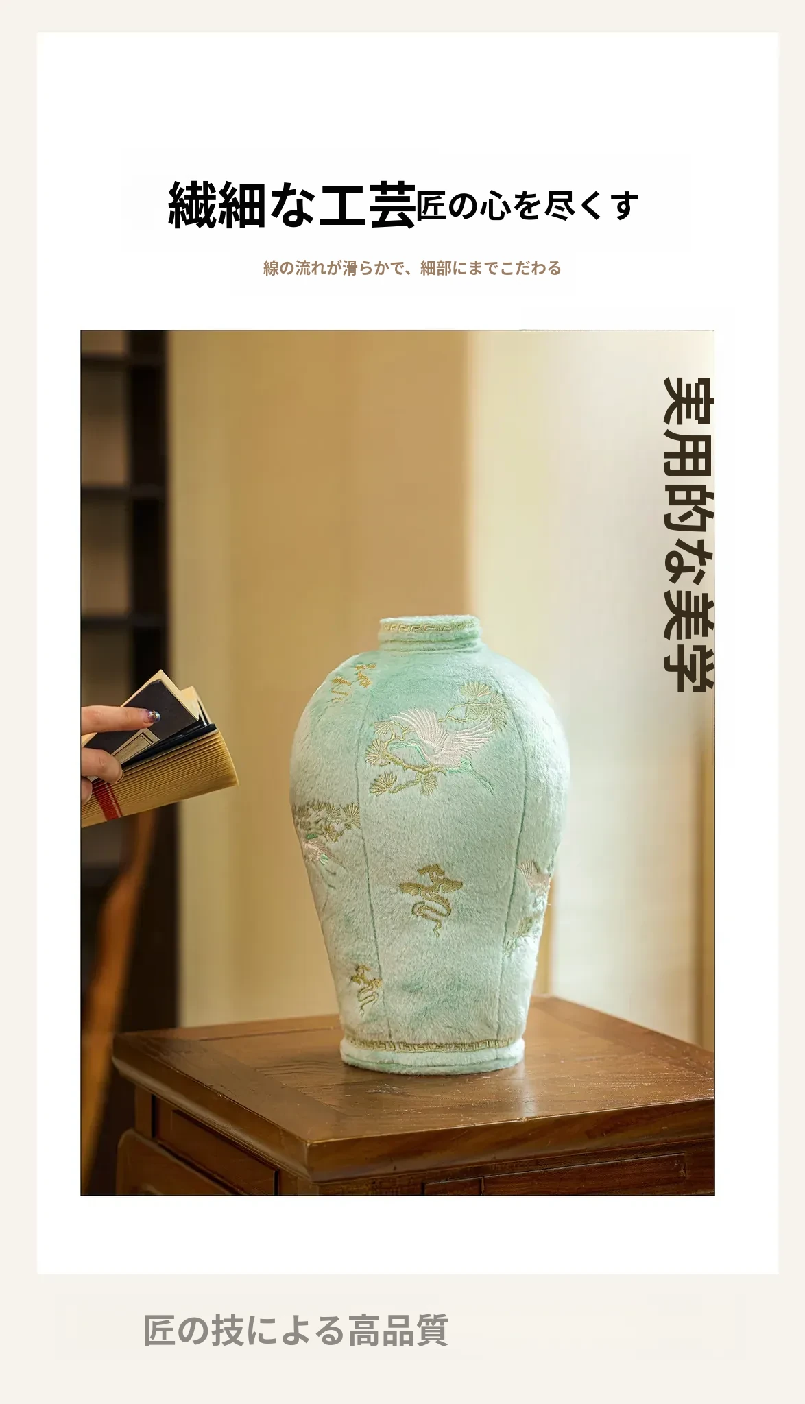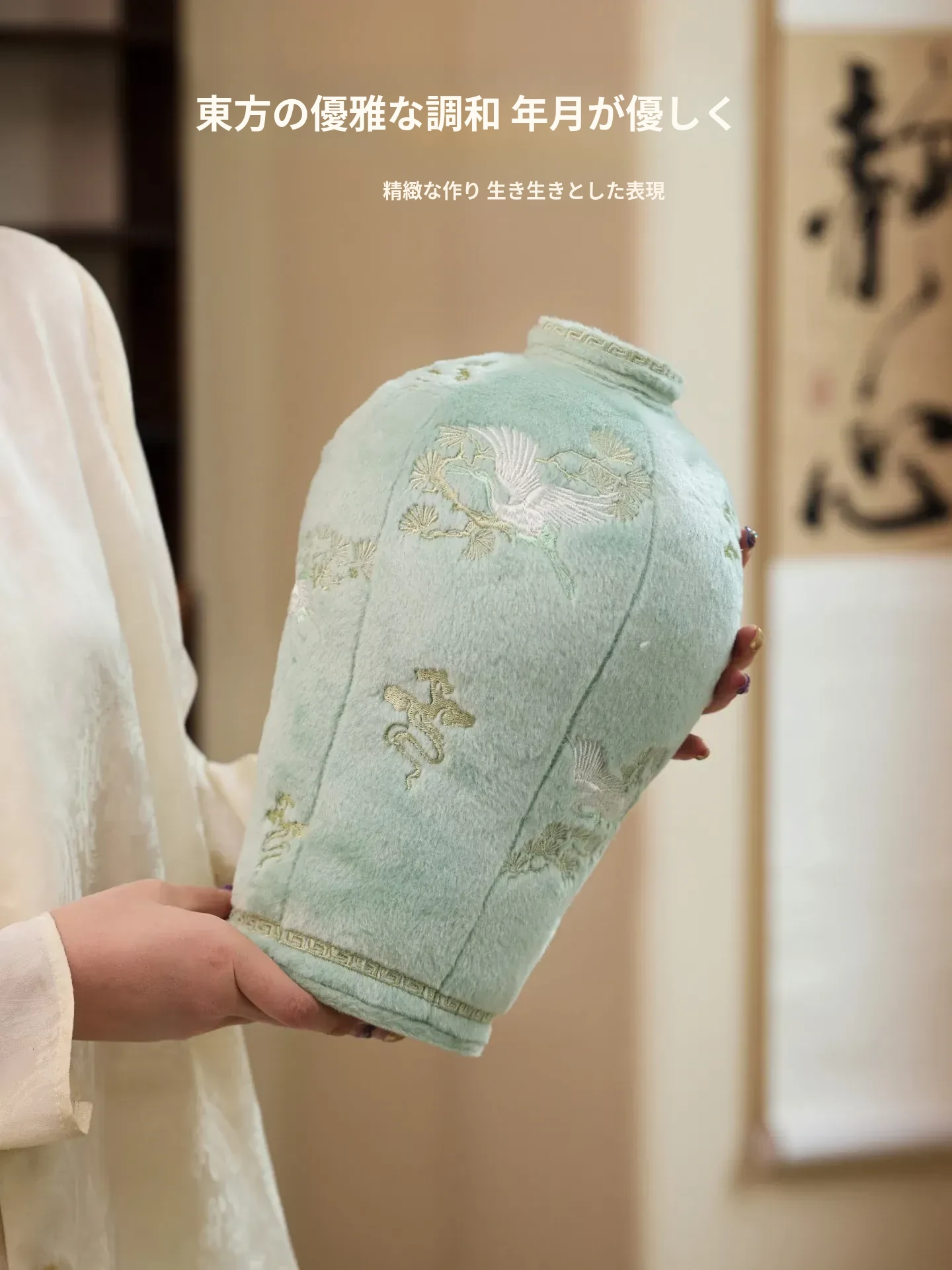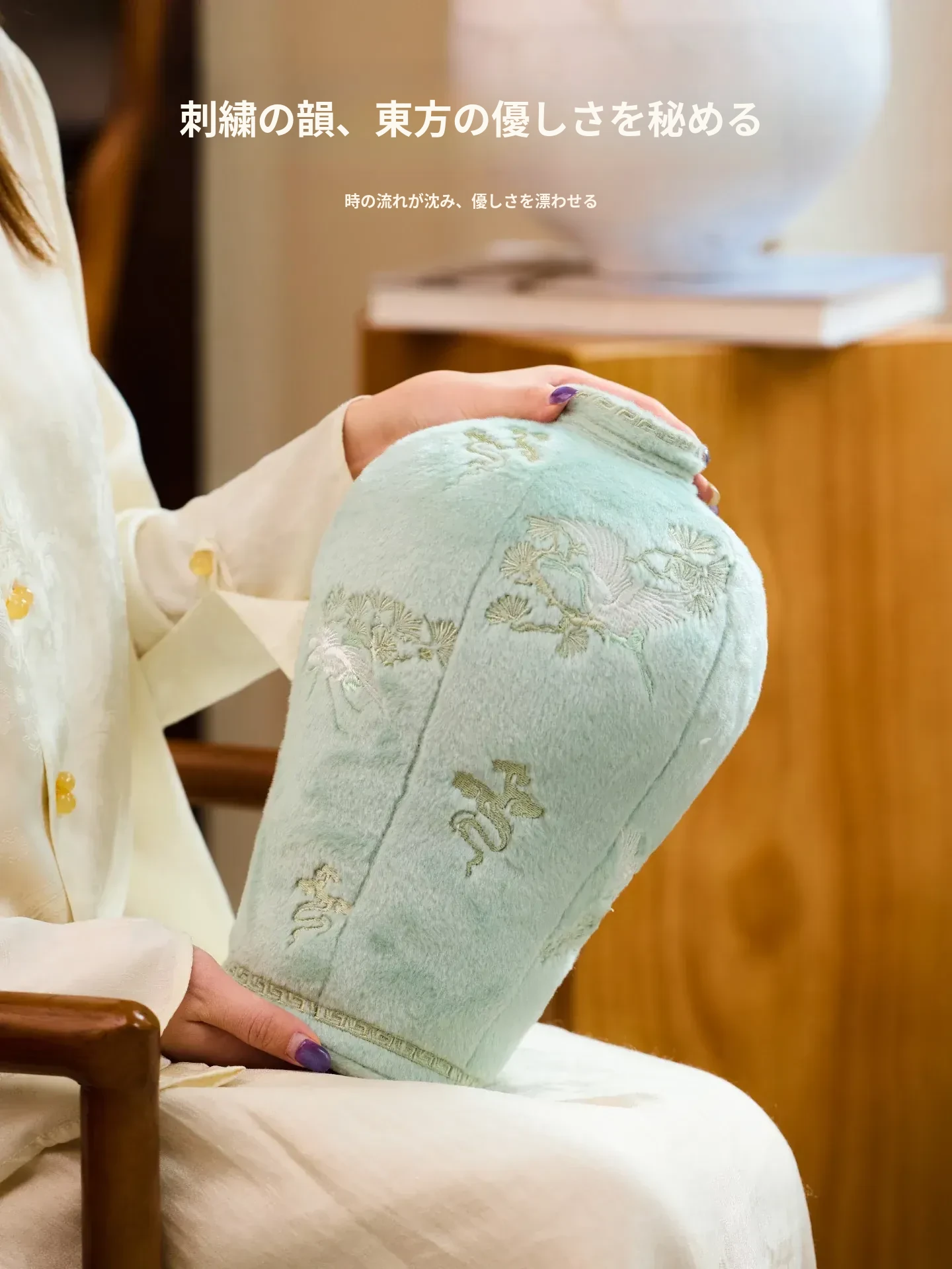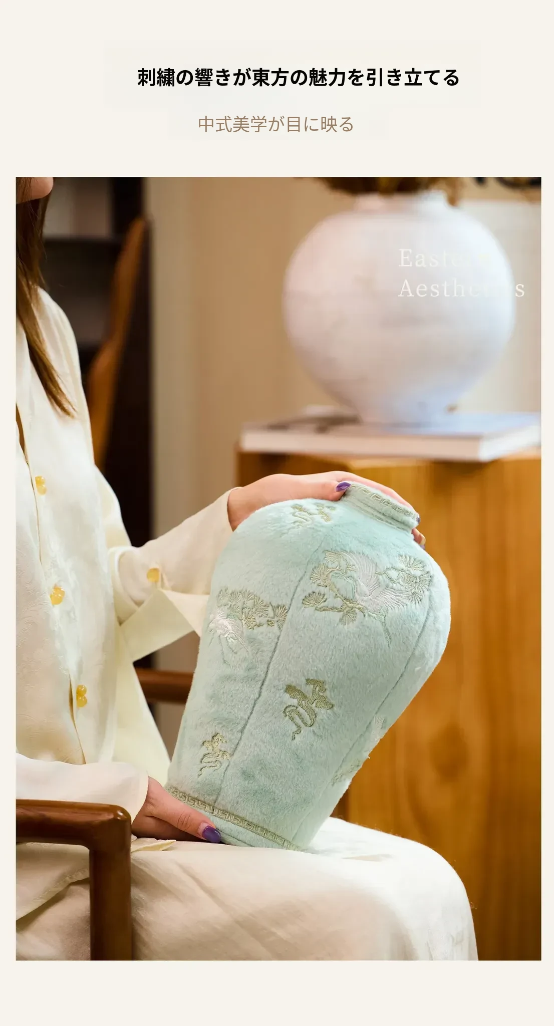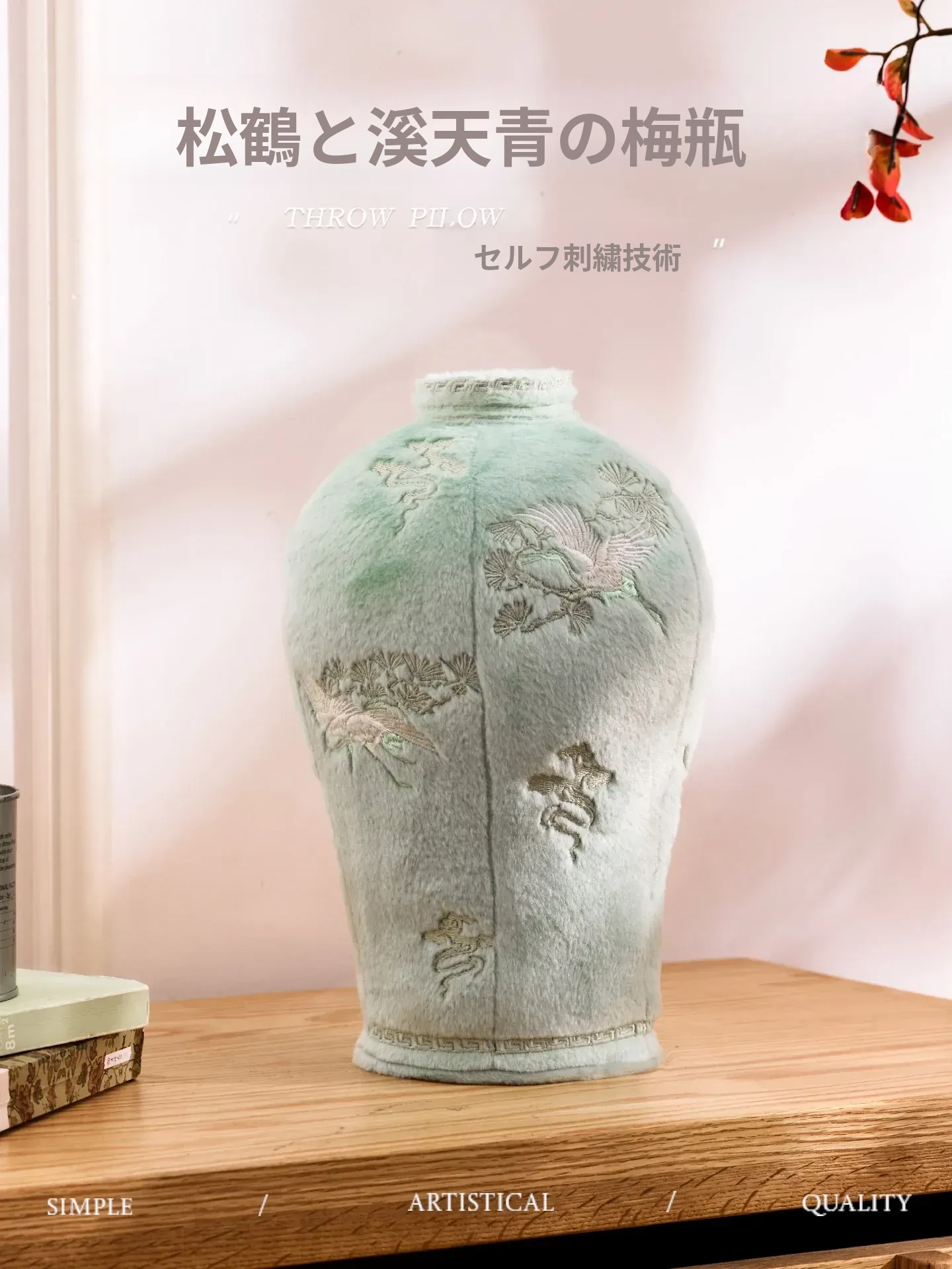 中式刺繡花瓶デザインのクッション|オフィスやリビングにぴったり!おしゃれなフラワーアレンジメントが楽しめるインテリア雑貨|ユニークな形状で心を和ませる毛並みの良い装飾品。ギフトにも最適!