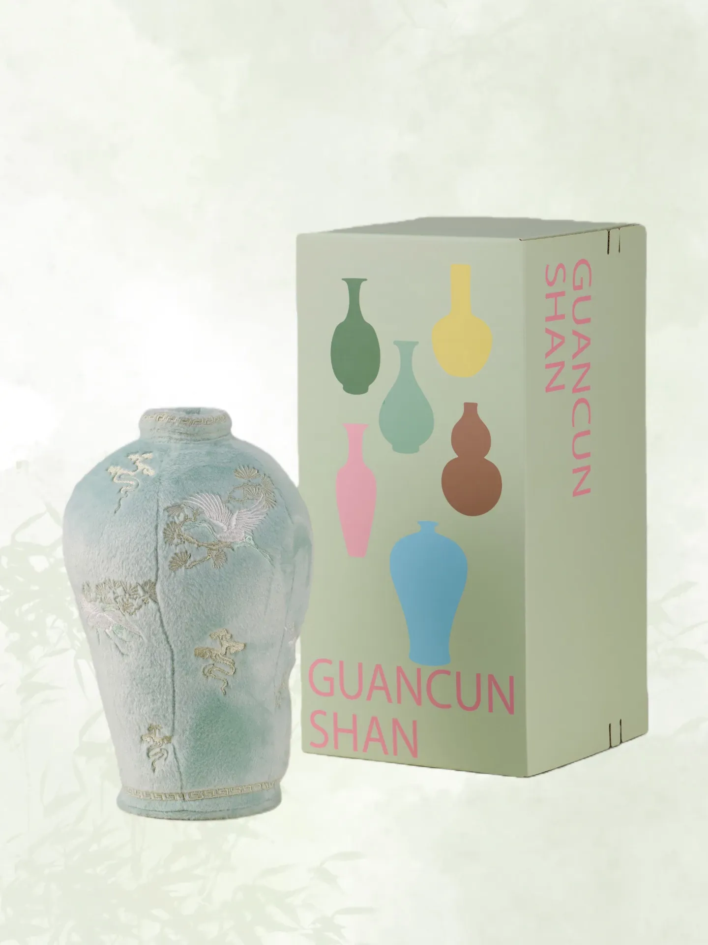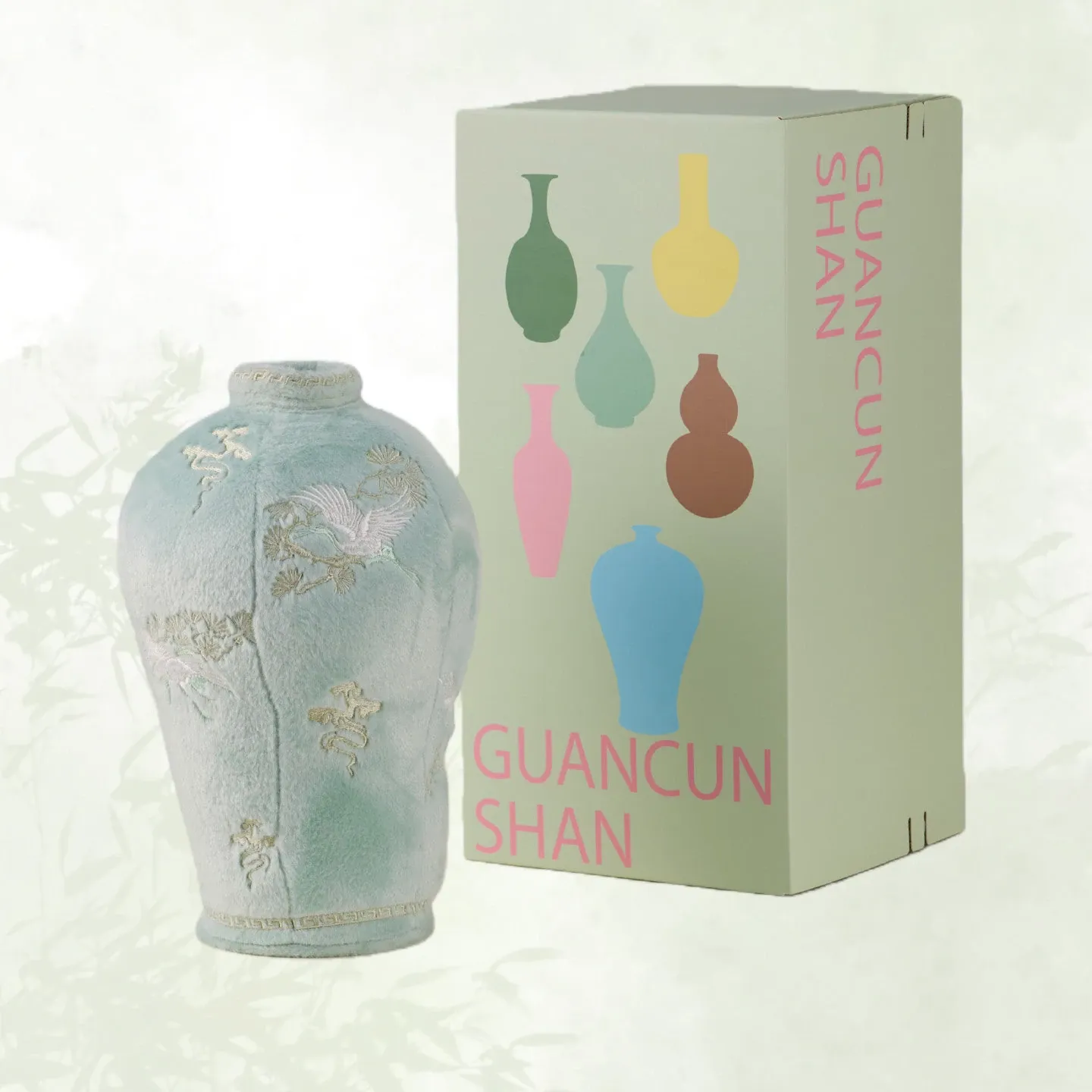 松鶴と溪流の天青色のビロード・ビロード陶器の置物+ギフトボックス