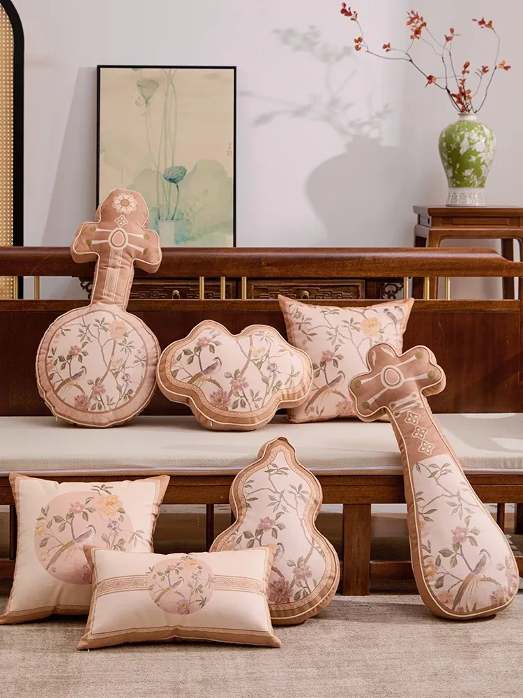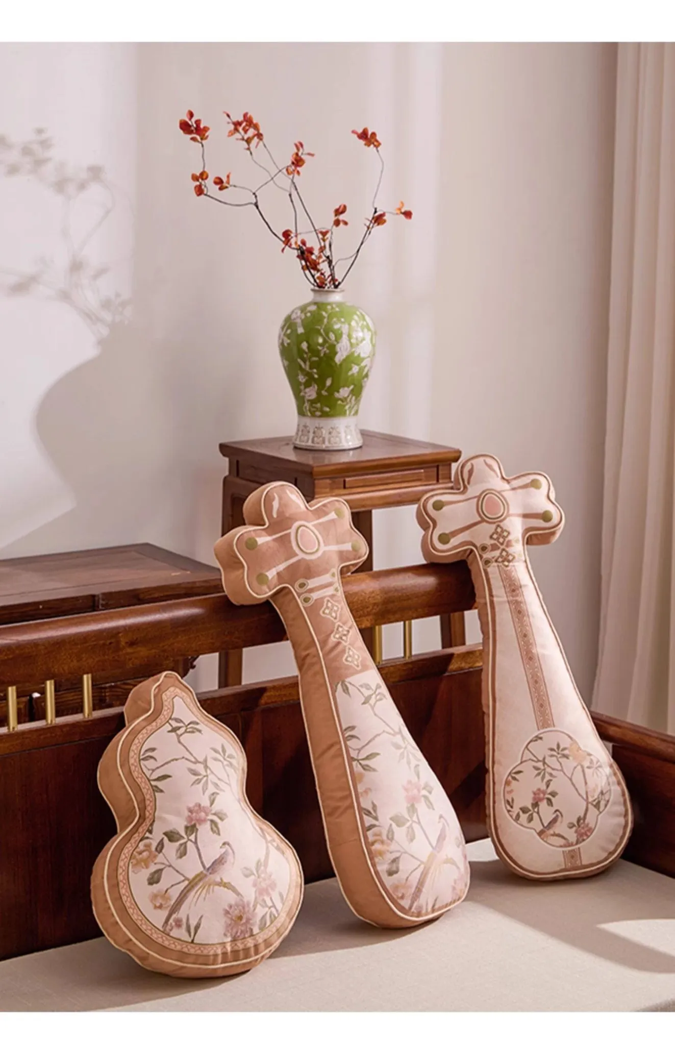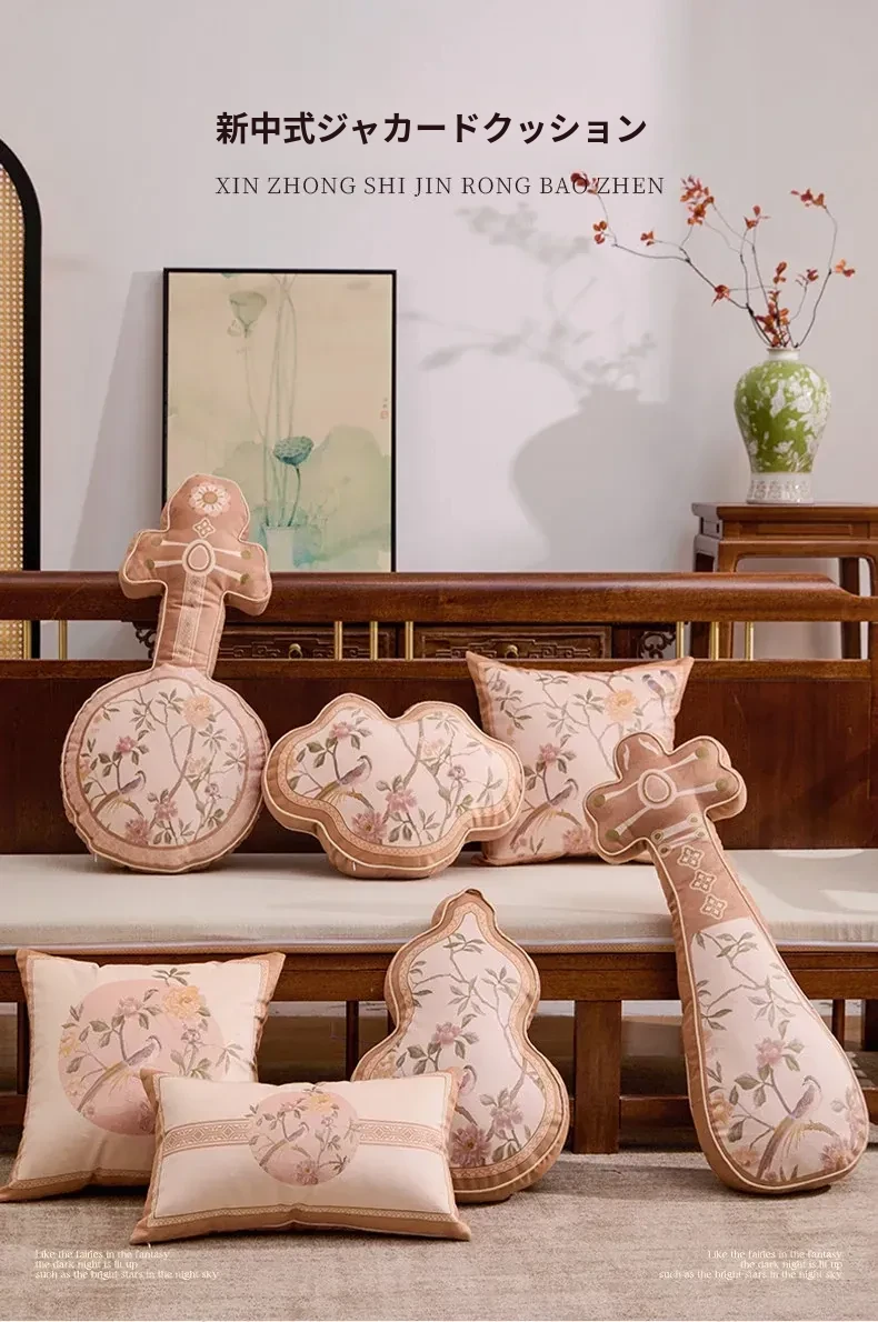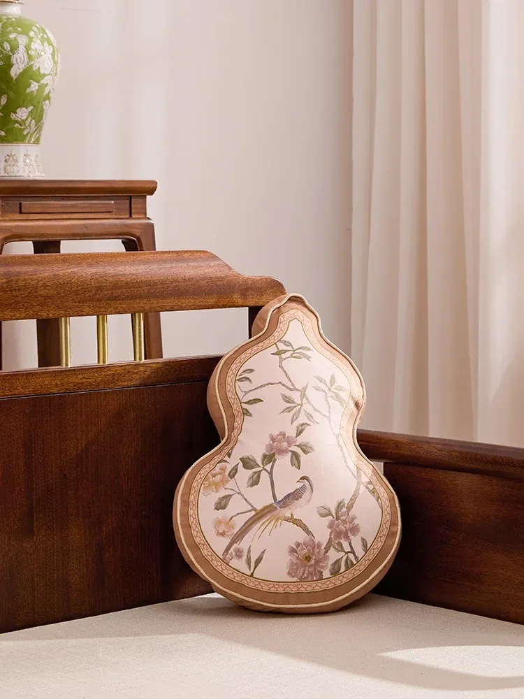 中国風のひょうたんクッション - リビングルームやソファにぴったり!新しい中式デザインのユニークな形状で、雰囲気を演出し、背中をしっかりサポート。インテリアのアクセントにも最適な装飾アイテムです。