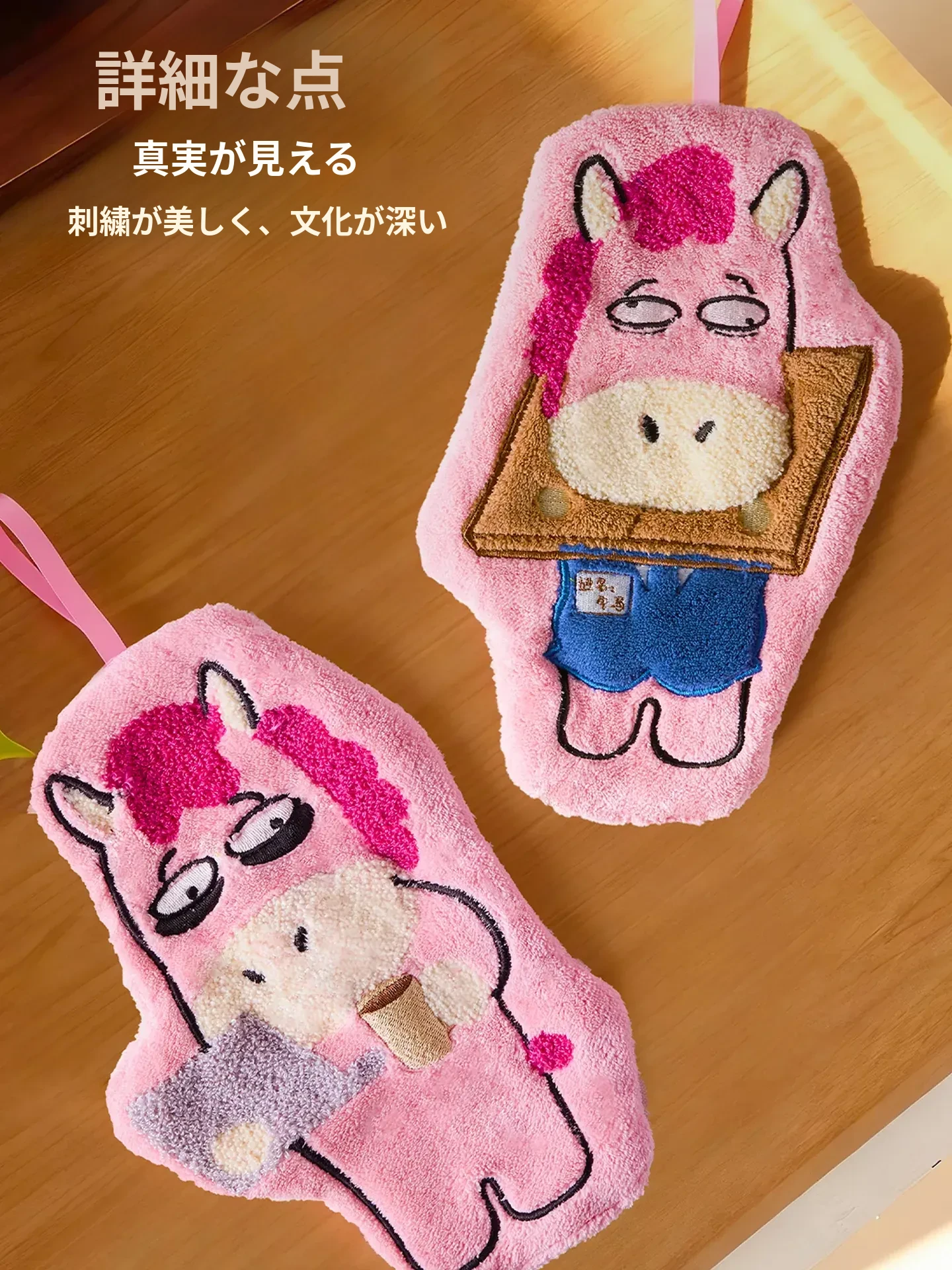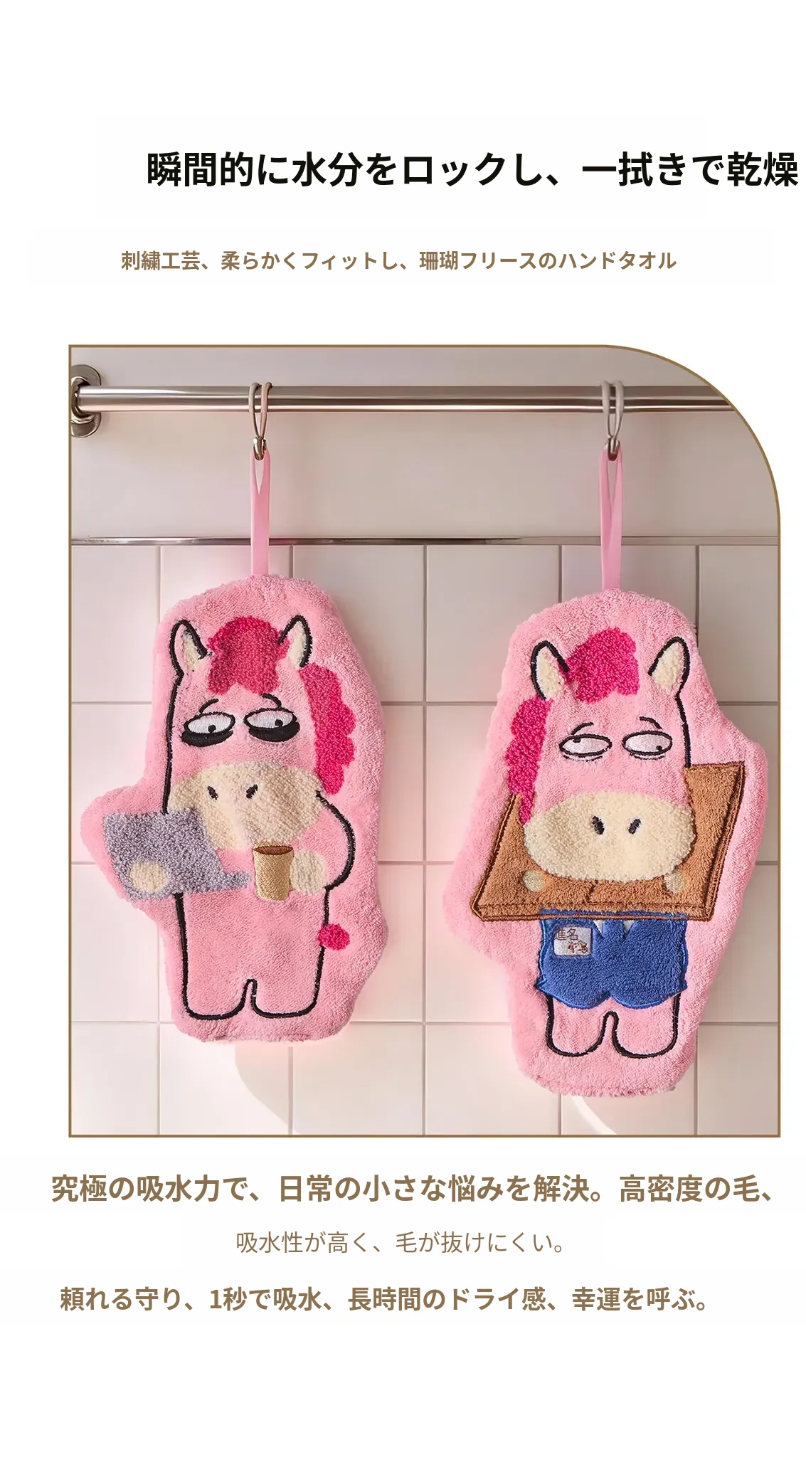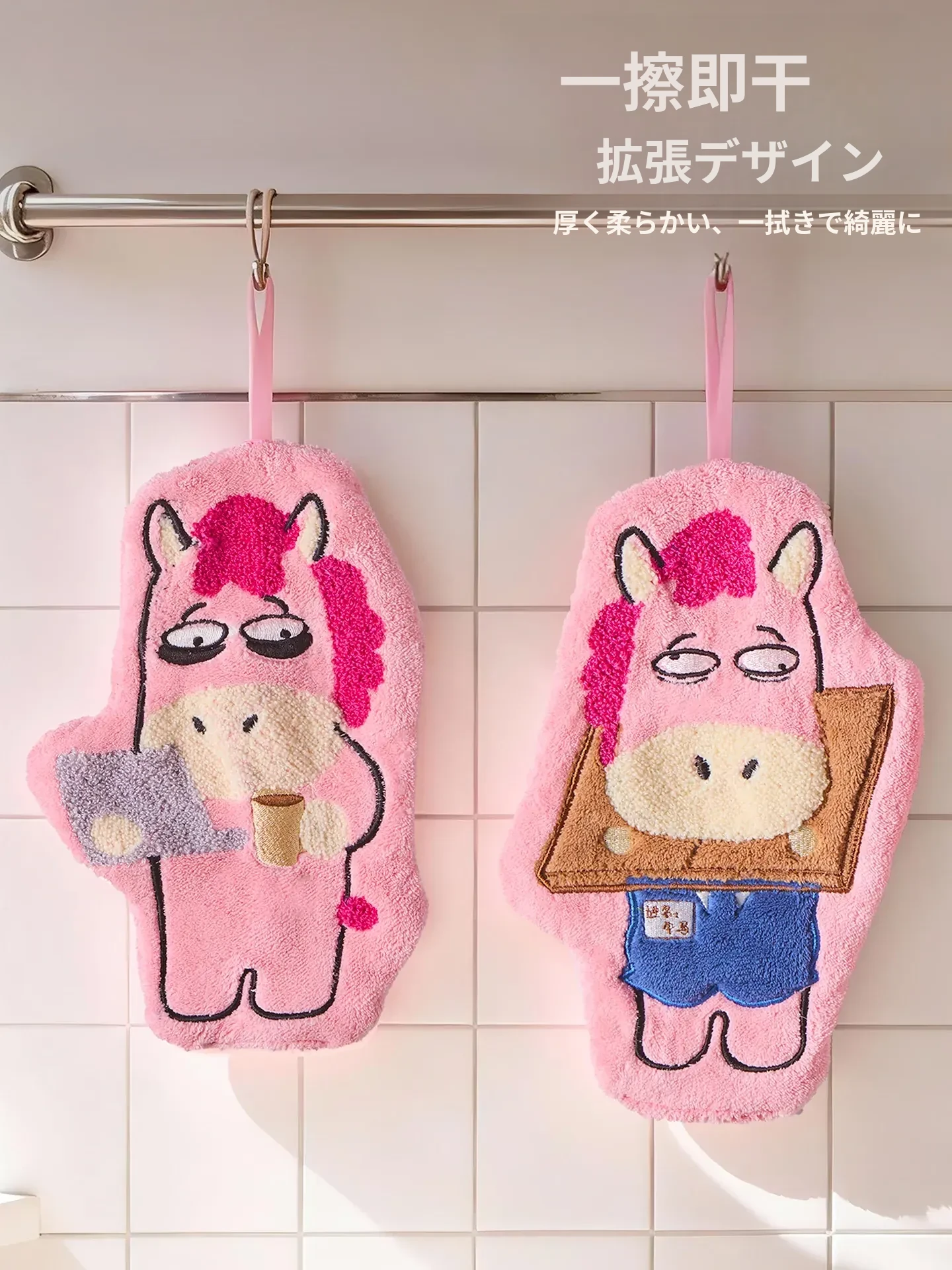 馬年の創造的なタオル - 超吸水・厚手のカートゥーン小馬デザイン!キッチンやバスルームに最適、子供用ハンカチとしても使える、可愛いデザインで手をしっかり拭き取ります!