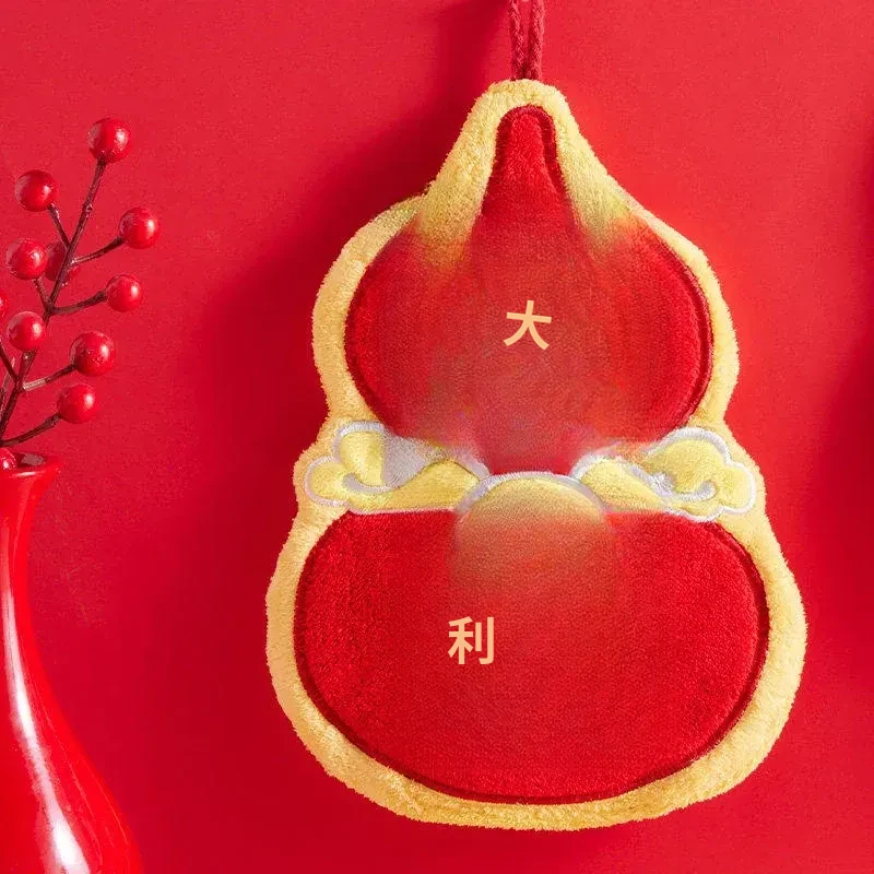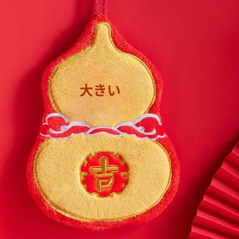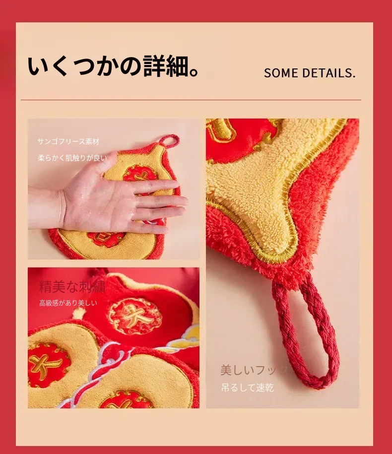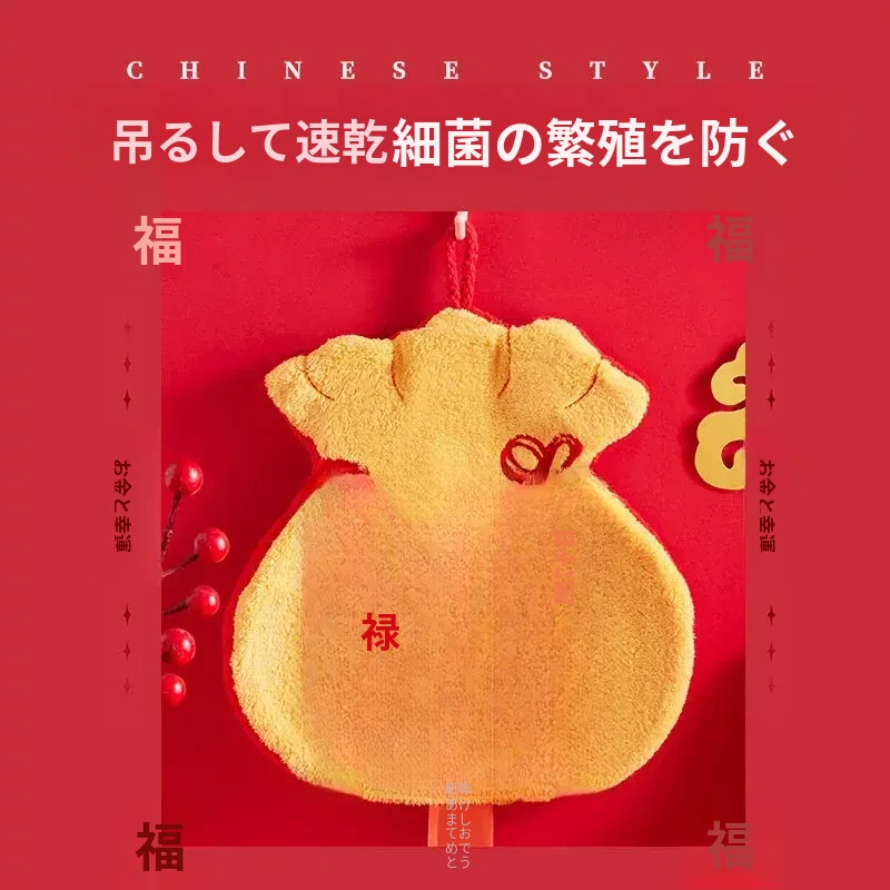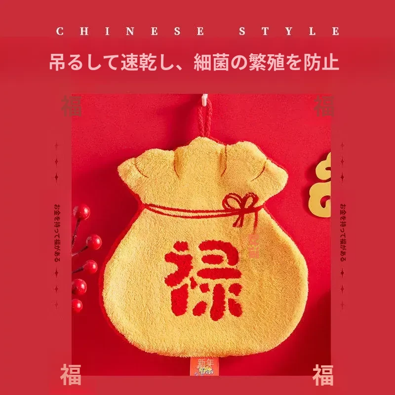 新年限定!可爱なデザインのハンギングタオル - キッチンやバスルームにぴったり!高吸水性で毛が抜けない赤いハンカチで、毎日の手洗いを楽しく!
