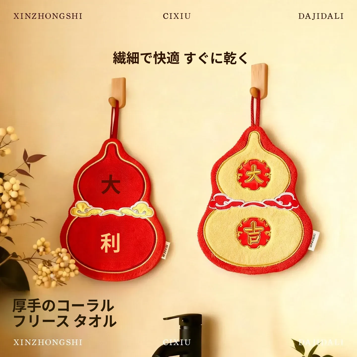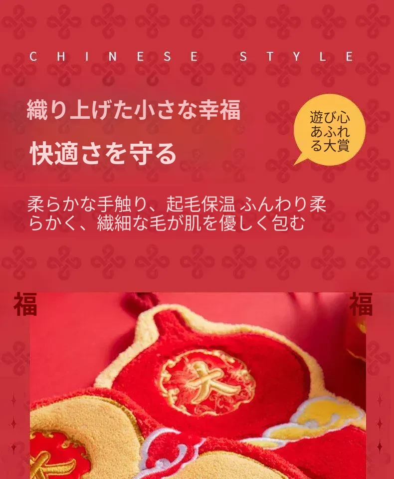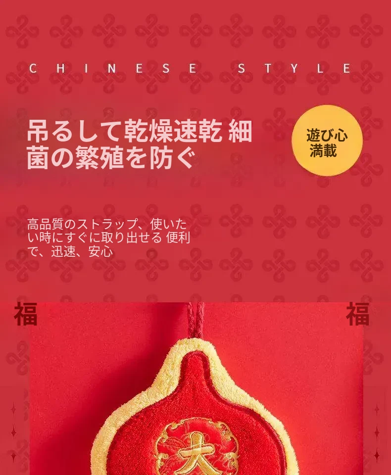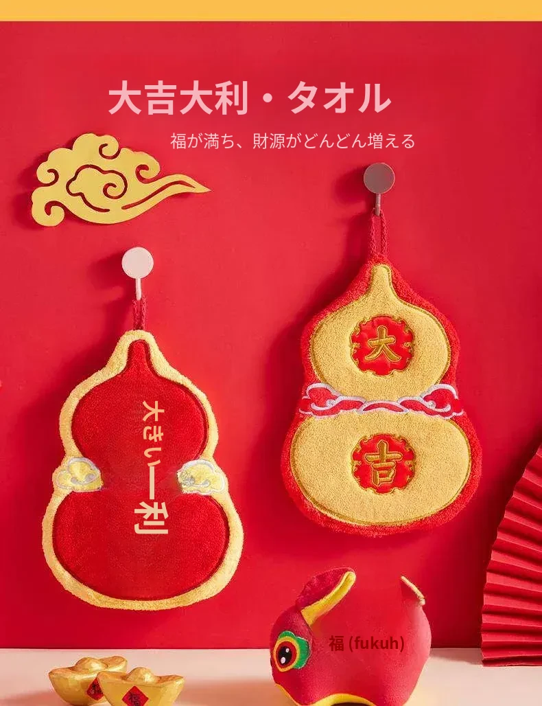 新年限定!可爱なデザインのハンギングタオル - キッチンやバスルームにぴったり!高吸水性で毛が抜けない赤いハンカチで、毎日の手洗いを楽しく!