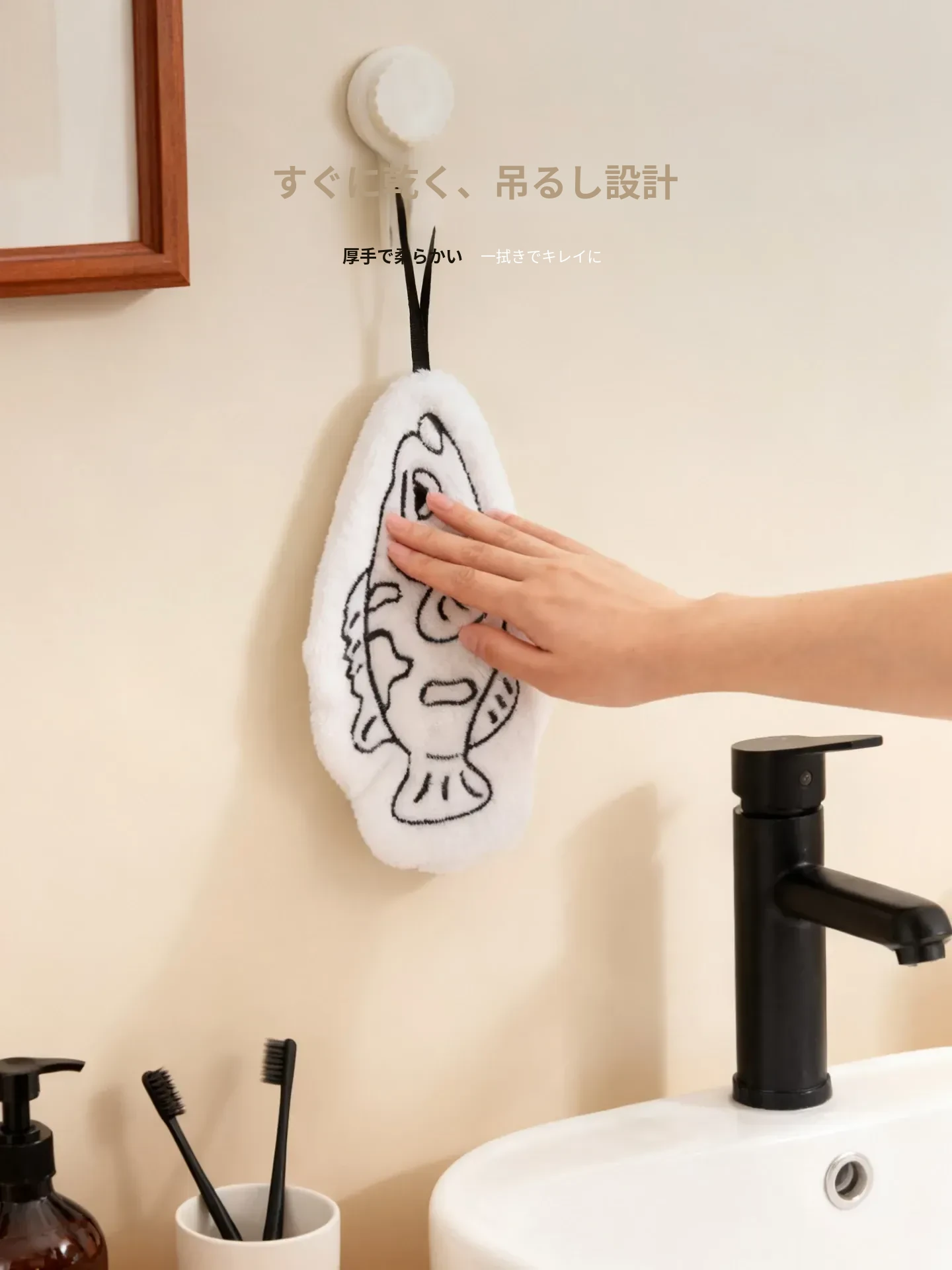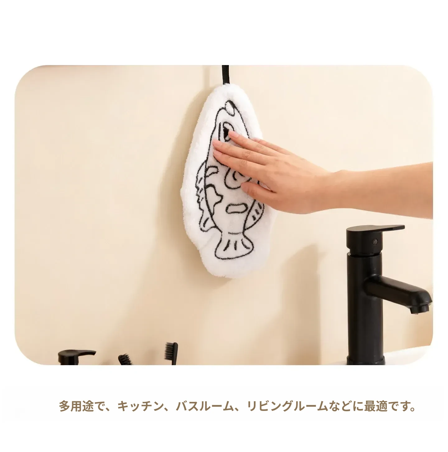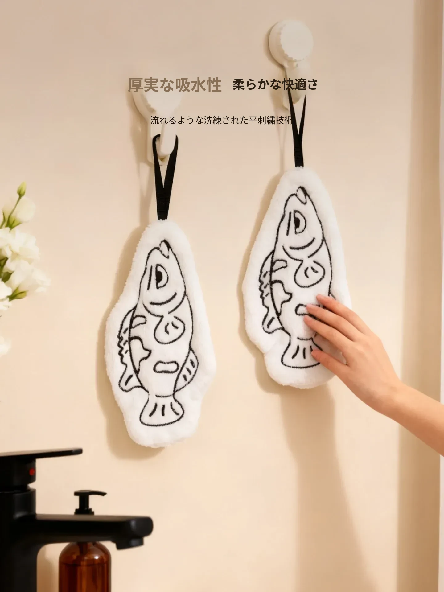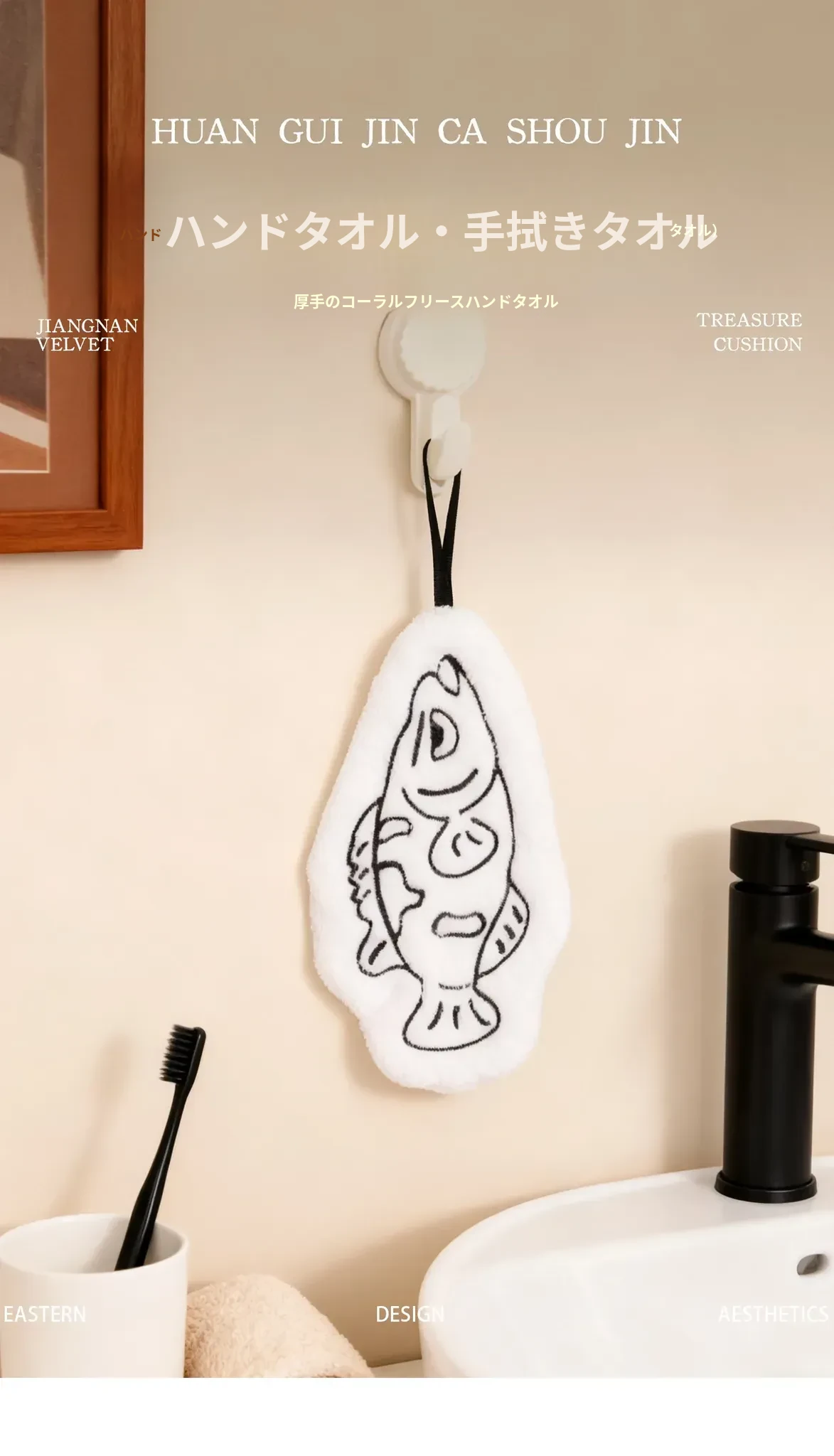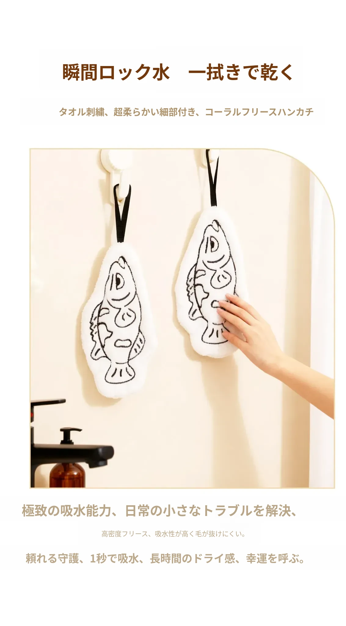 かわいい小型バスフィッシュの厚手コーラルフリースタオル - 超吸水性、バスルームやキッチンに最適な掛けタオルとハンドタオル!おしゃれで実用的なアイテムで、毎日の生活をもっと楽しく!