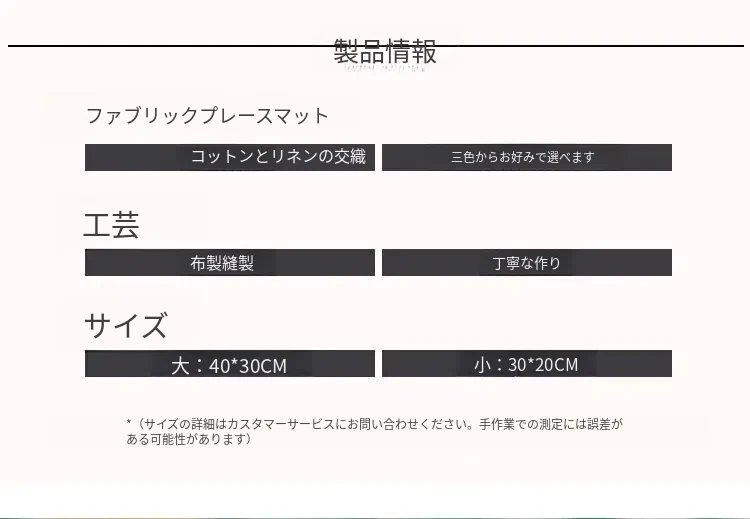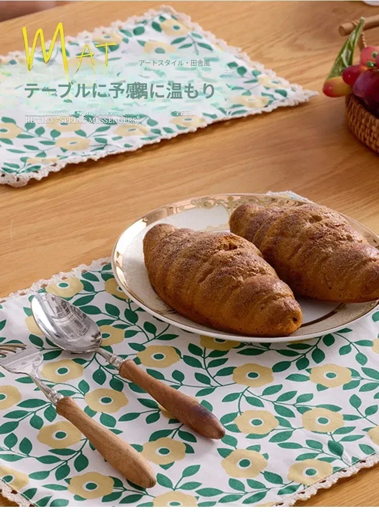 アメリカンビンテージスタイルの高級感あふれるテーブルマット|熱を防ぎ、焦げ付きを防ぐ厚手の布製スクエアプレースマット|フランス風の洗練されたダイニング体験を演出!